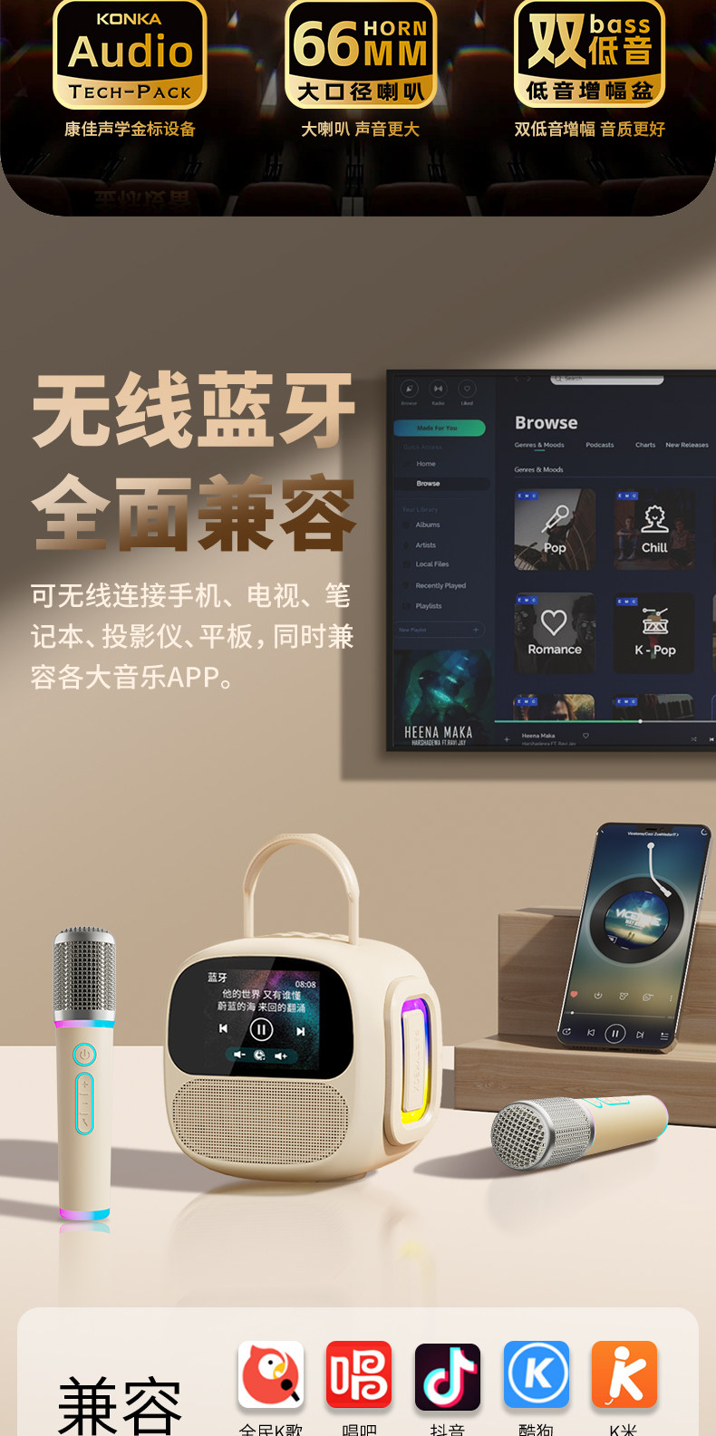 KONKA Microphone and Speaker Integrated Microphone for Home Use, Children's Karaoke Singing, Family Ktv Bluetooth Speaker