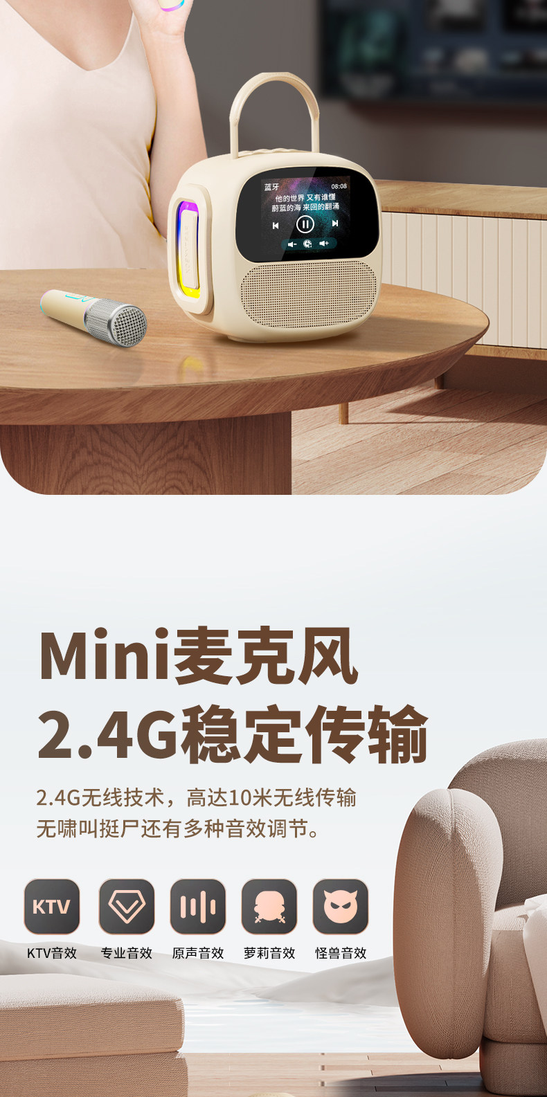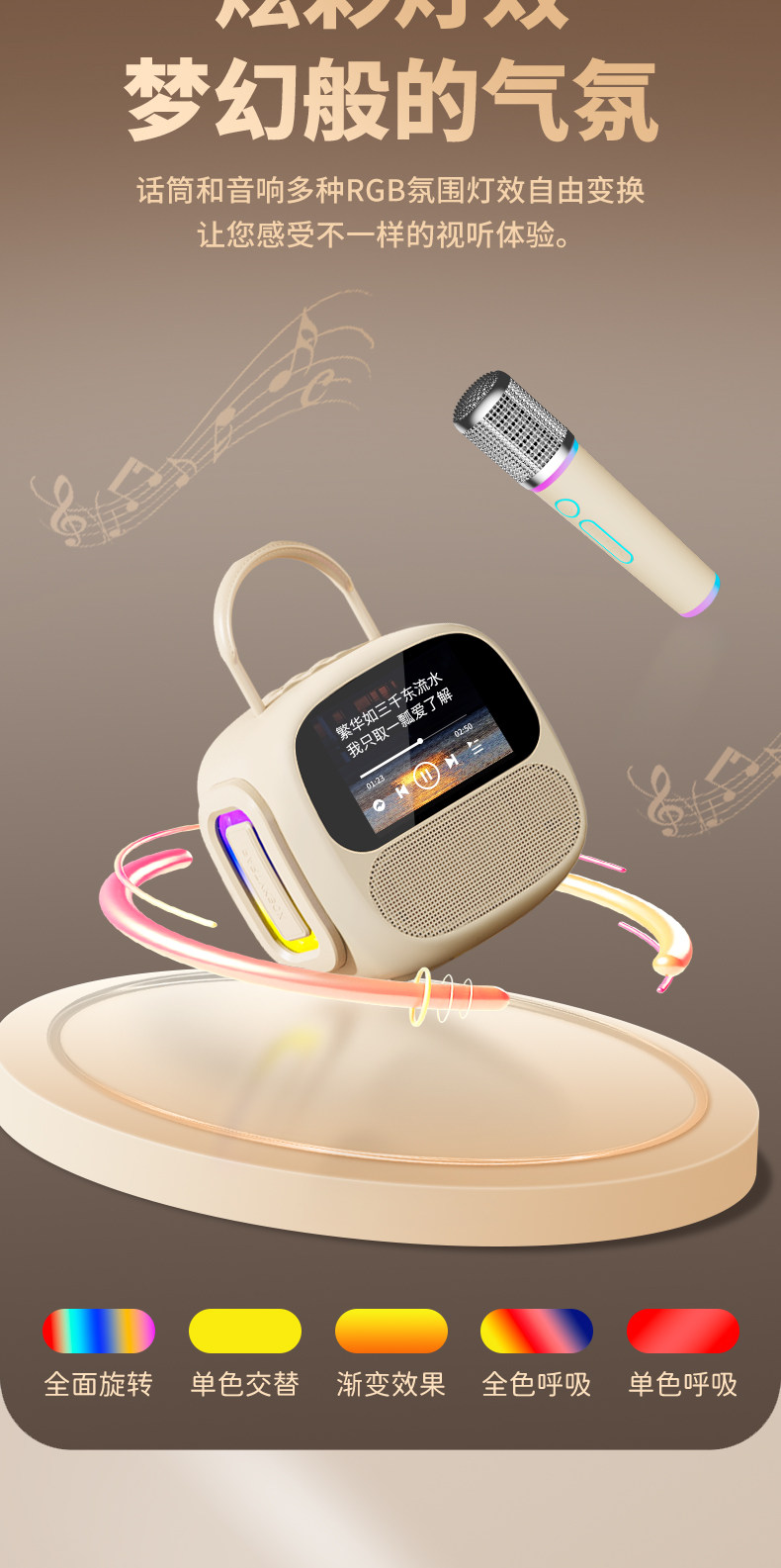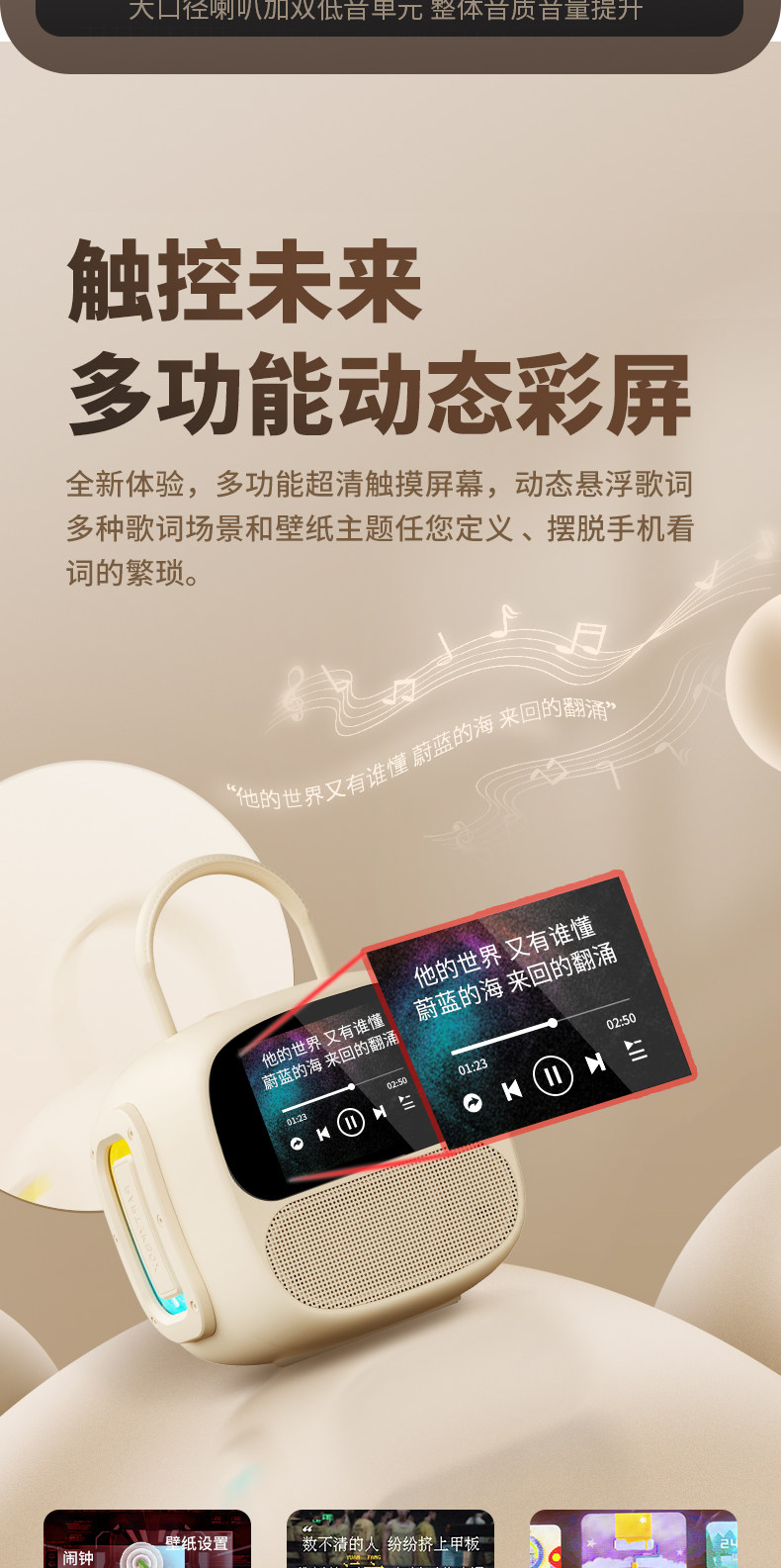 Color Classification [Color Screen Version·Cream White] 2 Microphones/Dynamic Lyrics Display/Touch Screen/Three Speakers/Intelligent Sound Correction/Large Volume/Stereo Sound,[Color Screen Version·Sakura Pink] 2 Microphones/Dynamic Lyrics Display/Touch Screen/Three Speakers/Intelligent Sound Repair/Large Volume/Stereo Sound,[Standard Version·Cream White] 2 Microphones/Three Speakers/Ai Voice Song Request/Intelligent Sound Repair/Large Volume/Stereo Sound,[Standard Version·Sakura Pink] 2 Microphones/Three Speakers/Ai Voice Song Request/Intelligent Sound Repair/Large Volume/Stereo Sound,[Standard Version·Roland Purple] 2 Microphones/Three Speakers/Ai Voice Song Request/Intelligent Sound Repair/Large Volume/Stereo Sound