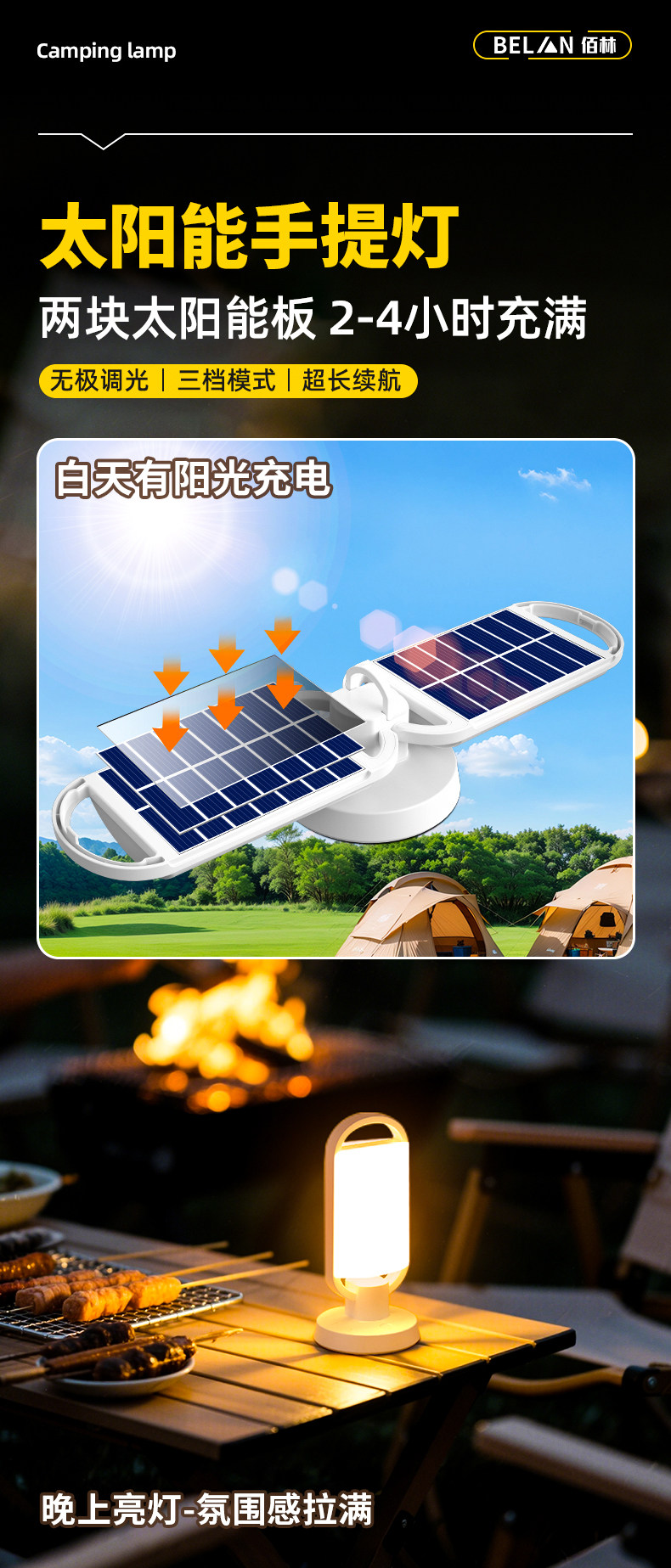 Solar-Powered Led Street Lamp for Night Markets, Rechargeable Emergency Lighting for Home Power Outages, Outdoor Camping Light Bulb