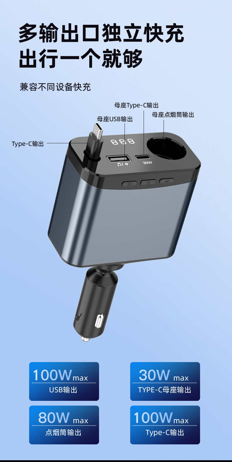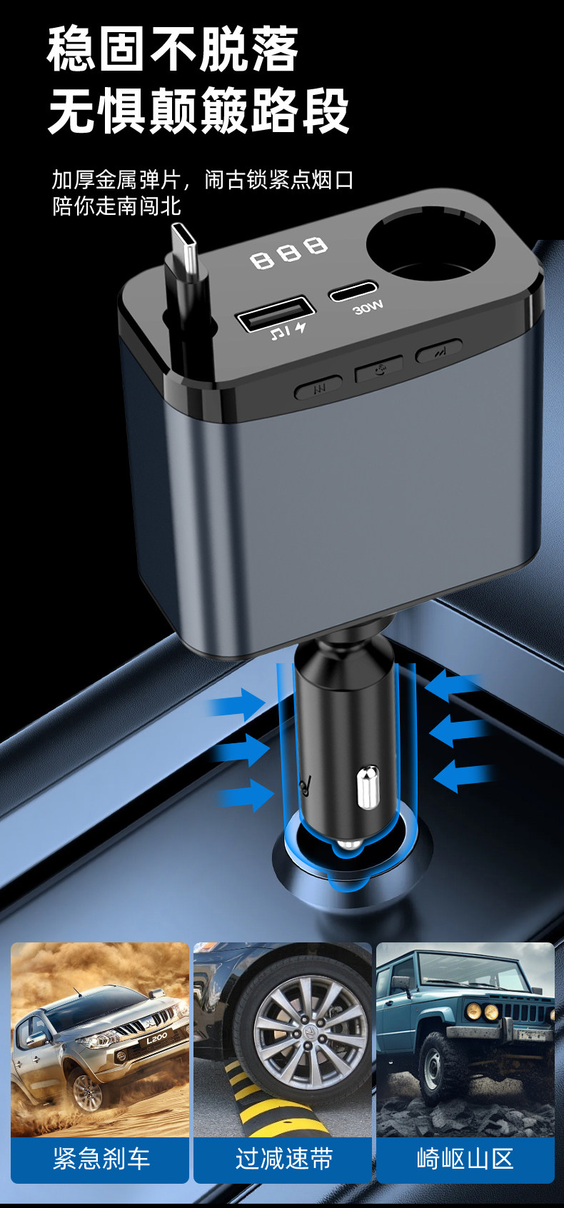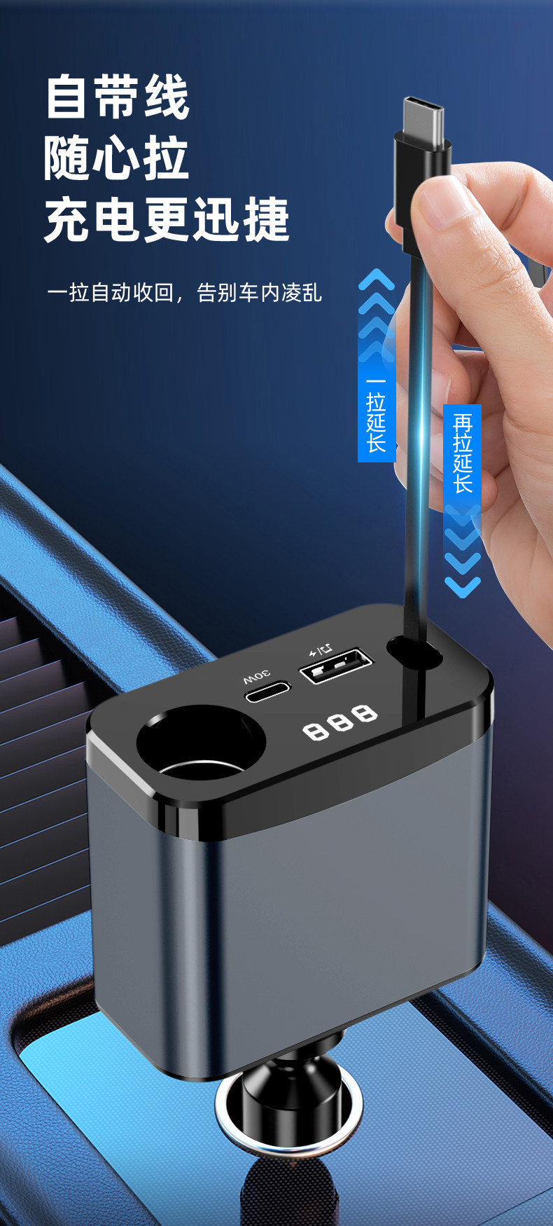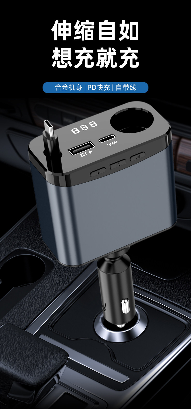 Car Bluetooth Mp3 Charger Super Fast Charging Retractable Cable Pd Multi-Function Music Cigarette Lighter Adapter Car Charger