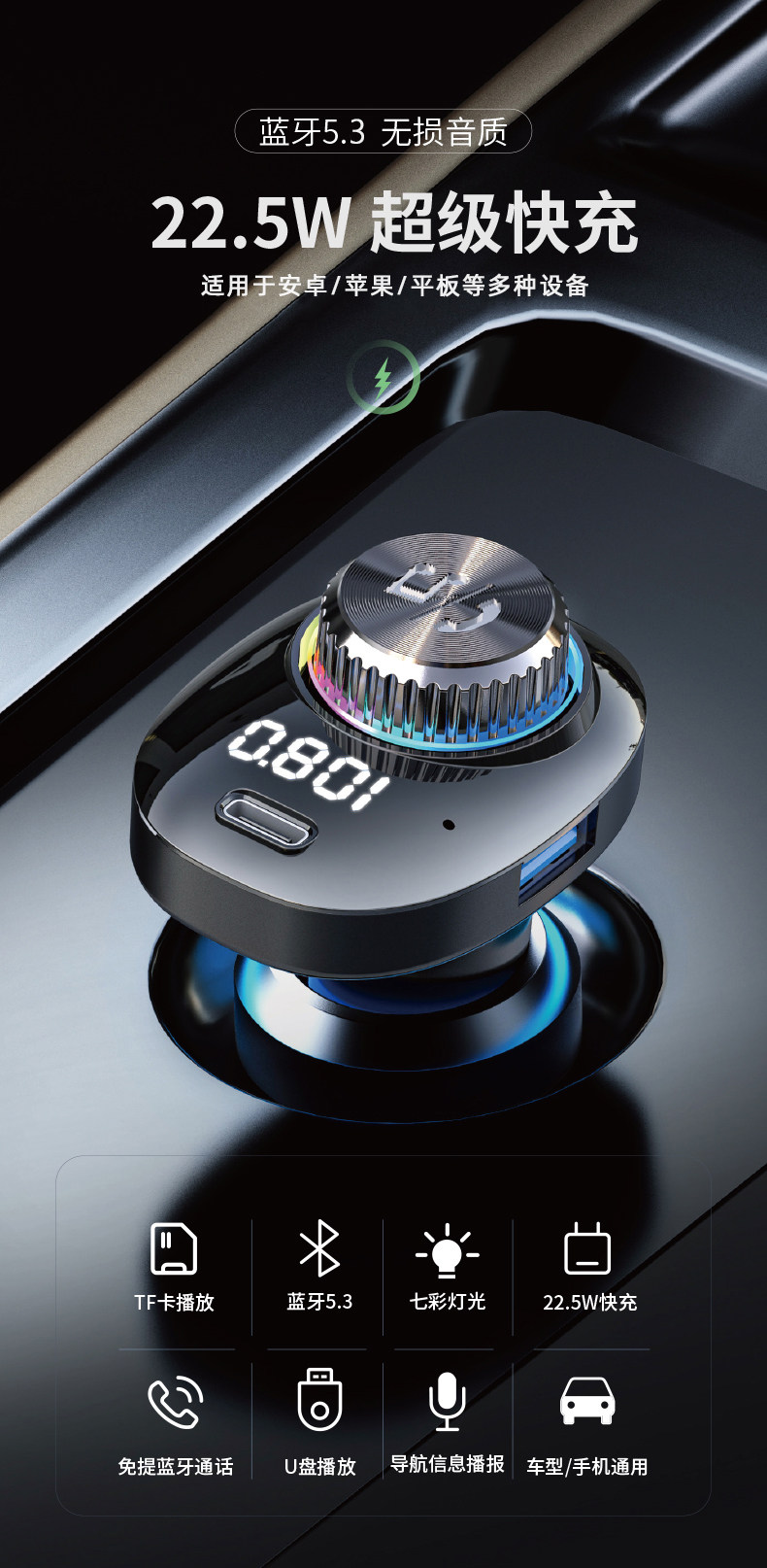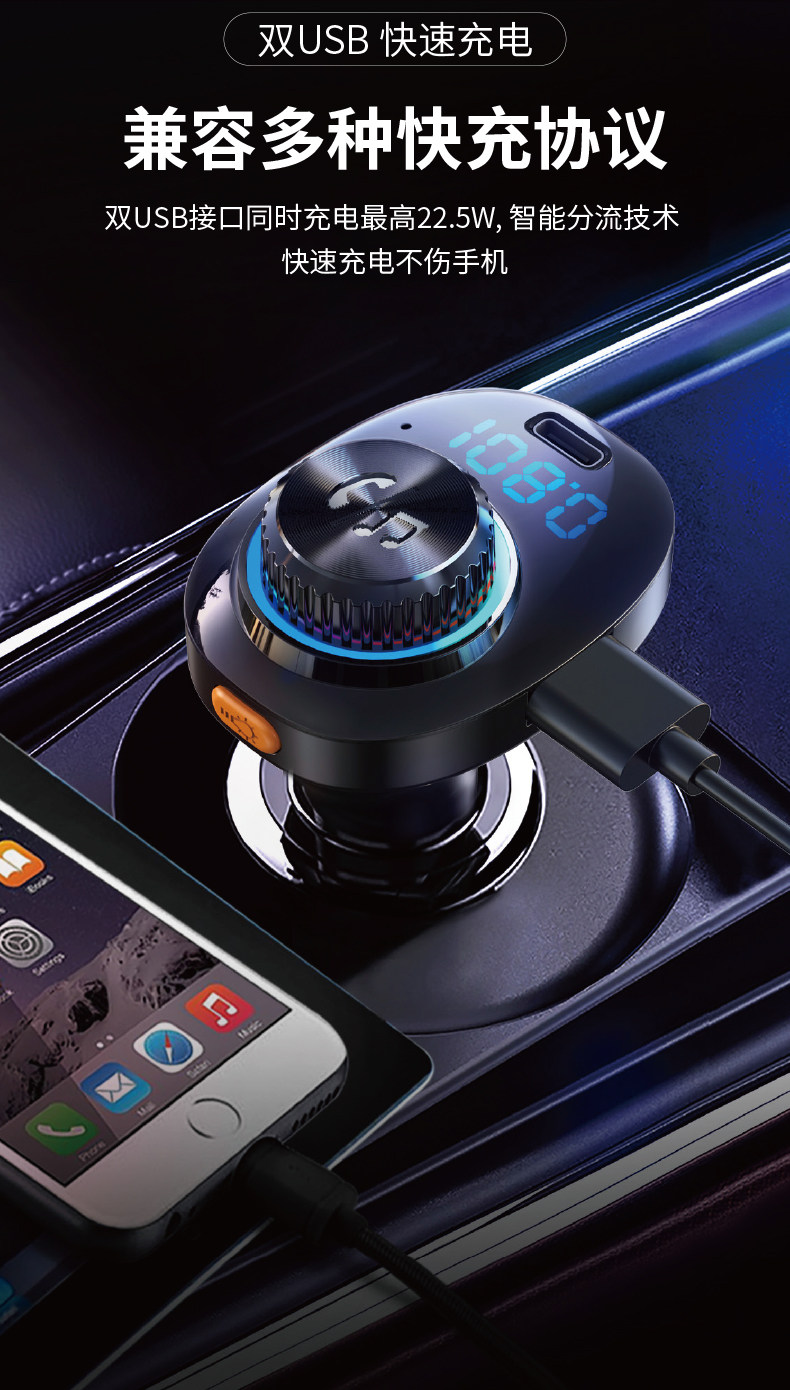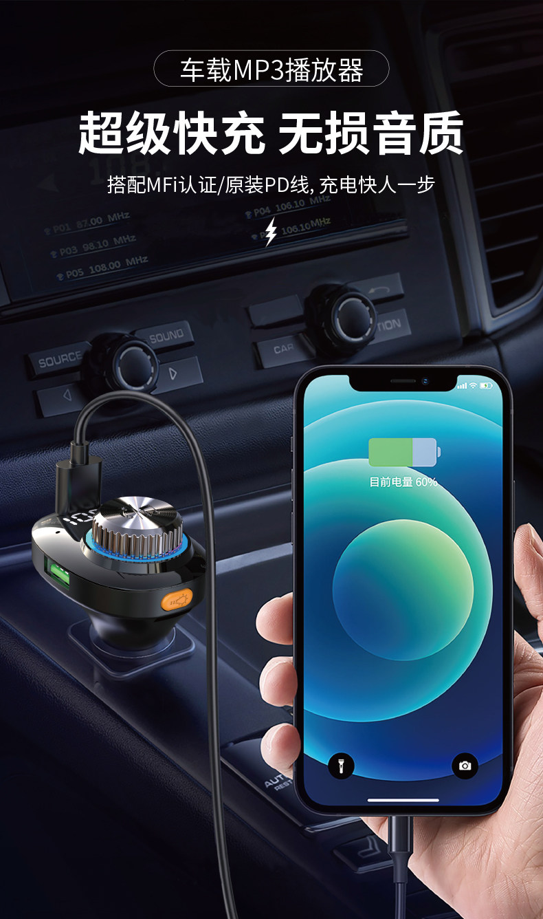 Car Bluetooth Receiver Lossless Sound Quality Mp3 Player Audio Fast Charging Car Charger Conversion Cigarette Lighter