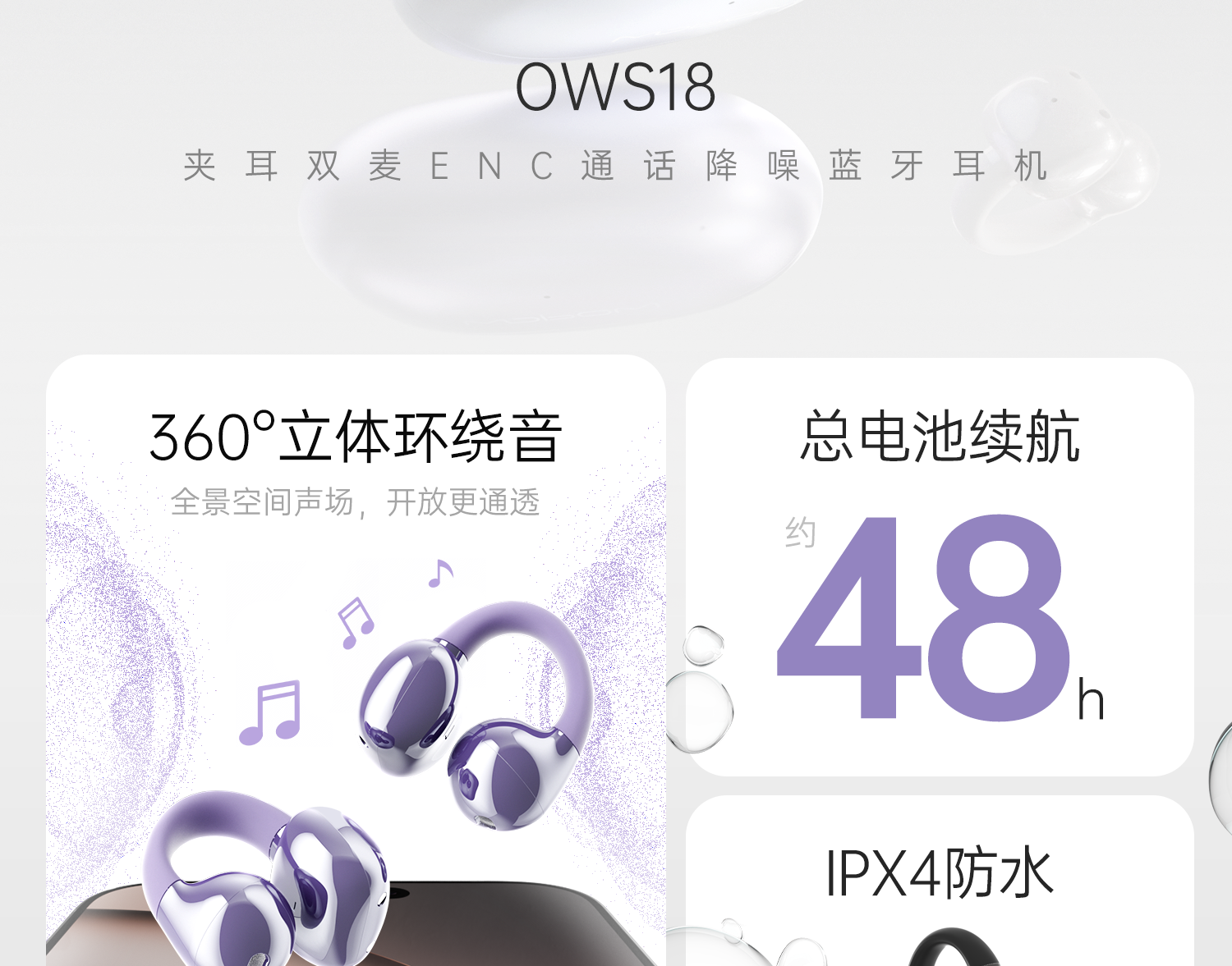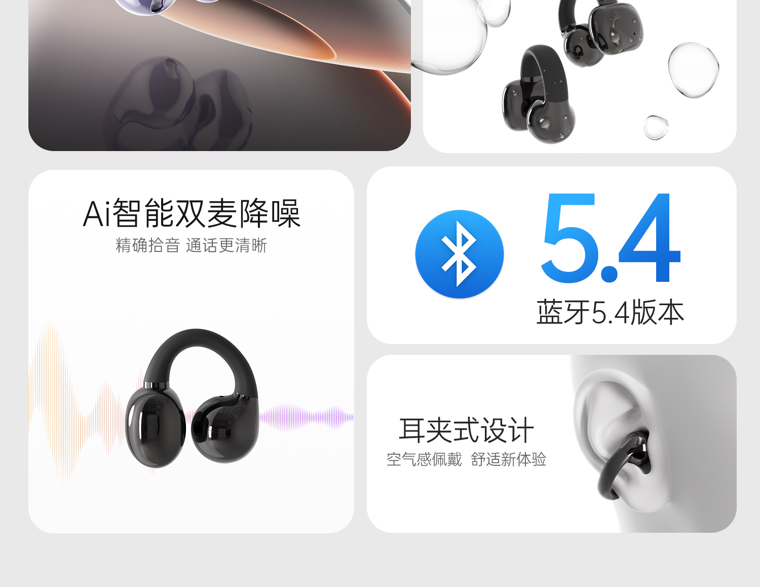 Wopin Bluetooth Earphones, Wireless, Stylish, Over-Ear, Suitable for Apple and Huawei, Open-Ear Clip-On, for Sports and Cycling, Noise-Cancelling