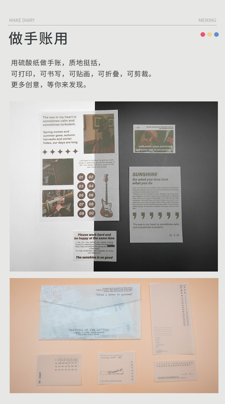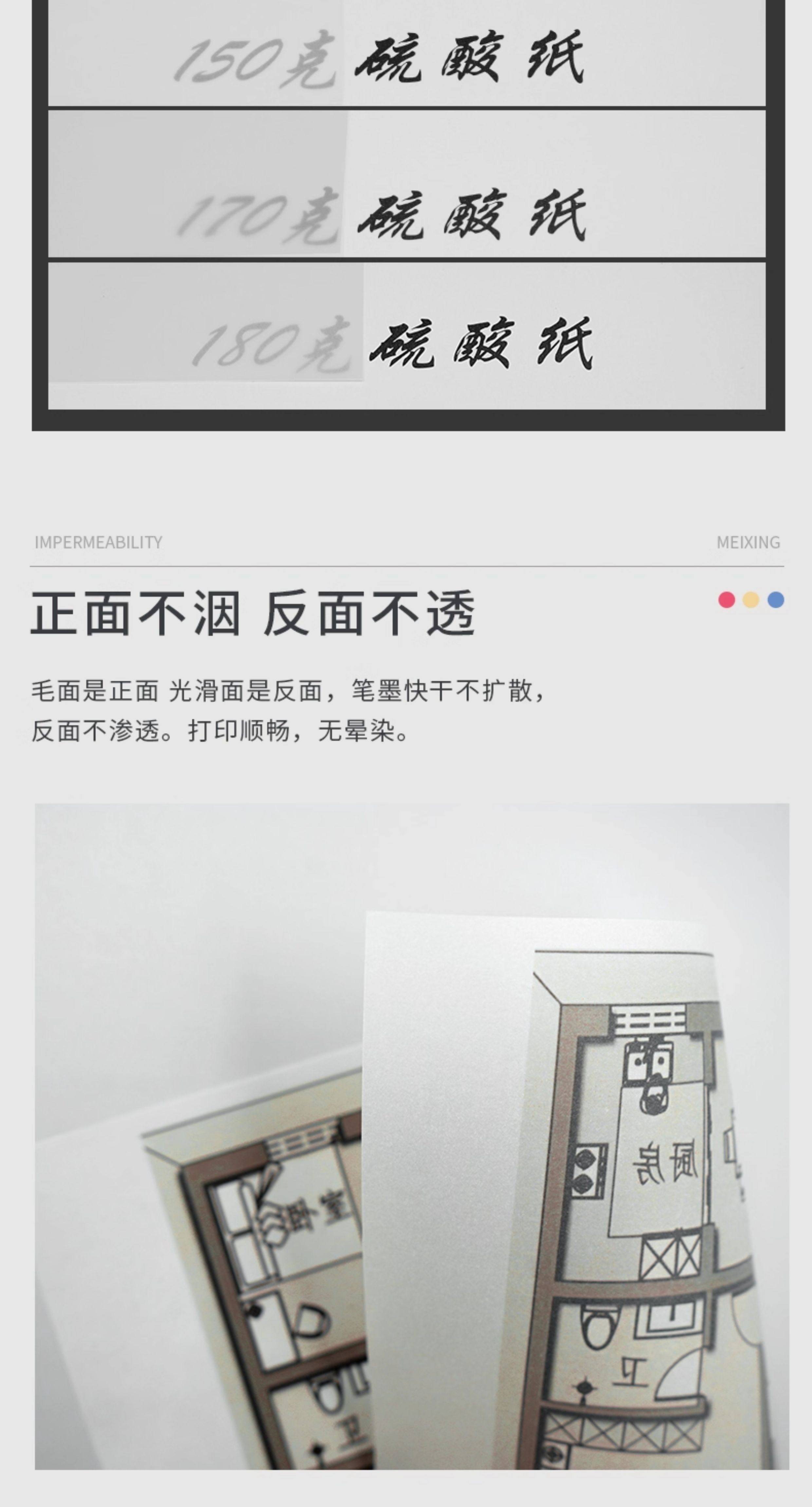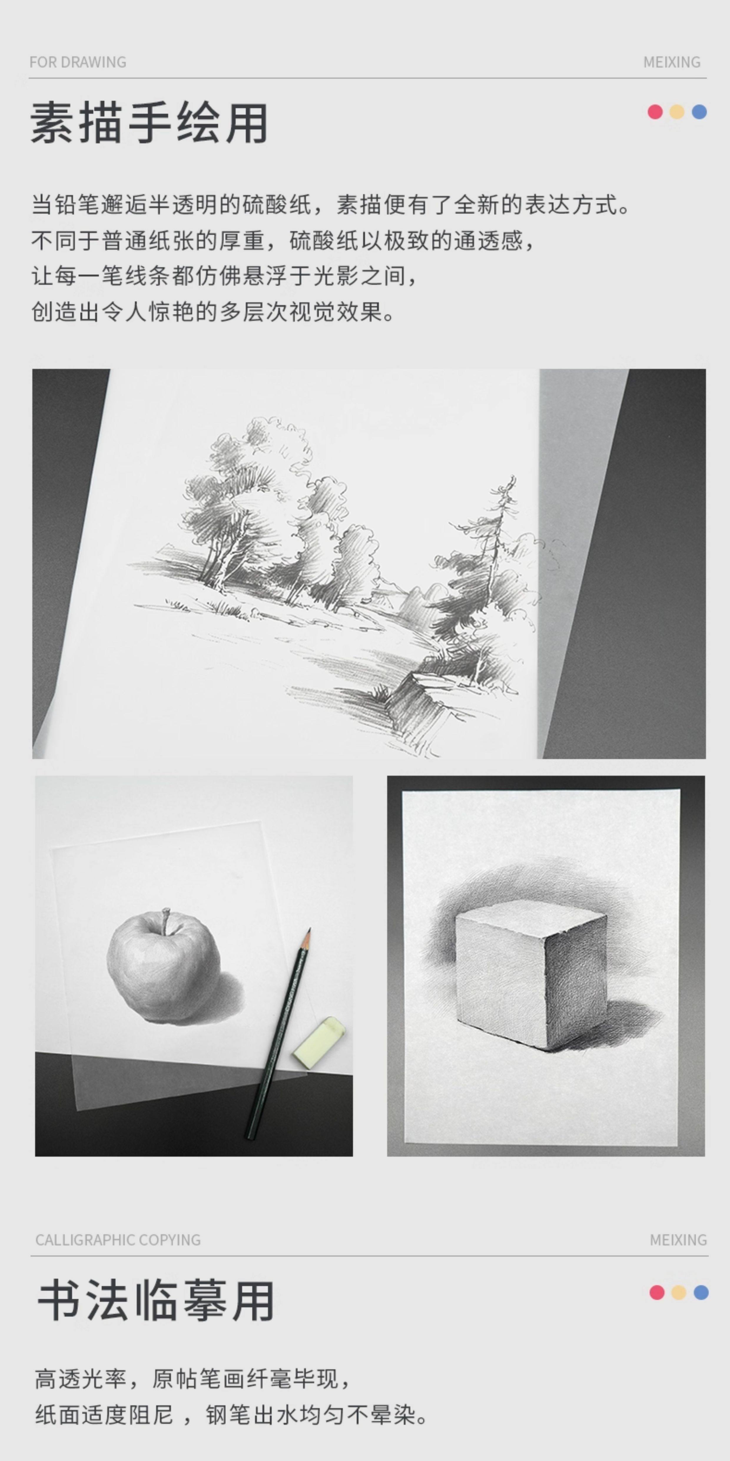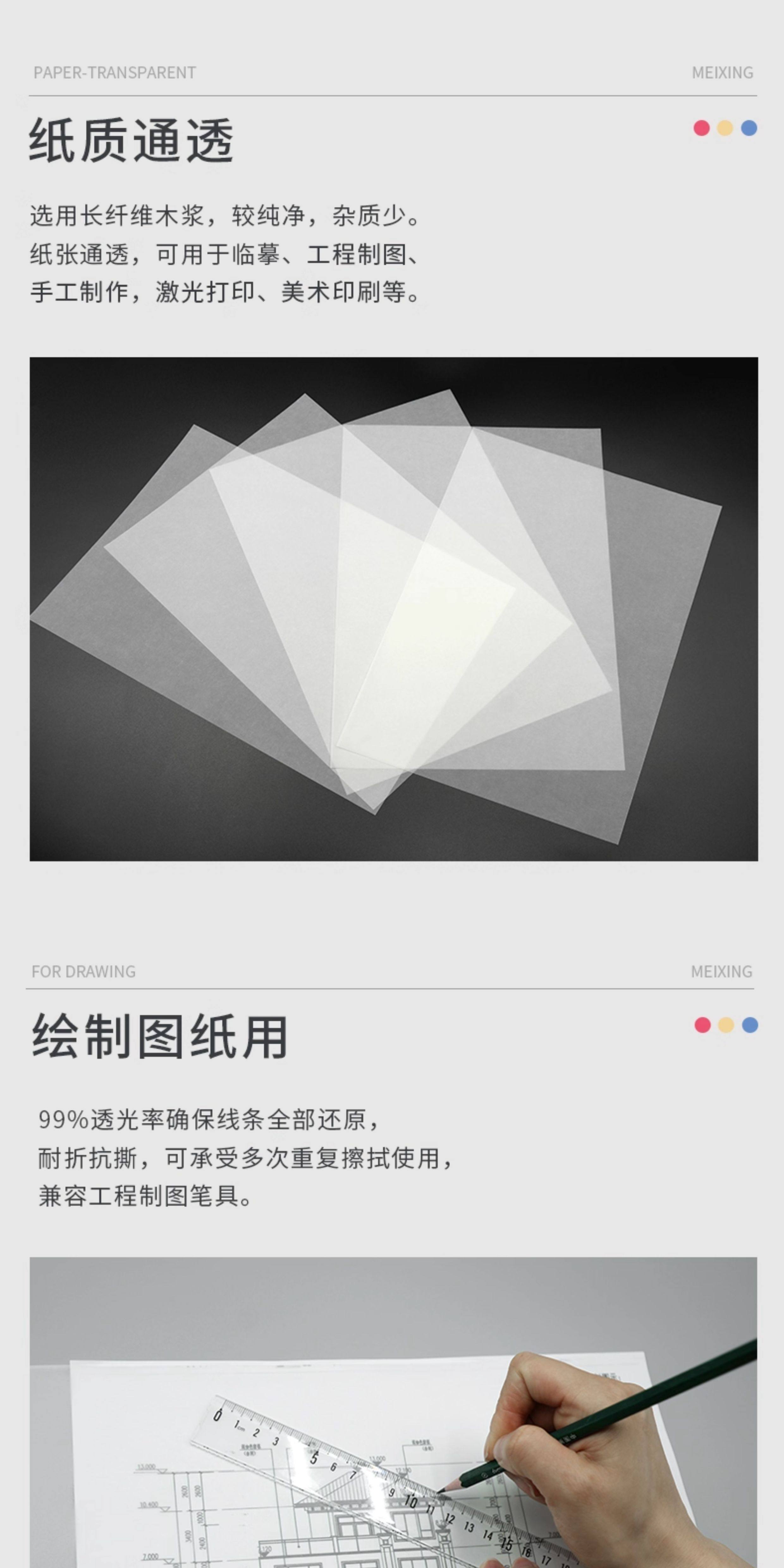 Meixing Tracing Paper, Sulfuric Acid Paper, A4 Drawing Material, Printing and Copying, Rubber Stamp Rubbing, Journal Tracing Paper, Calligraphy Transfer Paper, Transparent Architectural Design Sketch Drawing, Photography, Food Moisture-Absorbing Paper