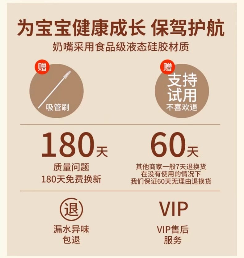 | Color Classification | Duckbill + Straw Mouth[6 Months-4 Years Old]+1 Straw and Free Straw Brush,1 Straw Nozzle[1-4 Years Old] Free Straw Brush,1 Straw Nozzle[1-4 Years Old]+1 Straw and Free Straw Brush,2 Straw Nozzles[1-4 Years Old] Free Straw Brush,2 Straw Nozzles[1-4 Years Old]+2 Straws and a Straw Brush,3 Straw Nozzles[1-4 Years Old] Free Straw Brush,3 Straw Nozzles[1-4 Years Old]+1 Straw and Free Straw Brush,1 Duckbill[June-December] Free Straw Brush,1 Duckbill[June-December]+1 Straw and Free Straw Brush,2 Duckbills[June-December] Free Straw Brush,2 Duckbills[June-December]+2 Straws and a Straw Brush,1 Pacifier[July-October]Cross Hole Comes with Straw Brush,2 Pacifiers[July-October]Cross Hole Comes with Straw Brush,1 Pacifier[More Than October]Cross Hole Comes with Straw Brush,2 Pacifiers[More Than October]Cross Hole Comes with Straw Brush,1 Pacifier[18 Months and Above]Cross Hole Comes with Straw Brush,2 Pacifiers[18 Months and Above]Cross Hole Comes with Straw Brush,1 Pacifier[July-October]Cross Hole + 1 Straw, Free Straw Brush,1 Pacifier[More Than October]Cross Hole + 1 Straw, Free Straw Brush,1 Pacifier[18 Months and Above]Cross Hole + 1 Straw, Free Straw Brush,Handle + Pacifier[July-October]+Gravity Ball Comes with Straw Brush,Handle + Duckbill + Gravity Ball, Free Straw Brush,Handle + Straw Spout + Gravity Ball, Includes Straw Brush,1 Integrated Straw and Free Straw Brush,Handle (Tip: Glass Milk Bottles Are Not Available),Dust Cover,Straight Drinking Straw Without Baffle[18 Months+]Brown,Straight Drinking Straw Without Baffle[18 Months+]White,1 Direct Drinking Straw Nipple + Anti-Spray Cap (Without Baffle) 18 Months +,2 Direct Drinking Straw Nipples + Anti-Spray Cap (Without Baffle) 18 Months +,3 Direct Drinking Straw Nipples + Anti-Spray Cap (Without Baffle) 18 Months + |