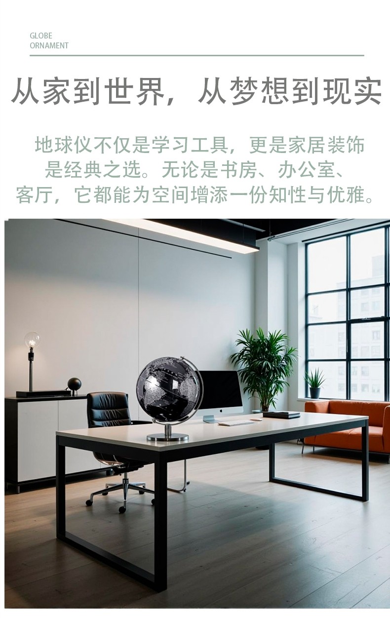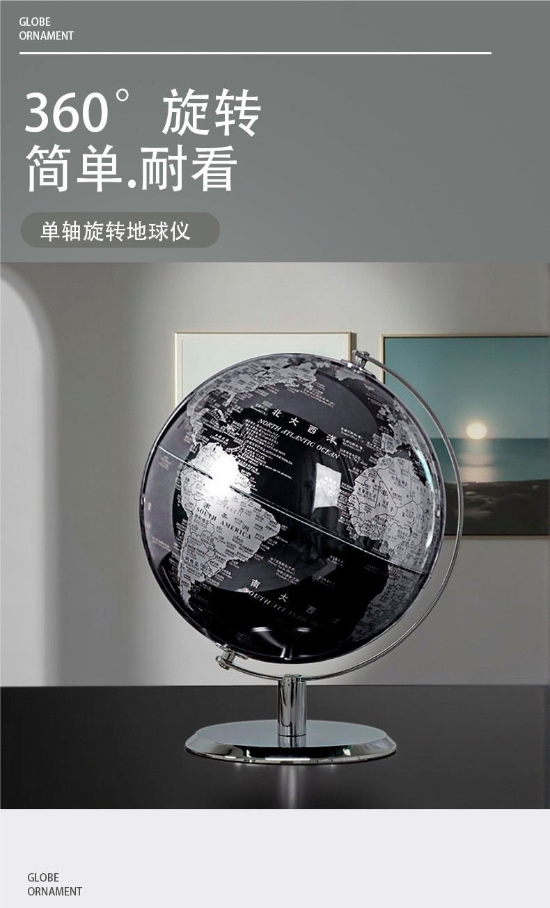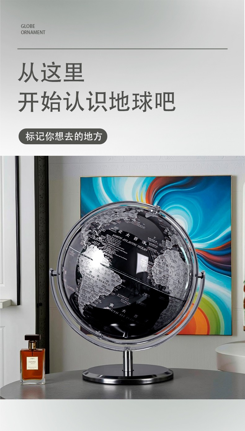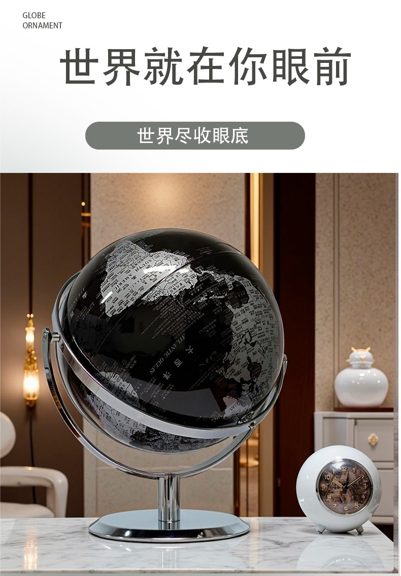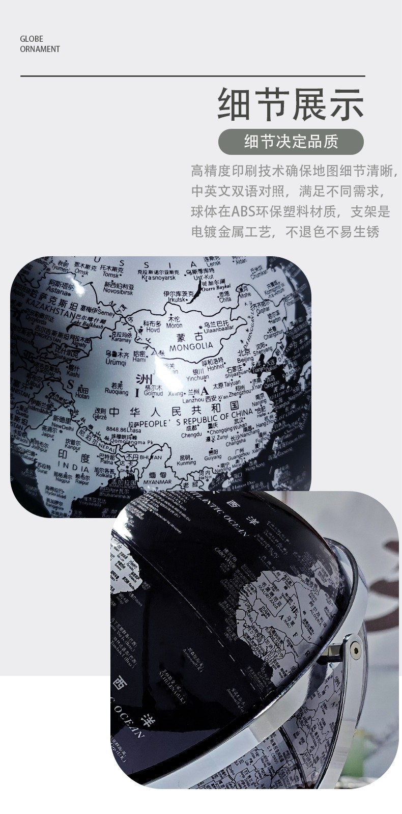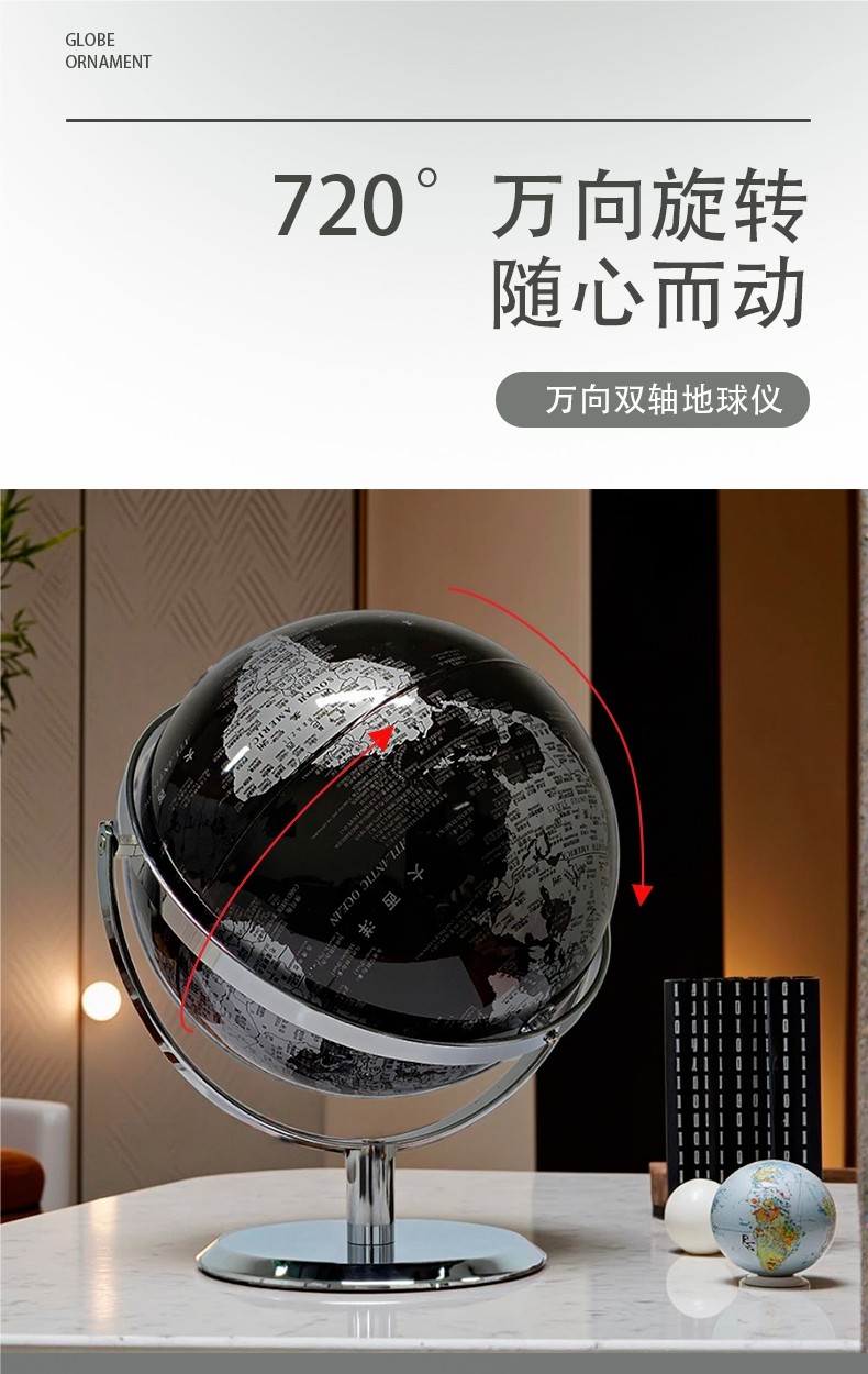 Silver High-End Light Luxury Globe Ornament Opening Gift Office Decoration Entrance Hall Living Room Study Crafts