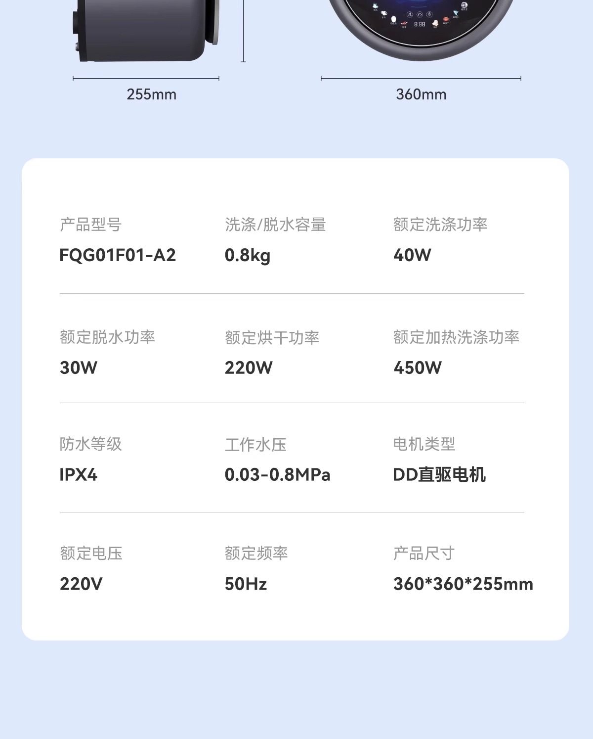 | Washing Capacity in Kilograms | 0.8kg |