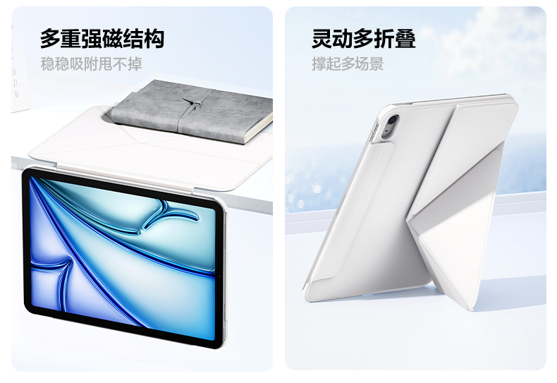 Flash Magic Protective Case with Magnetic Double-Sided Clip for Air 7/6, iPad Pro 2025 Protective Case, Suitable for Apple Tablet 10Th/11Th Generation, Dedicated for 11inch Mini7, Horizontal and Vertical, Thin and Lightweight, Full Coverage 9/10.5