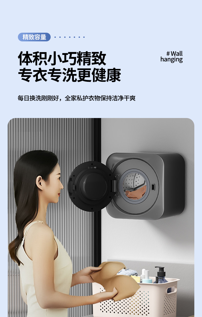 Wall-Mounted Automatic Washing and Drying Machine for Underwear and Socks, Small Dual-Chamber Special-Purpose 2-in-1