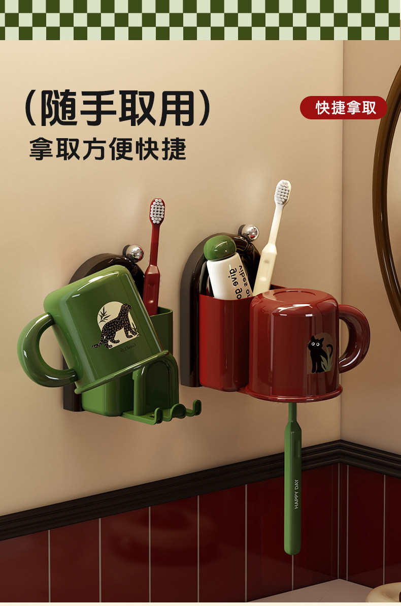 | Color Classification | Leopard Green with Mouthwash Cup (Suction Cup Traceless/Toothbrush/Storage),Cat Red with Mouthwash Cup (Suction Cup Traceless/Toothbrush/Storage),Swallow White with Mouthwash Cup (Suction Cup Traceless/Toothbrush/Storage),Couple Set (Leopard Green + Cat Red),Couple Set (Leopard Green + Swallow White),Couple Set (Swallow White + Cat Red),1 3-Port Set (Leopard Green + Cat Red + Swallow White) |