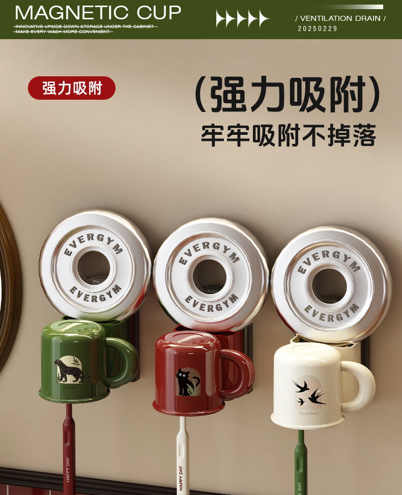 Retro Suction Cup Toothbrush Cup Holder Magnetic Mouthwash Cup Bathroom Wall-Mounted Punch-Free Wash Cup Drain Rack