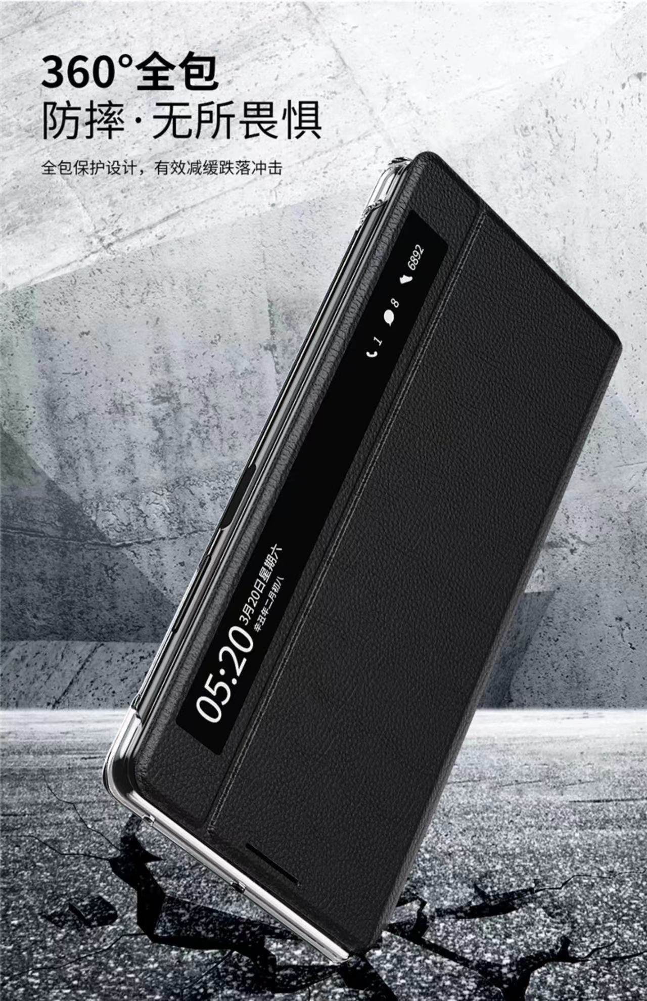 Suitable for Huawei Mate X2 Phone Case, Genuine Leather Flip Cover, New Folding Screen Full Protection Anti-Drop Case, Mate X2 Collector's Edition, High-End Business Style, Magnetic Cowhide for Men and Women