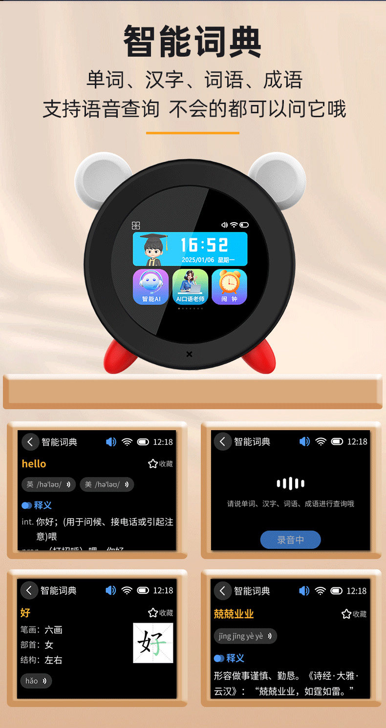 Quick and Easy Ai Intelligent Voice Alarm Clock for Primary and Secondary School Students 2025 New Model Girls' Story Machine Early Education Enlightenment English Language Training Voice Control Conversation Wake-Up Gadget Children's Timer Alarm Clock
