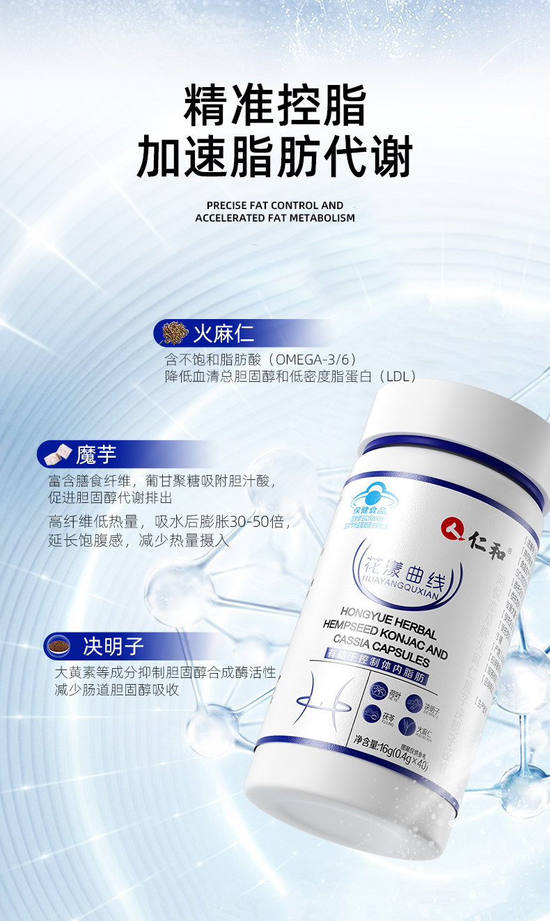 | Health Food Product Name | Hongyue Materia Medica Brand Hemp Seed, Konjac and Cassia Seed Capsules |