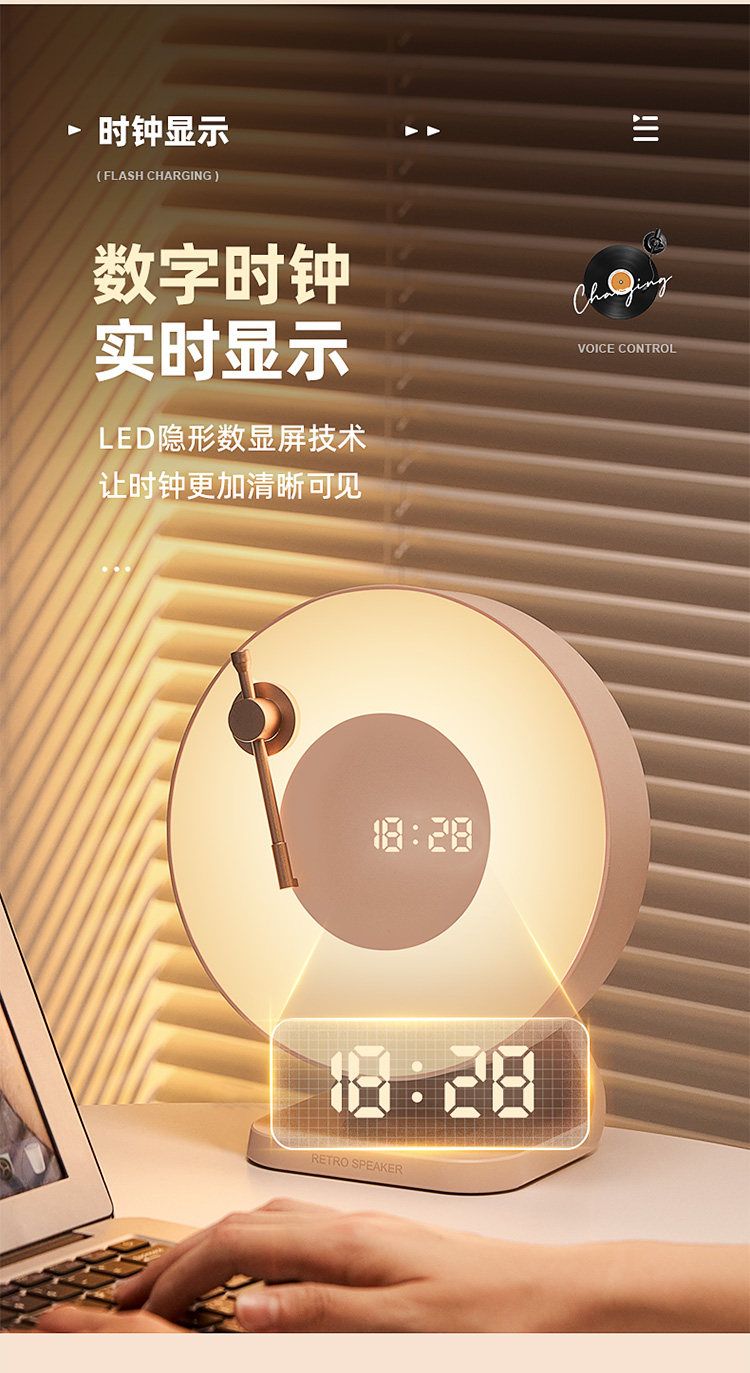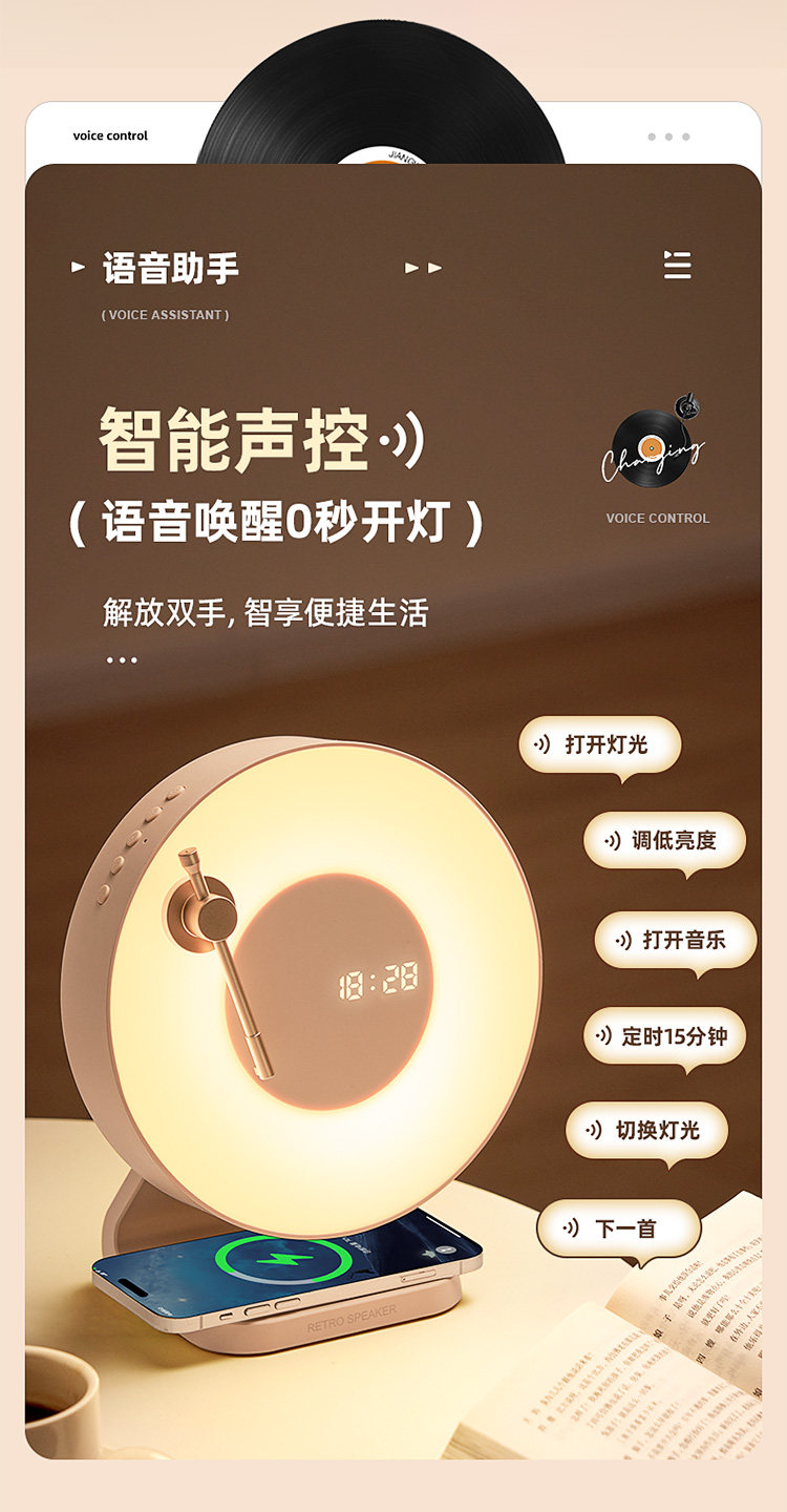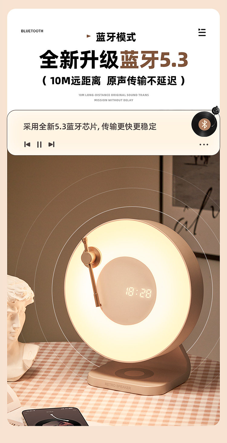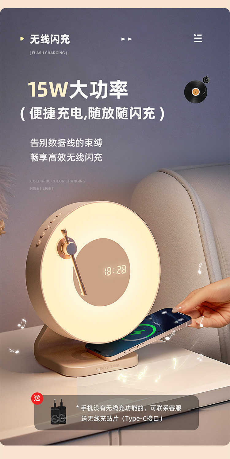 Wireless Charging Speaker, Retro Bluetooth Speaker, Bedside Atmosphere, Small Night Light, Table Lamp, New Year's Birthday Gift for Girls