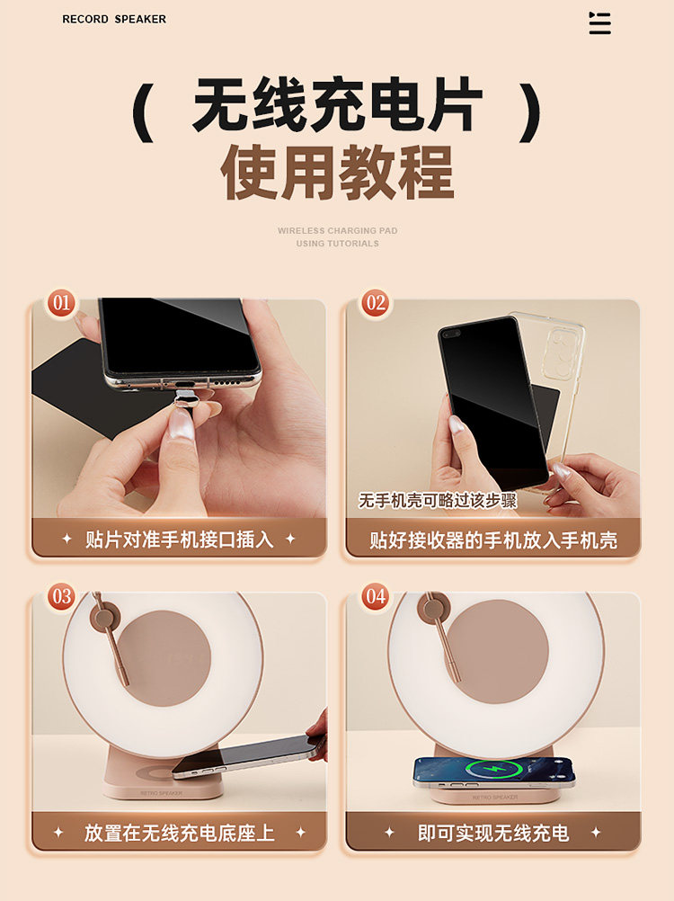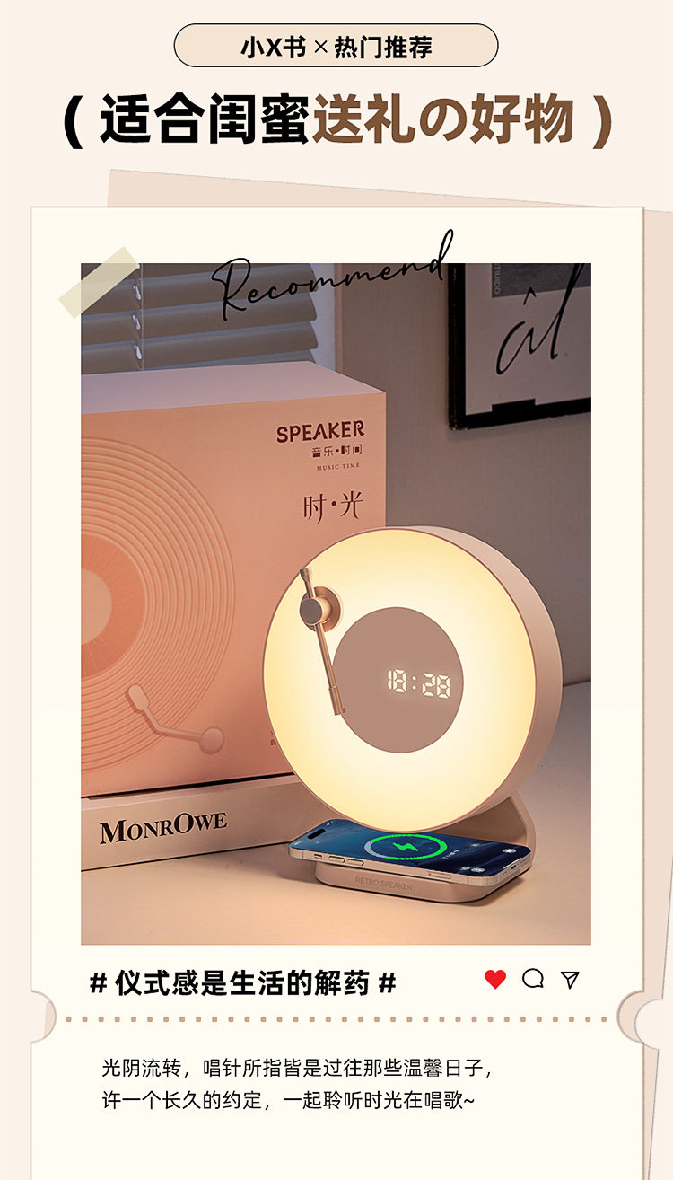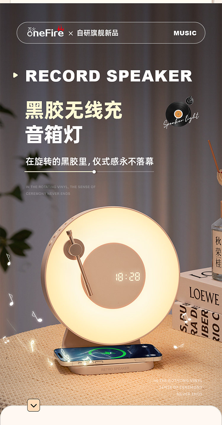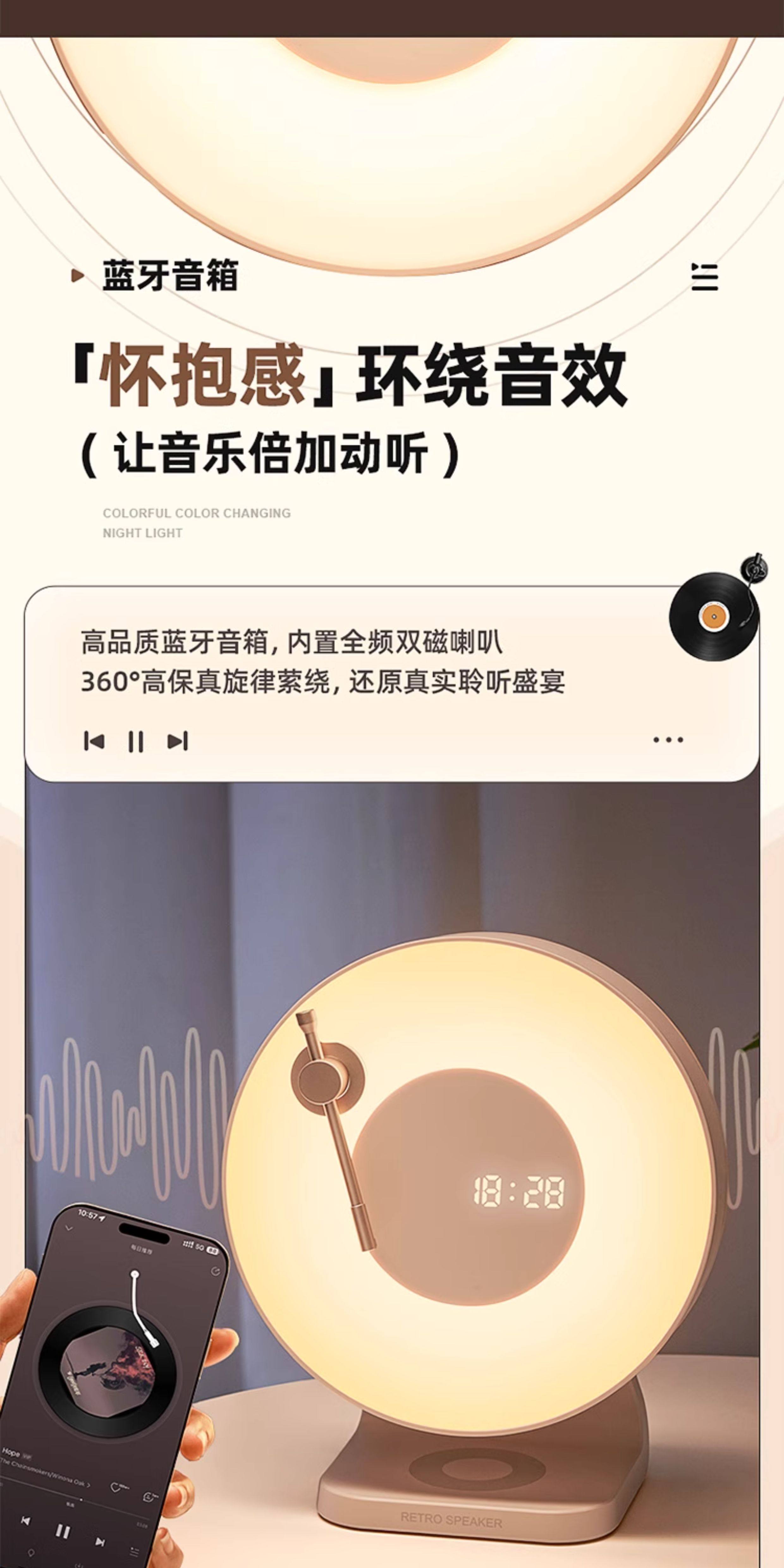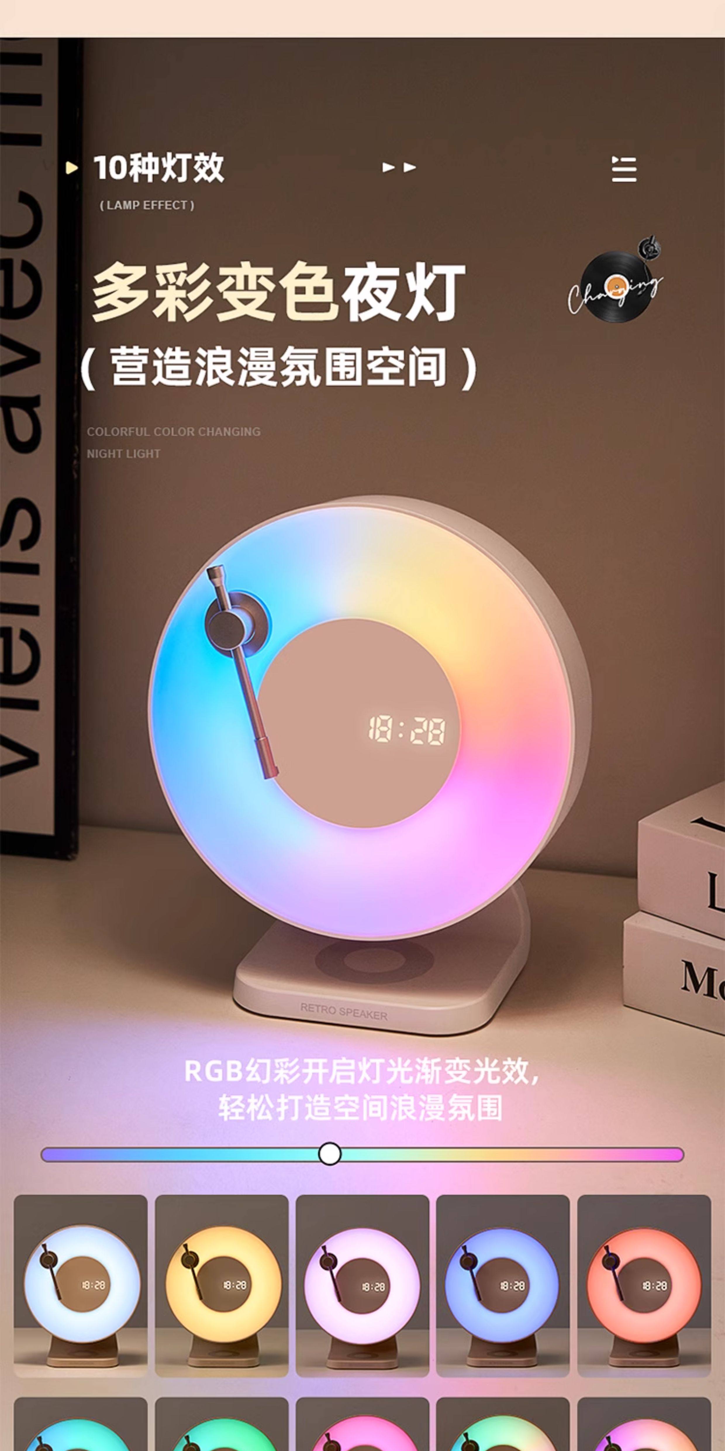 Wireless Charging Speaker, Retro Bluetooth Speaker, Bedside Atmosphere, Small Night Light, Table Lamp, New Year's Birthday Gift for Girls