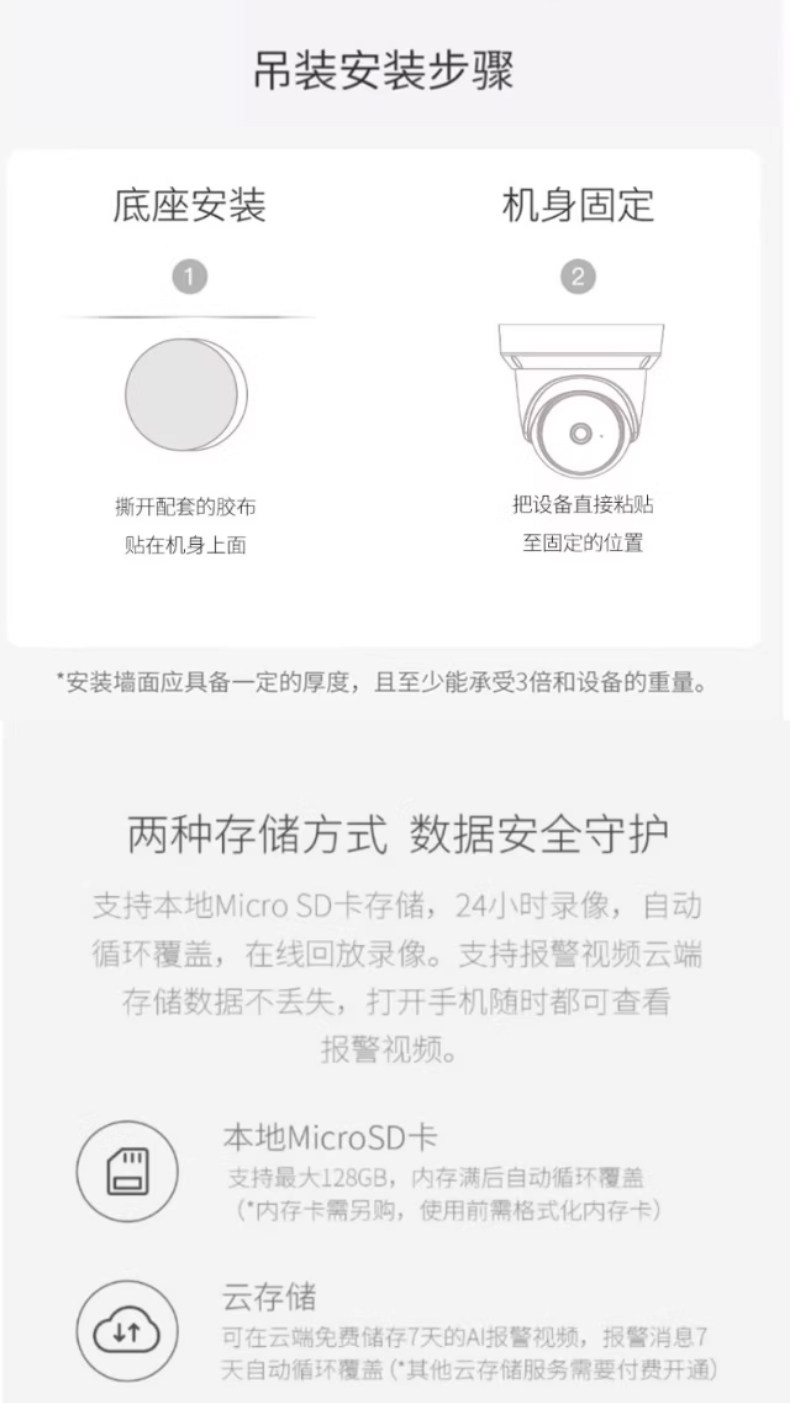 | Color Classification | Wifi Version[No Punching + 360 Panoramic View + Voice Intercom + Full Color Night Vision + Free Playback],Wifi Version + Power Outage Monitoring[No Punching + 360 Panoramic View + Voice Intercom + Full Color Night Vision + Free Playback],Wifi Model + Has Been Connected to Mijia App[360°Panoramic View + Two-Way Audio + Ai Human Detection],Wifi Model + Connected to Mijia App + Battery Life after Power Failure[360°Panoramic View + Two-Way Audio + Ai Human Detection] |