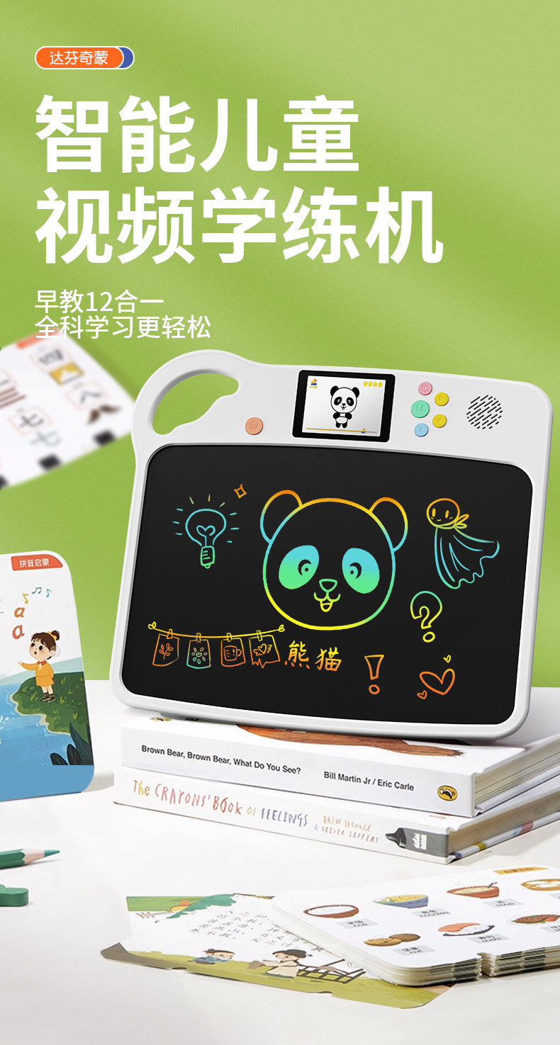 Da Vinci Mon New Year's Gift Children's Learning Machine Intelligent Early Education Lcd Handwriting Board Drawing Board Pinyin Spelling Training Literacy Idioms Oral Arithmetic English Learning Machine Early Education Idioms Birthday Gift