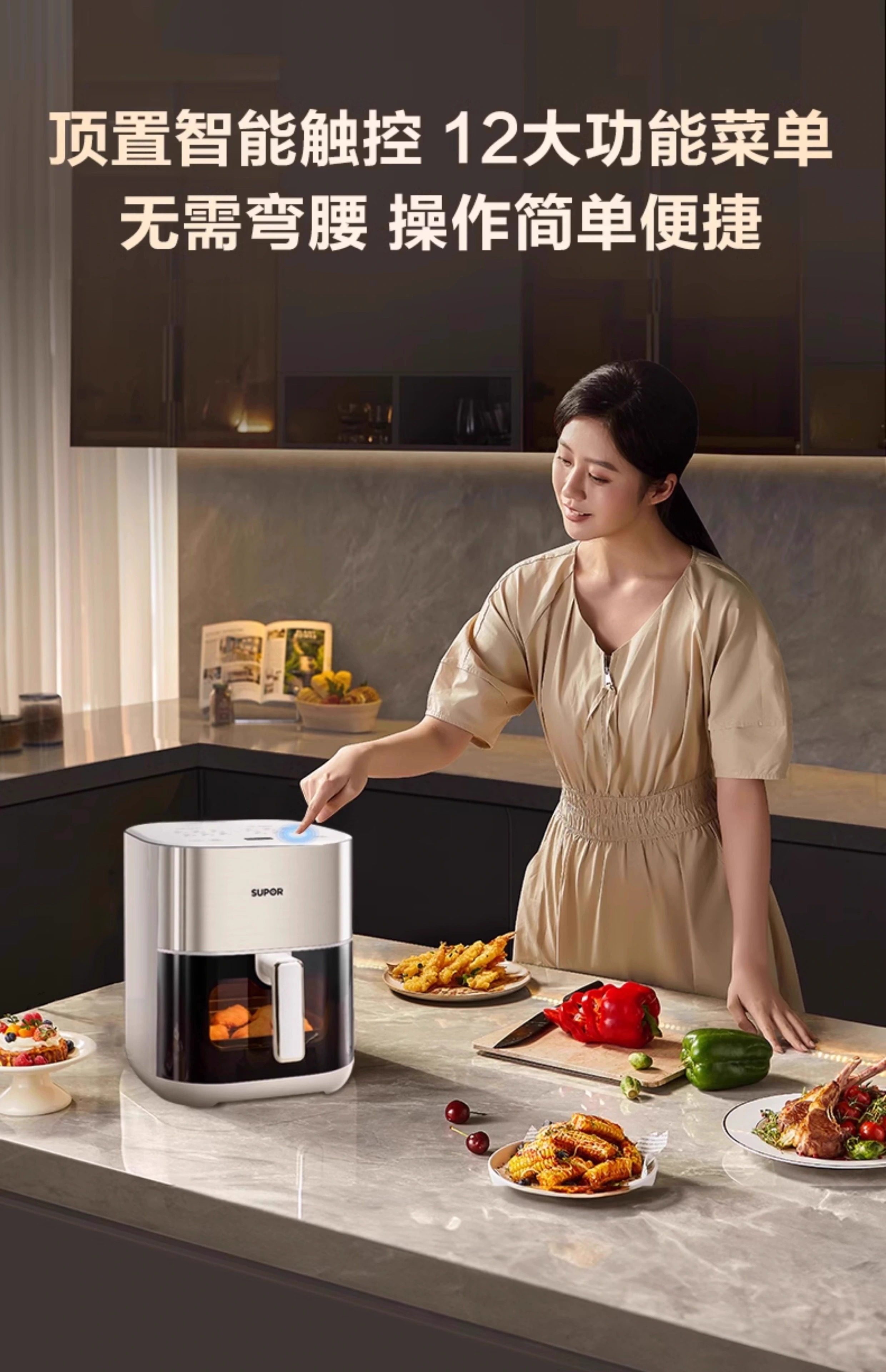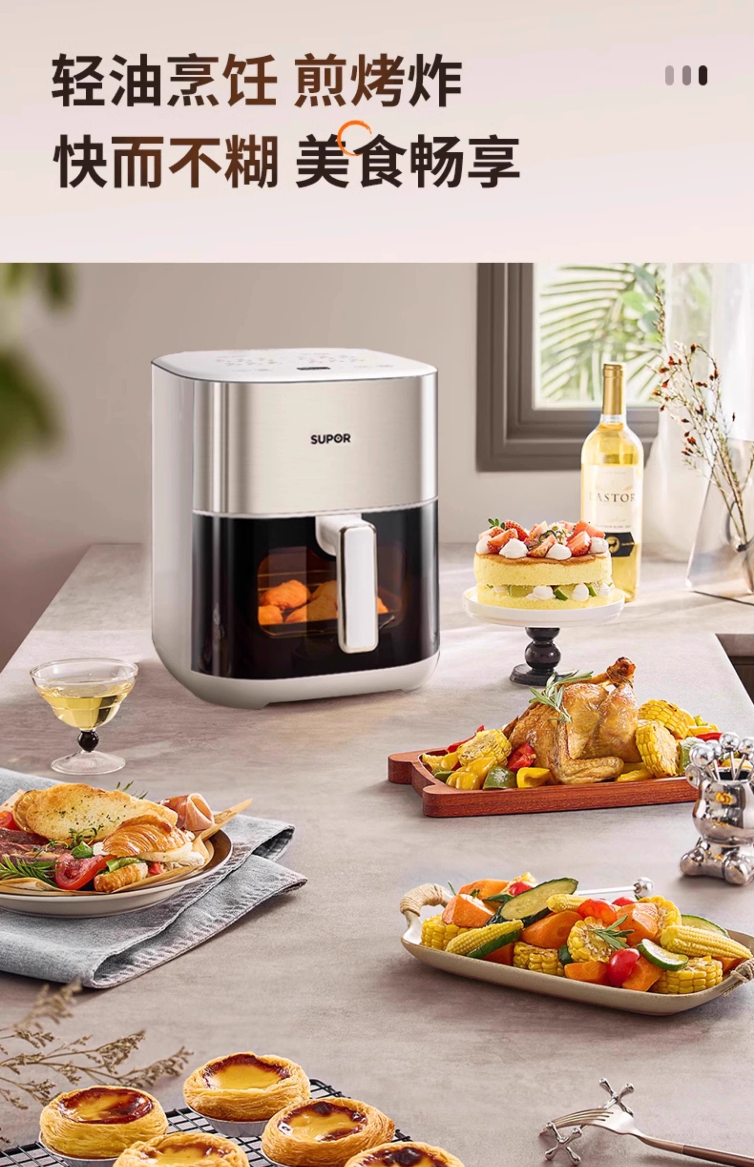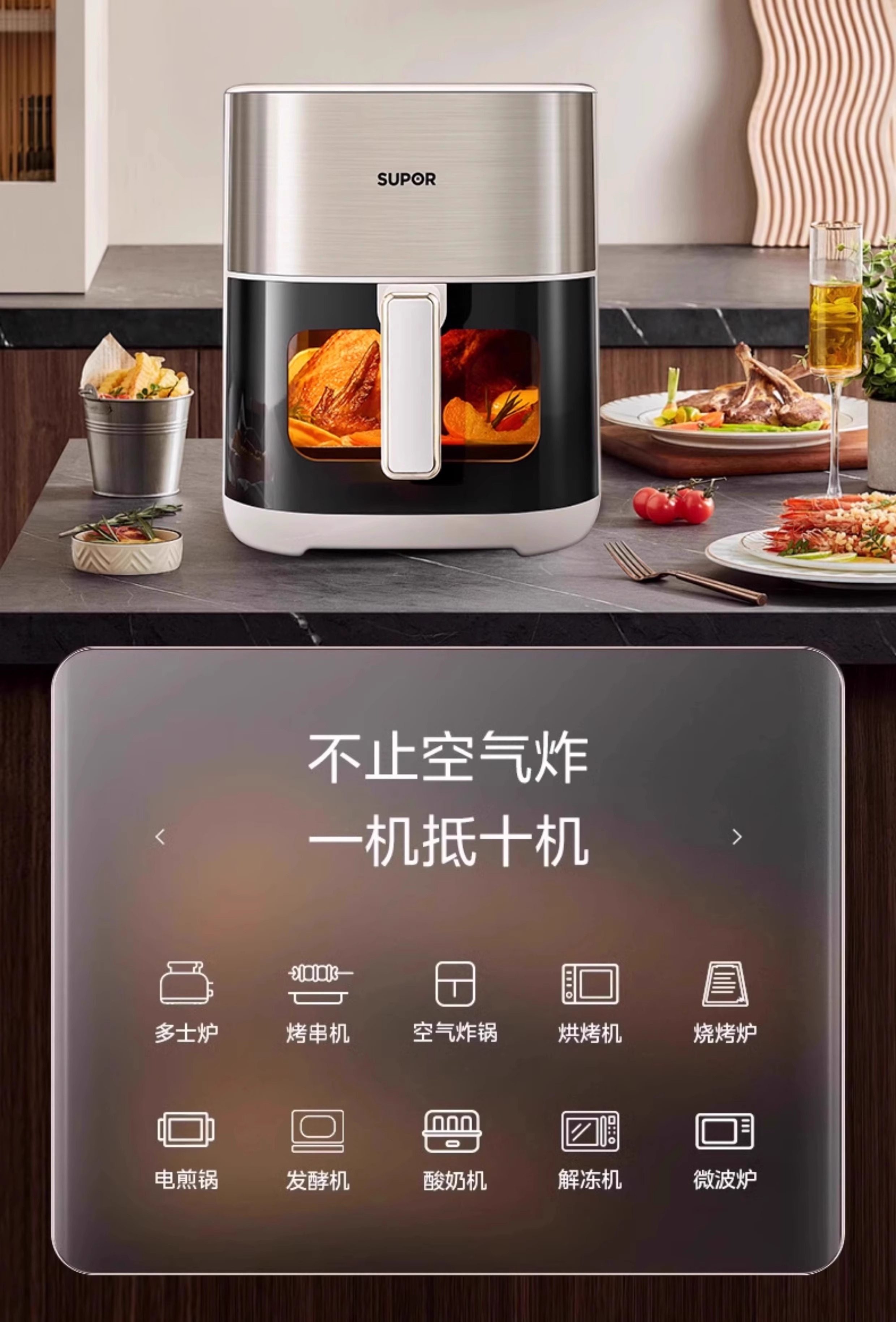 Supor Air Fryer for Home Use, New Model with Large Capacity, Visible Multi-Function Dual Heat Source Electric Fryer and Oven All-In-One Machine