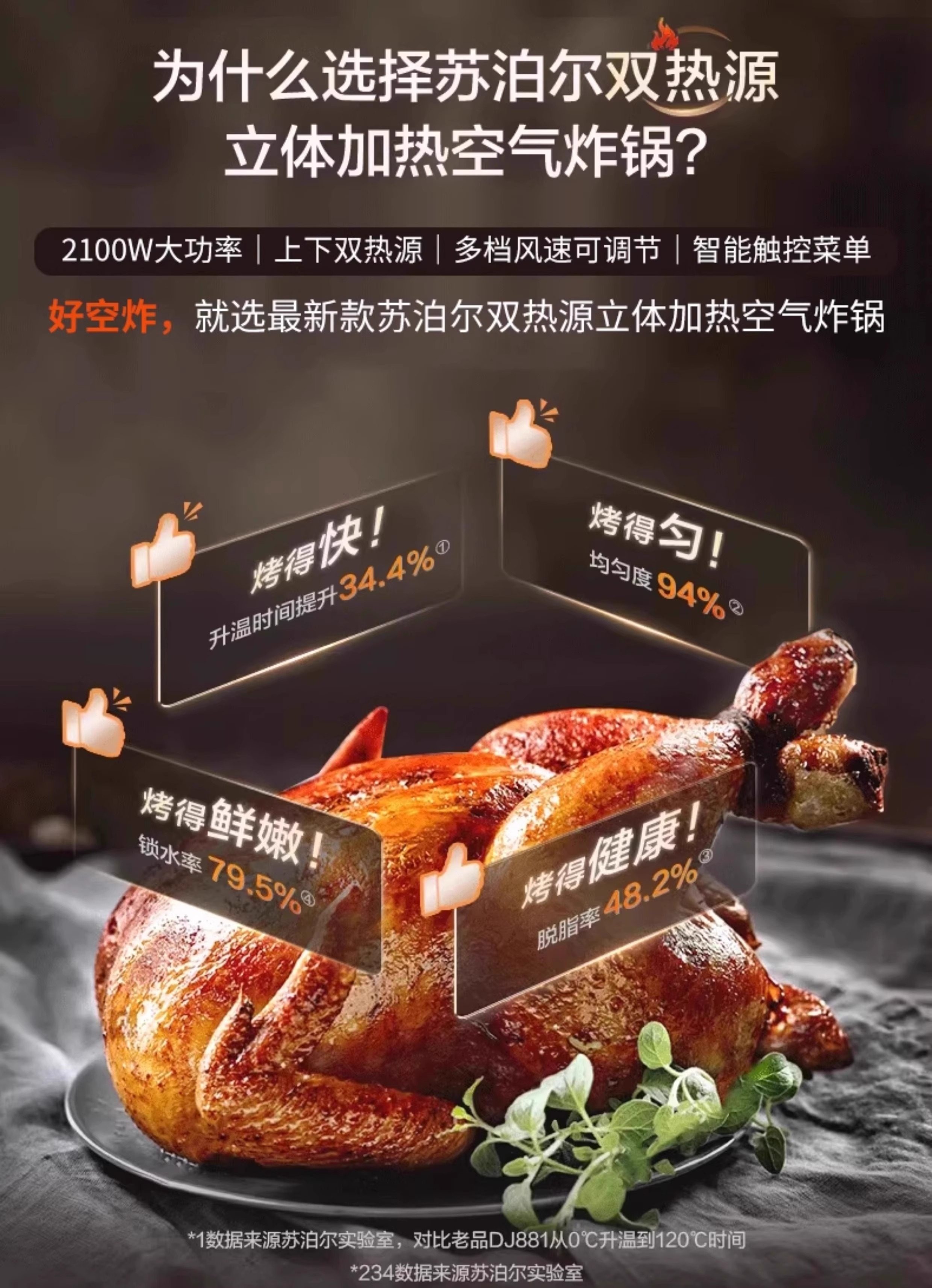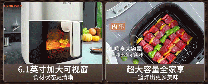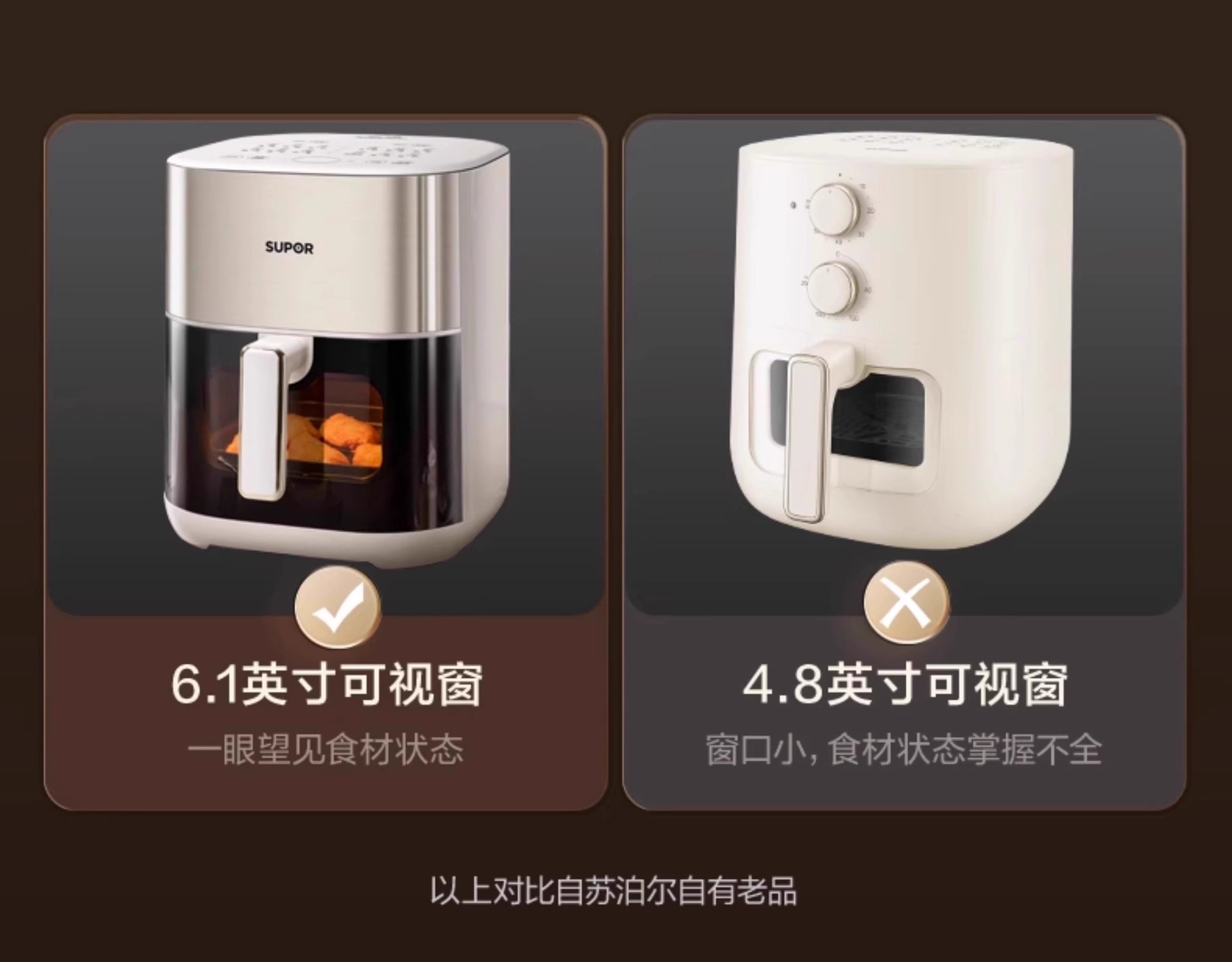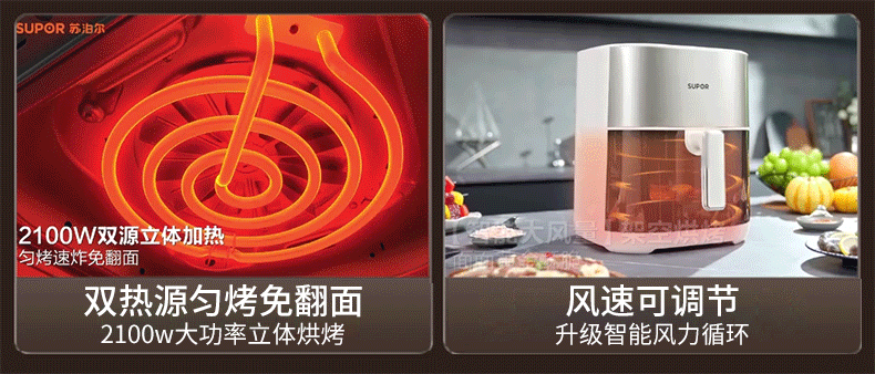 Supor Air Fryer for Home Use, New Model with Large Capacity, Visible Multi-Function Dual Heat Source Electric Fryer and Oven All-In-One Machine