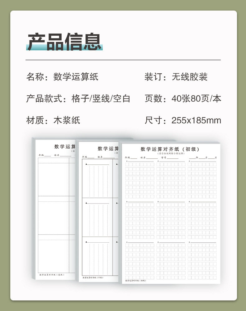 Mathematical Operation Draft Paper Primary School Students Partition Draft Book Grids Writing Postgraduate Entrance Examination Special Calculation Practice Thickeneding