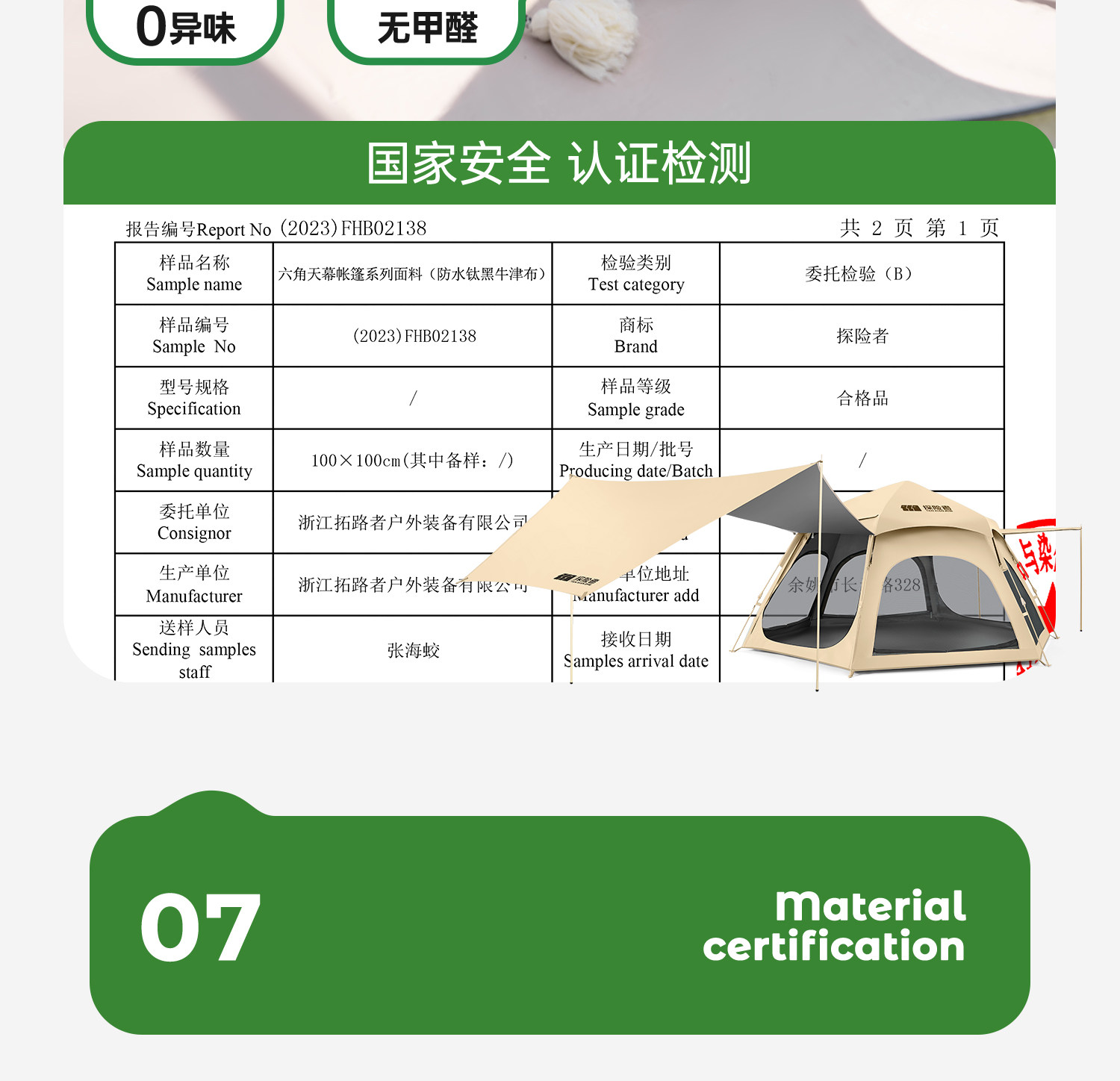 | External Tent Waterproof Index | 2000mm (Inclusive)-3000Mm (Inclusive) |