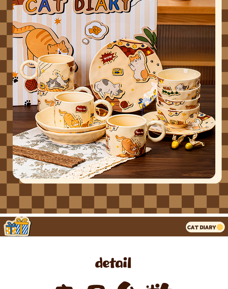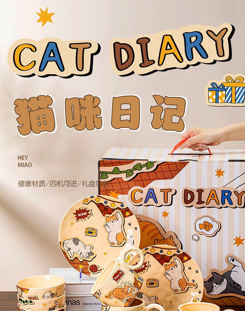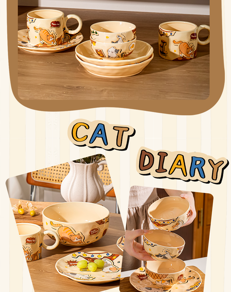 | Color Classification | Multi-Layer Shockproof Exquisite Packaging❤ Challenge Shipping "0" Damage,Microwave Oven / Dishwasher / Steam Oven / Air Fryer - Four-In-One Compatibility,Gift Box-Cat Diary 18 Pieces for 4 People,⭐High Temperature Firing⭐Contact Customer Service for Discounts,⭐ |