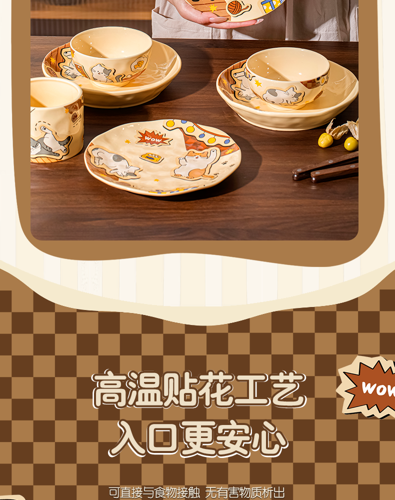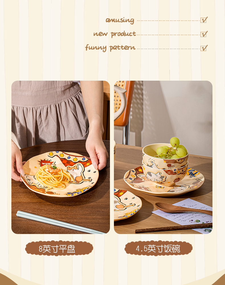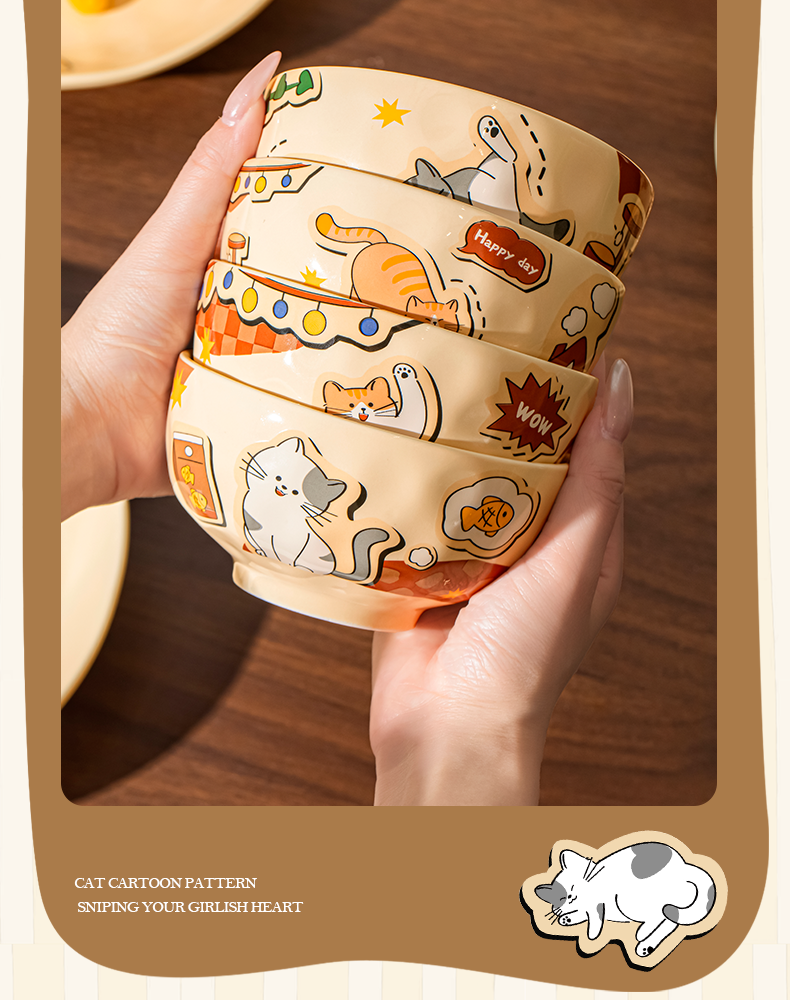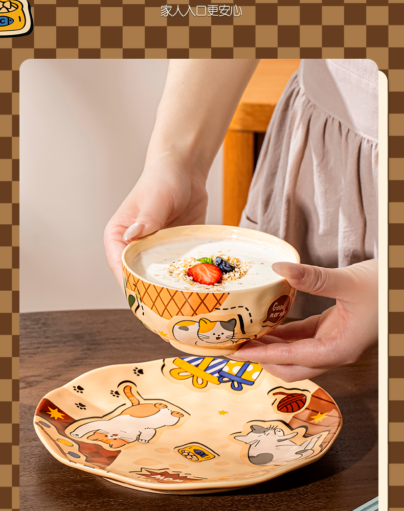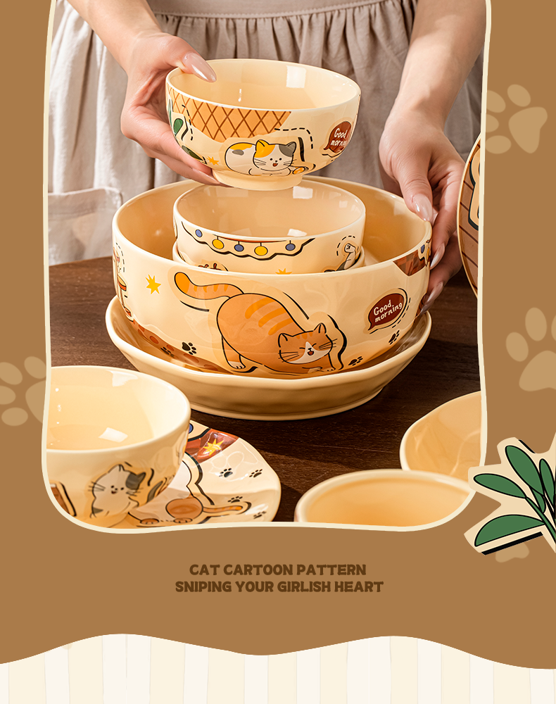 Cute Cartoon Cat, Adorable and Good-Looking, Bowl and Plate Set, Tableware, Bowls and Plates, Children's Best Friend, Housewarming, Birthday Gift