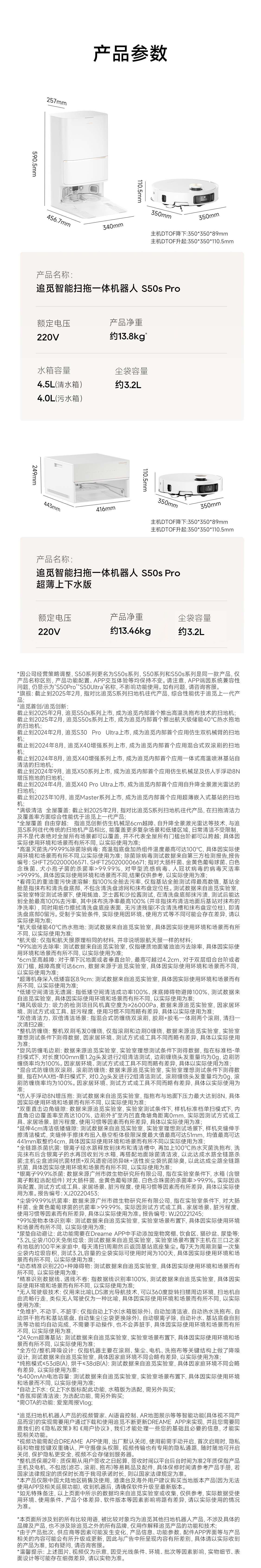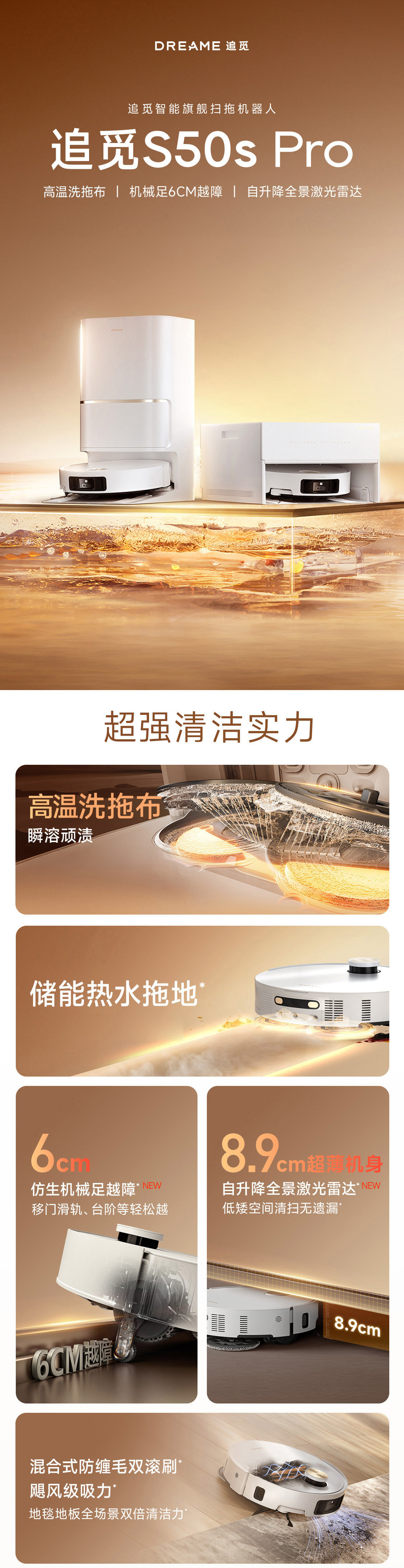 [Li Jiaqi's Live Streaming Snack Festival] Dreame Robot Vacuum Cleaner S50Spro Sweeping, Mopping, and Washing All-In-One, 6cm Obstacle Avoidance