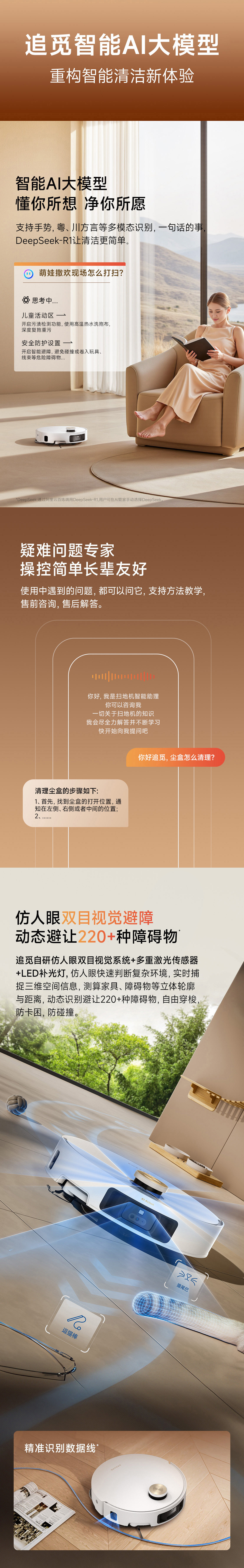 | Additional Features | Carpet Identification,Spot Cleaning,Disinfection,Sterilization,Carpet Cleaning Plan,Automatic Cleaning,Drying,Remote Control,Appointment,Continue Scanning after Power Failure,Mop Type,App Control,Voice Control,Area Cleaning,Yanbian Cleaning,Dust Identification,Real-Time Video Interaction,Prevent Hair from Tangling |