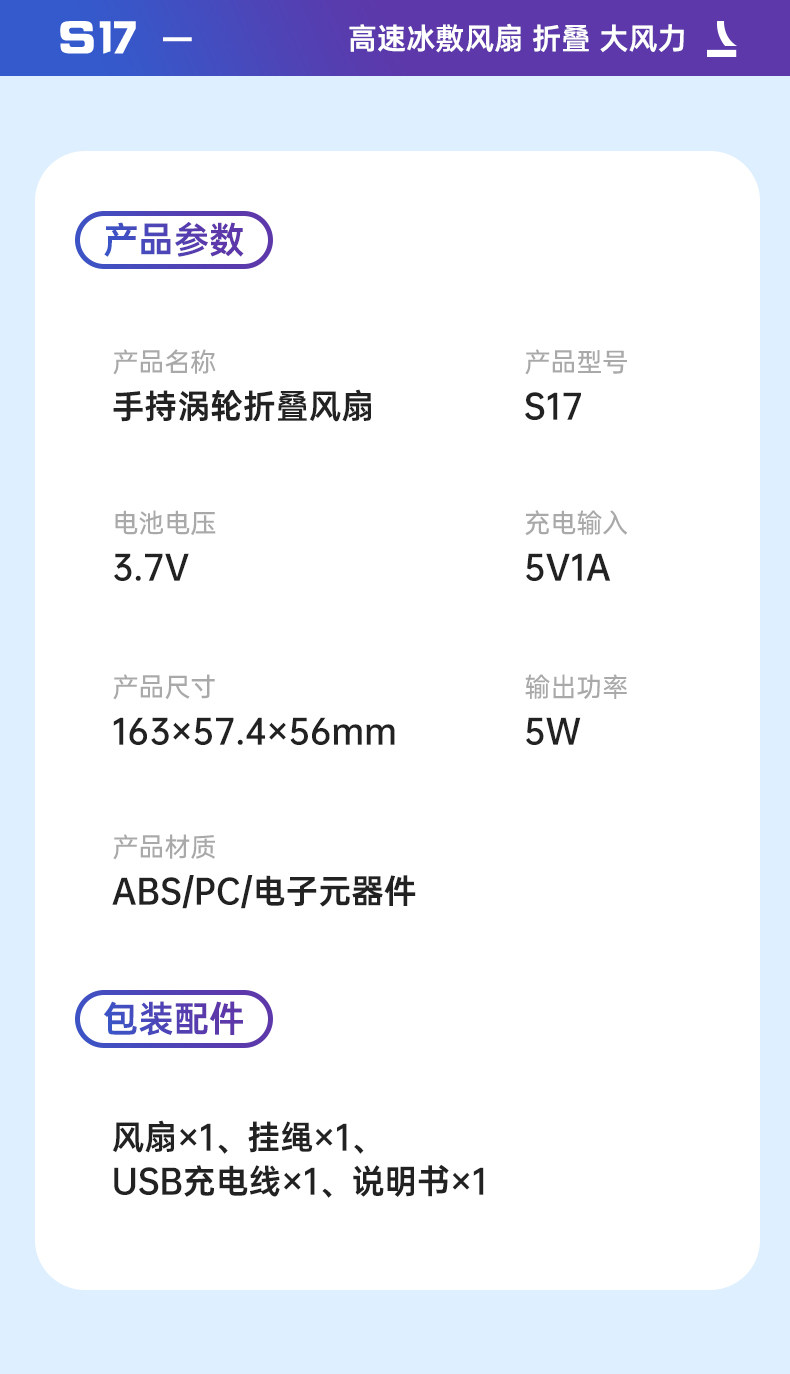 | Model | S17 Handheld Folding Turbofan |