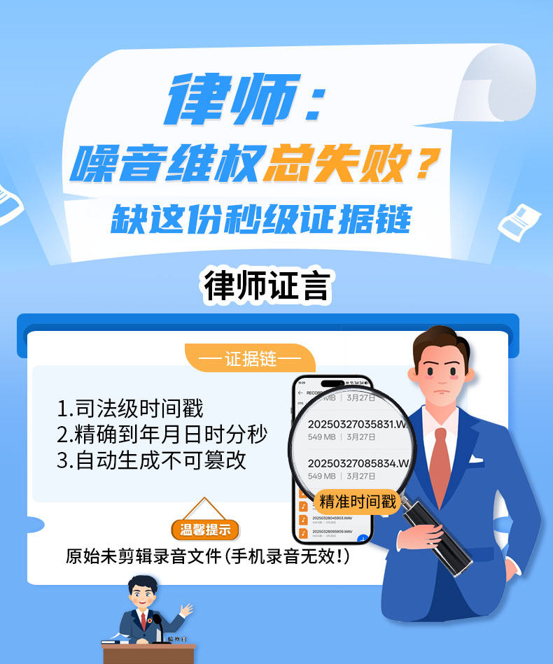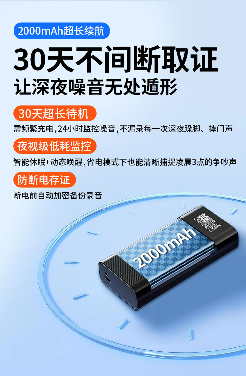 Upstairs Noise Collector with Time-Intelligent Voice Control, Wireless High-Definition Timed Recording, Long-Lasting Recording Pen for Rooms