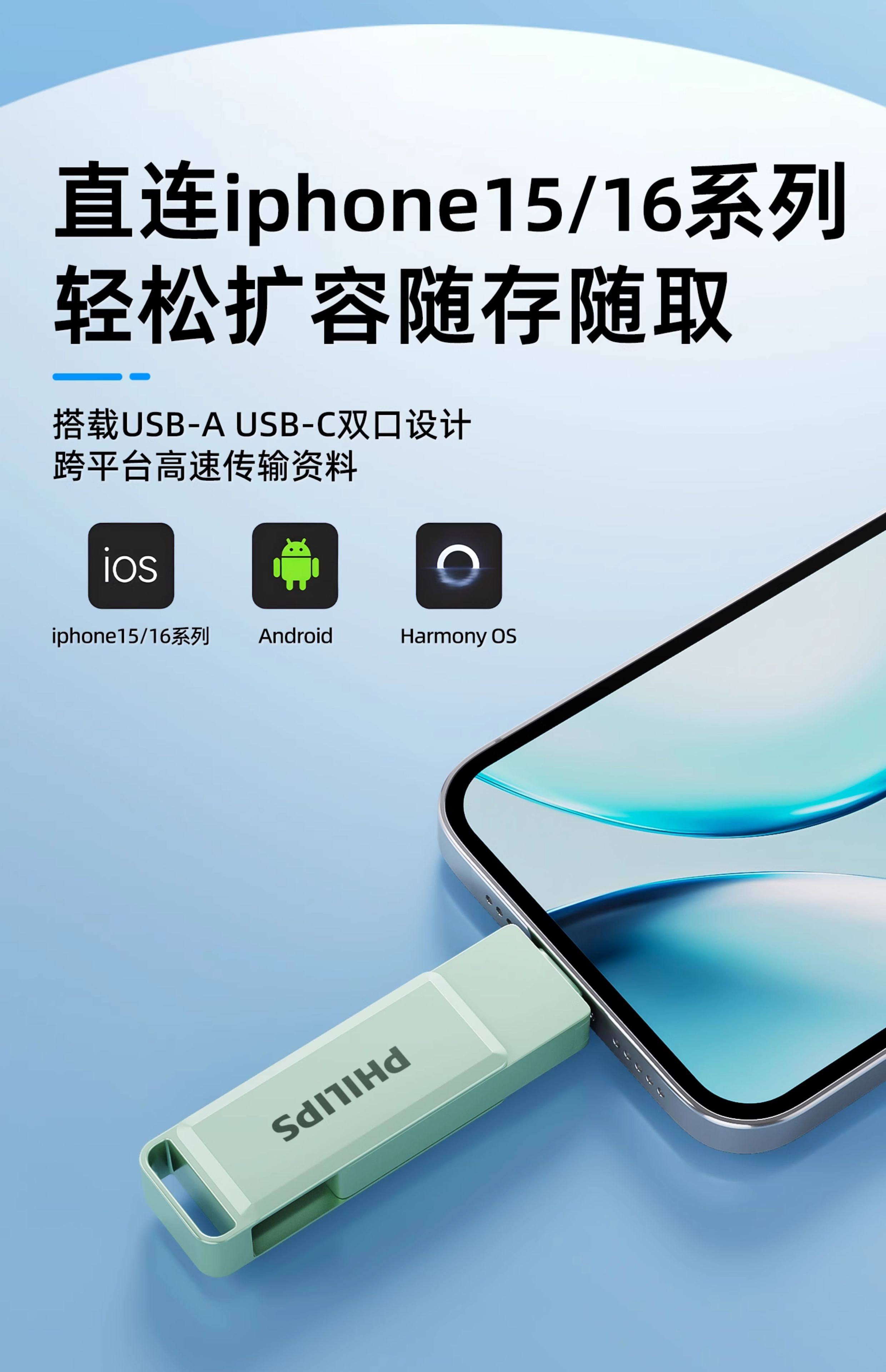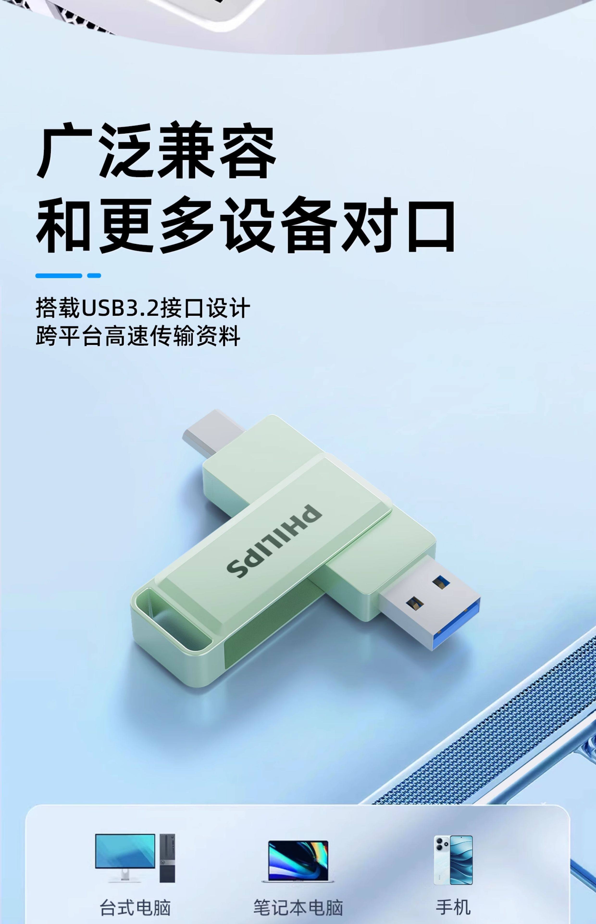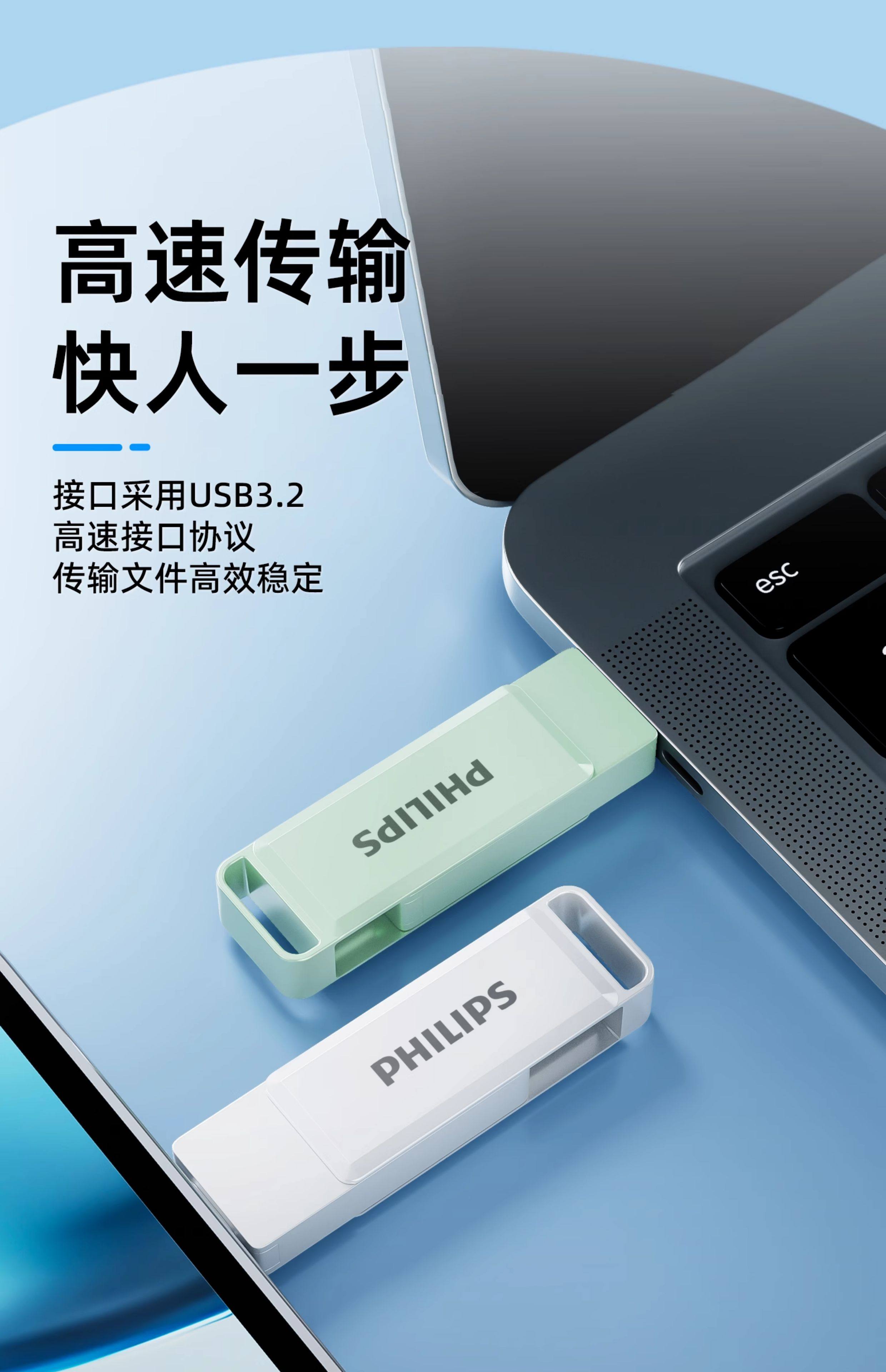 Philips USB Flash Drive Is Suitable for Both Apple Mobile Phones and Computers, Dual-Interface Typec, Large Capacity 128g High-Speed USB Flash Drive