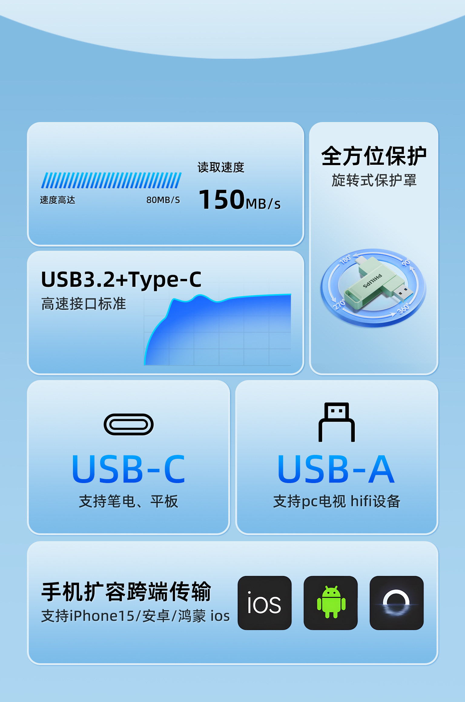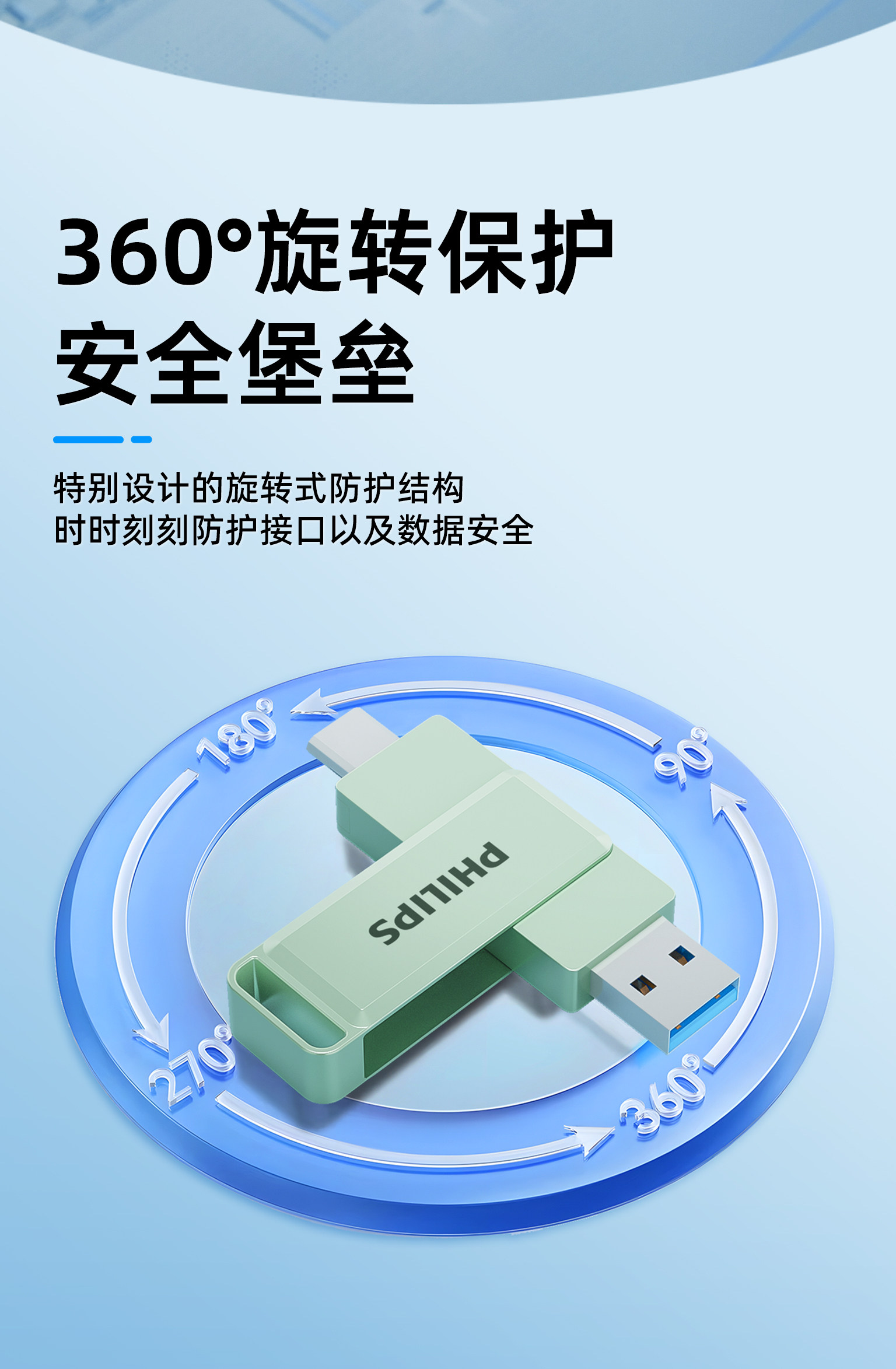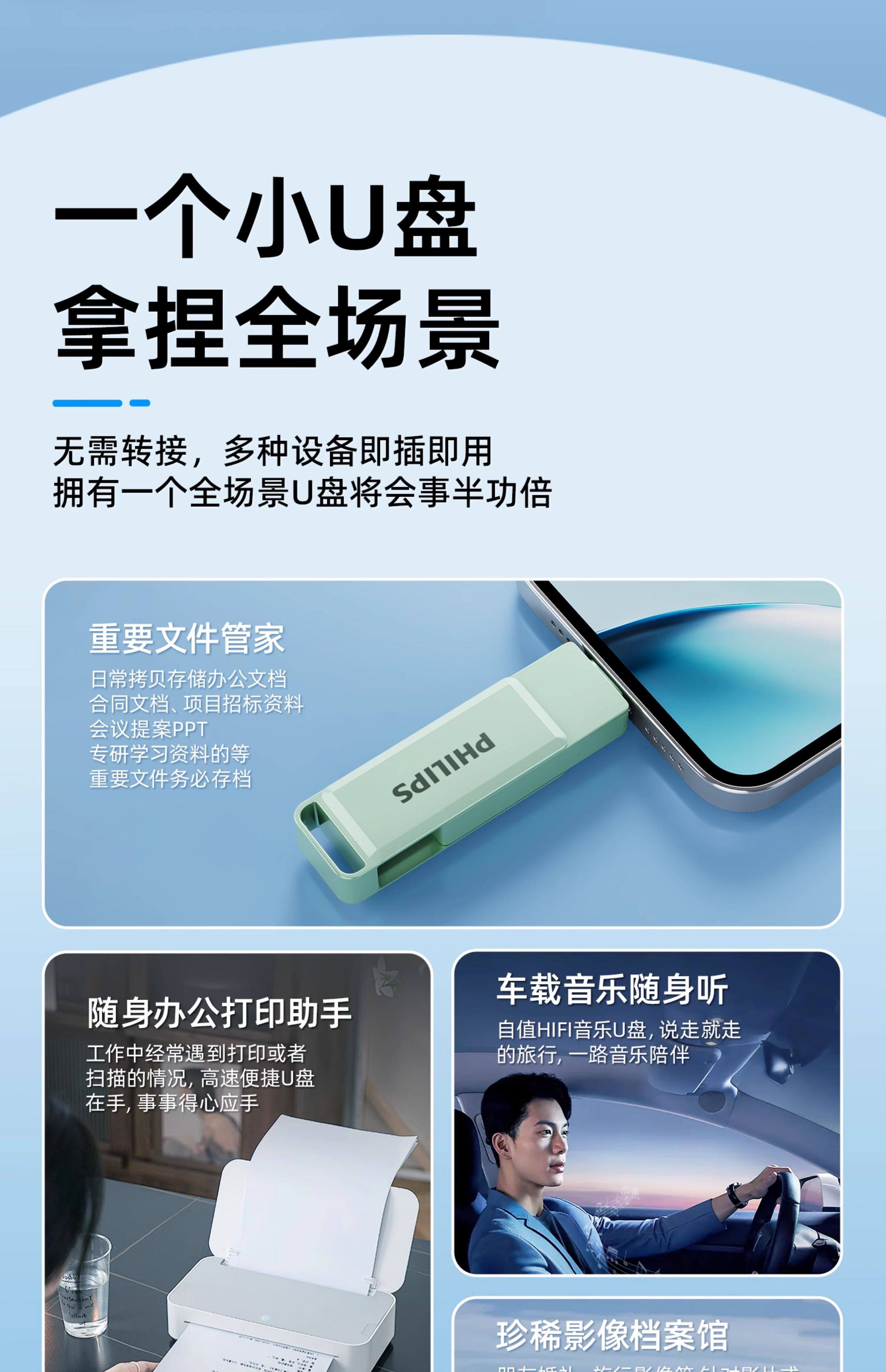Philips USB Flash Drive Is Suitable for Both Apple Mobile Phones and Computers, Dual-Interface Typec, Large Capacity 128g High-Speed USB Flash Drive