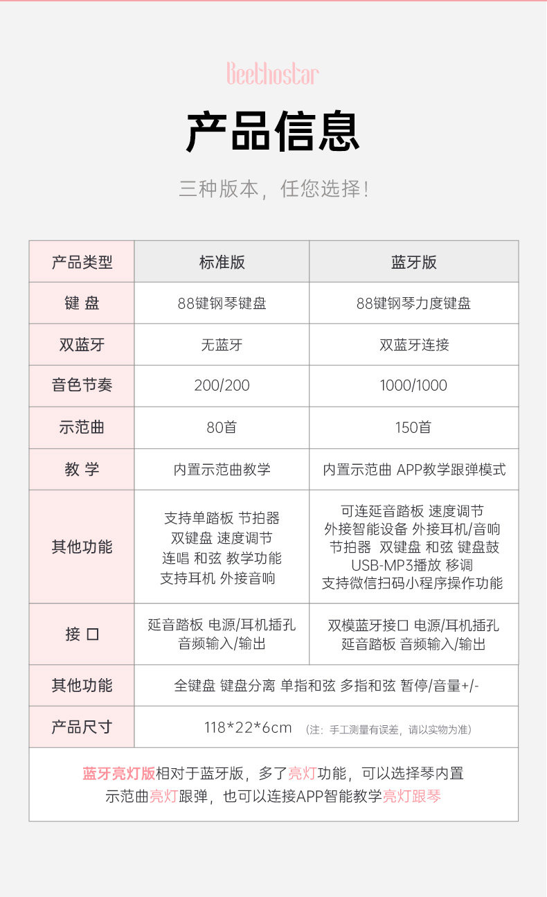 | Color Classification | [Purple Foldable]88-Key Standard Version,[Purple Foldable]88-Key Bluetooth Version,[Purple Foldable]88-Key Bluetooth Illuminated Version,[Black Foldable]88-Key Standard Version,[Black Foldable]88-Key Bluetooth Version,[Black Foldable]88-Key Bluetooth Illuminated Version,[White Folding]88-Key Standard Version,[White Folding]88-Key Bluetooth Version,[White Folding]88-Key Bluetooth Illuminated Version,[White Powder Key Folding]88-Key Standard Version,[White Powder Key Folding]88-Key Bluetooth Version,[White Powder Key Folding]88-Key Bluetooth Illuminated Version,[Pink Pink Key Foldable]88-Key Standard Version,[Pink Pink Key Foldable]88-Key Bluetooth Version,[Pink Pink Key Foldable]88-Key Bluetooth Illuminated Version |