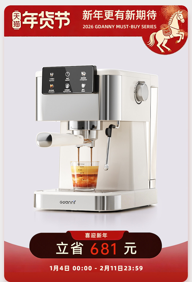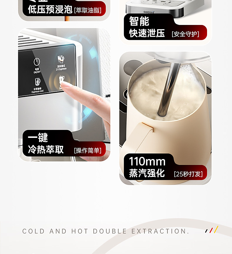 German Gdanny Coffee Machine, Hot and Cold Extraction, Household Small Semi-Automatic, American and Italian Style, Steam Milk Frother, 2026 New Model