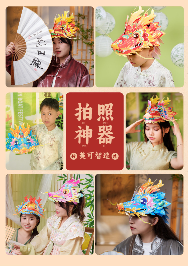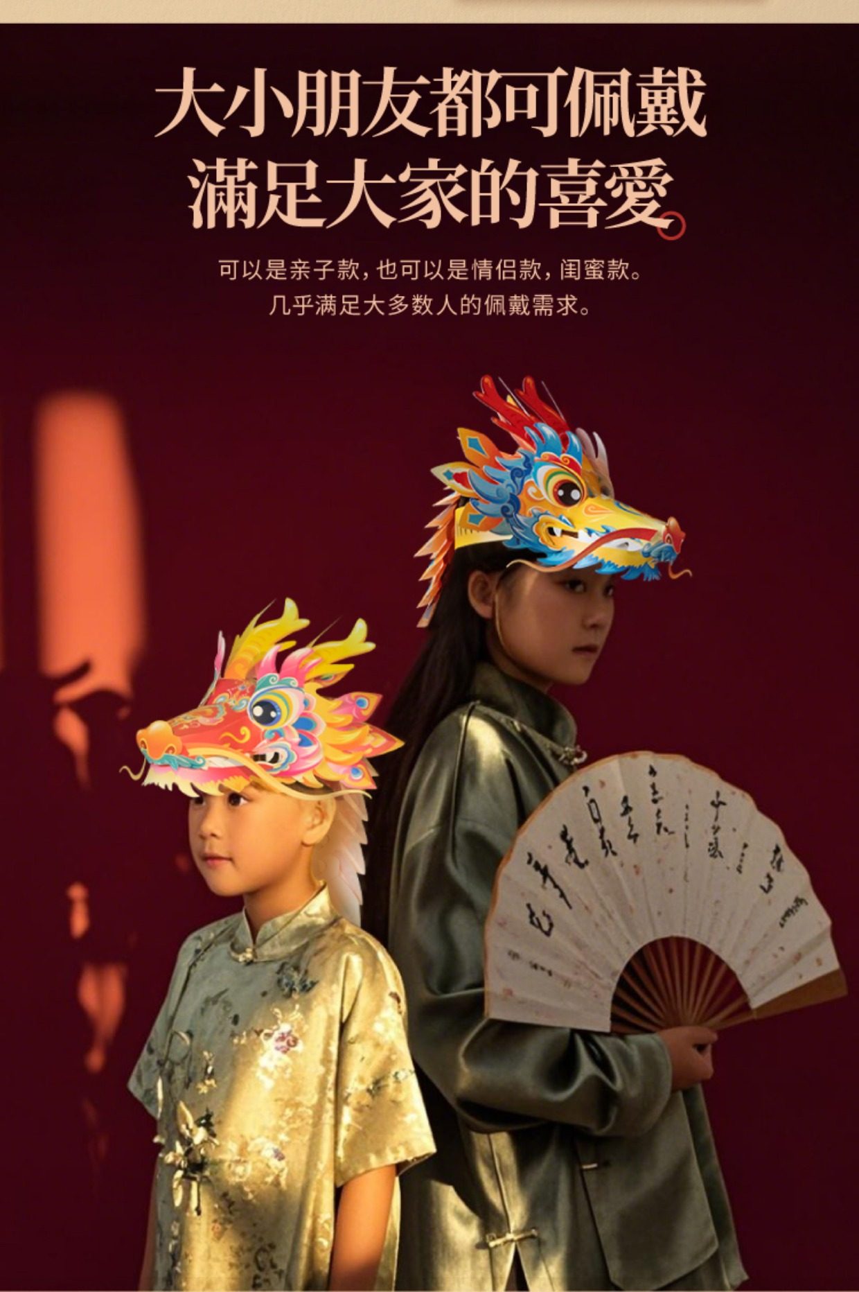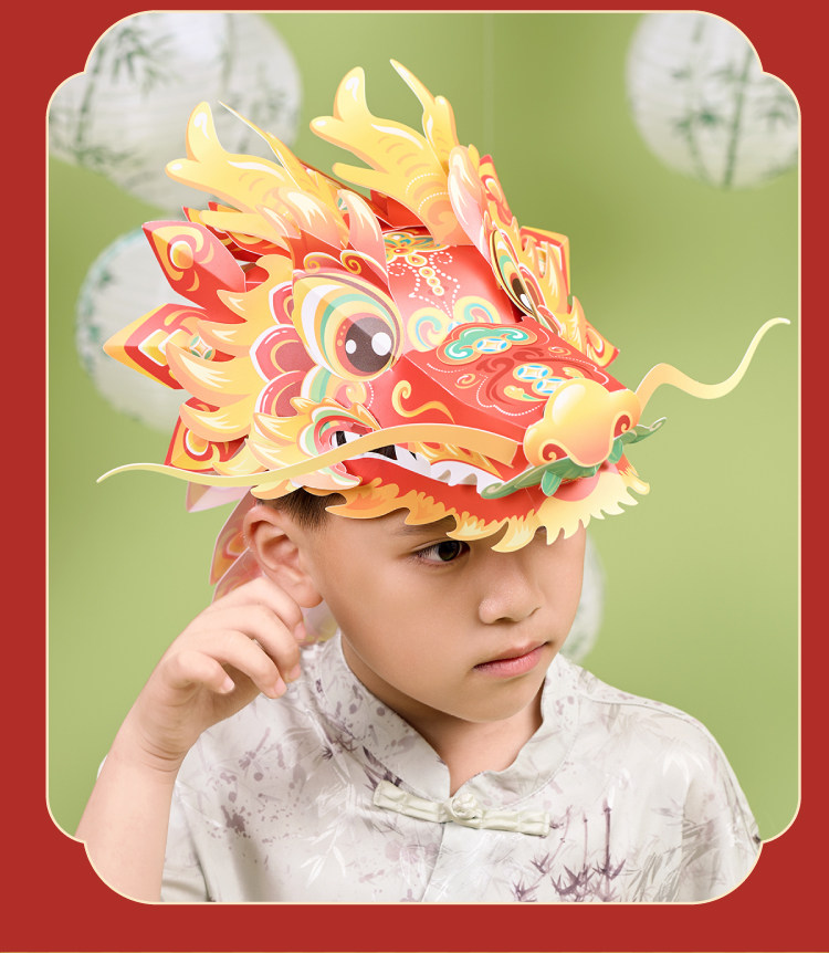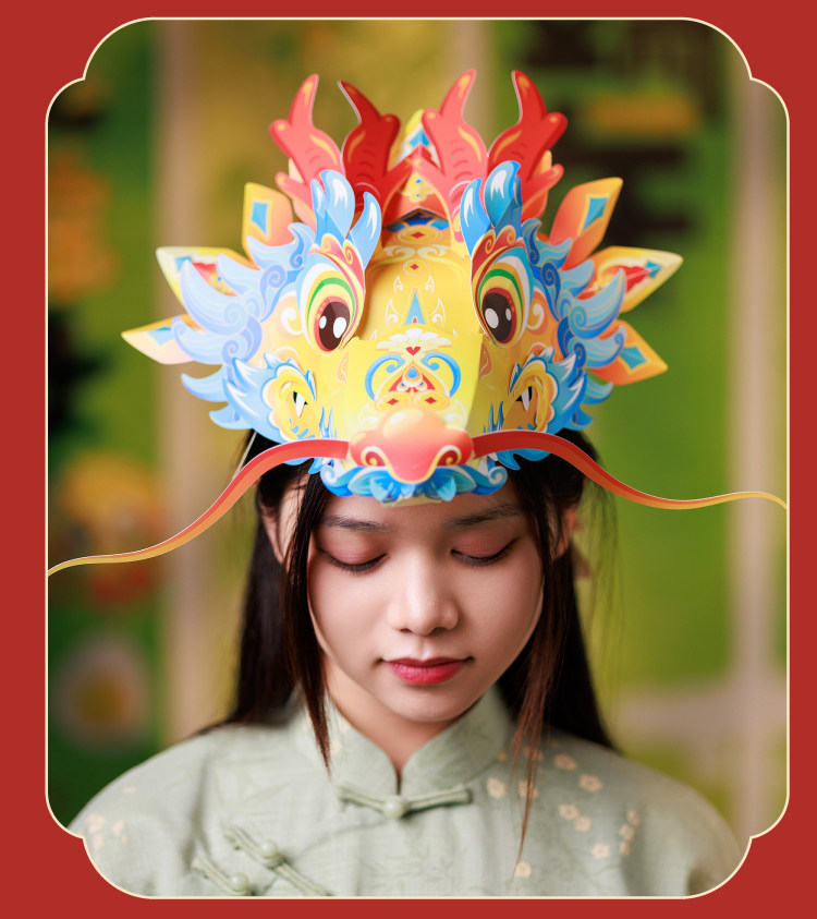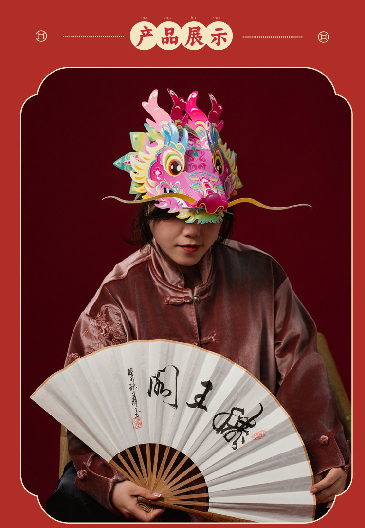 Dragon Boat Festival DIY Handmade Dragon Head Hat Children's Craft Materials Dragon Boat Kindergarten Intangible Cultural Heritage Performance Props Headdress
