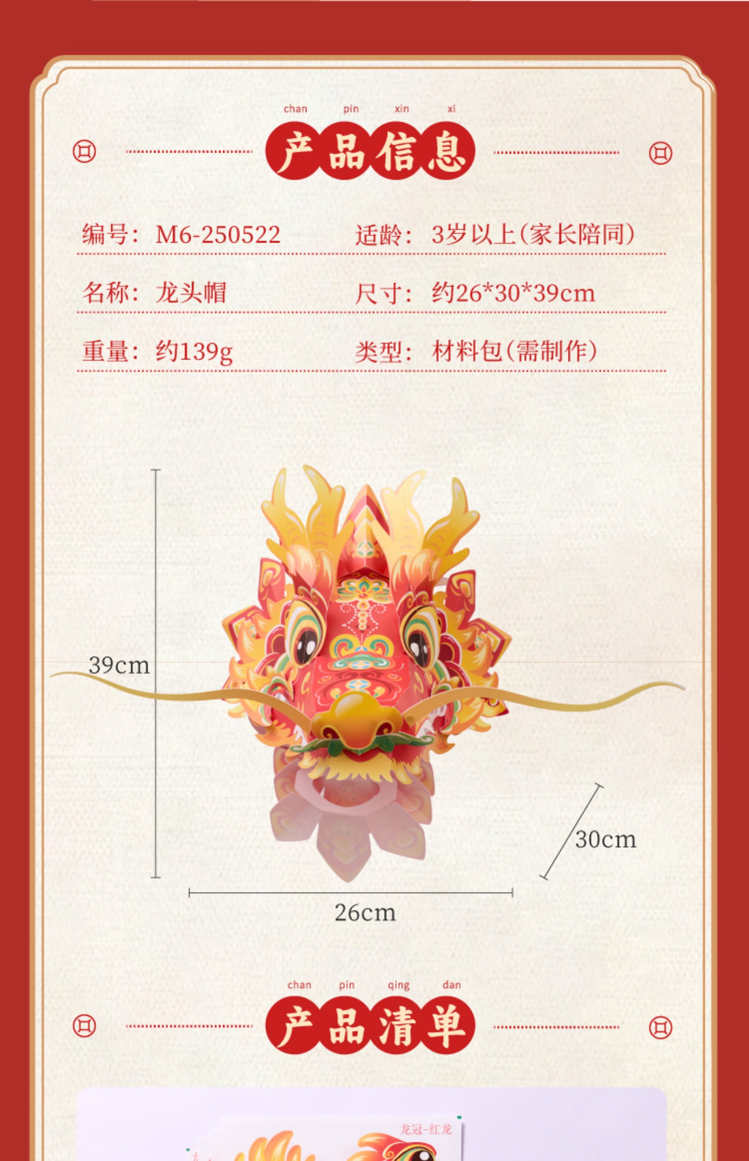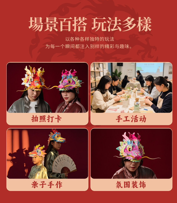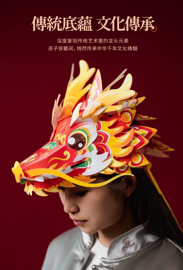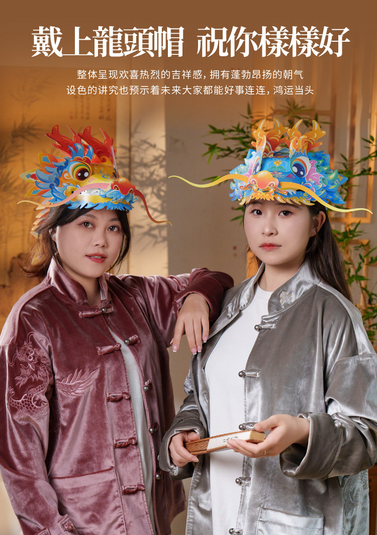 Dragon Boat Festival DIY Handmade Dragon Head Hat Children's Craft Materials Dragon Boat Kindergarten Intangible Cultural Heritage Performance Props Headdress