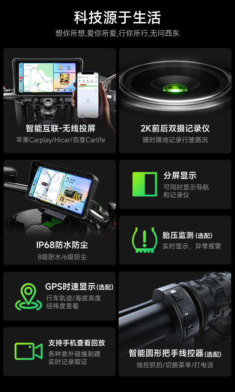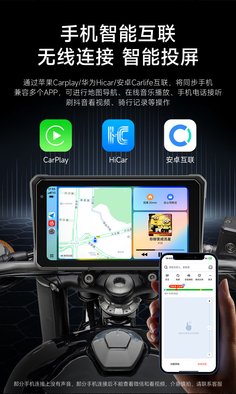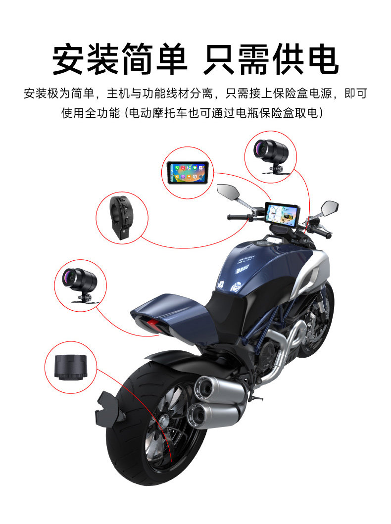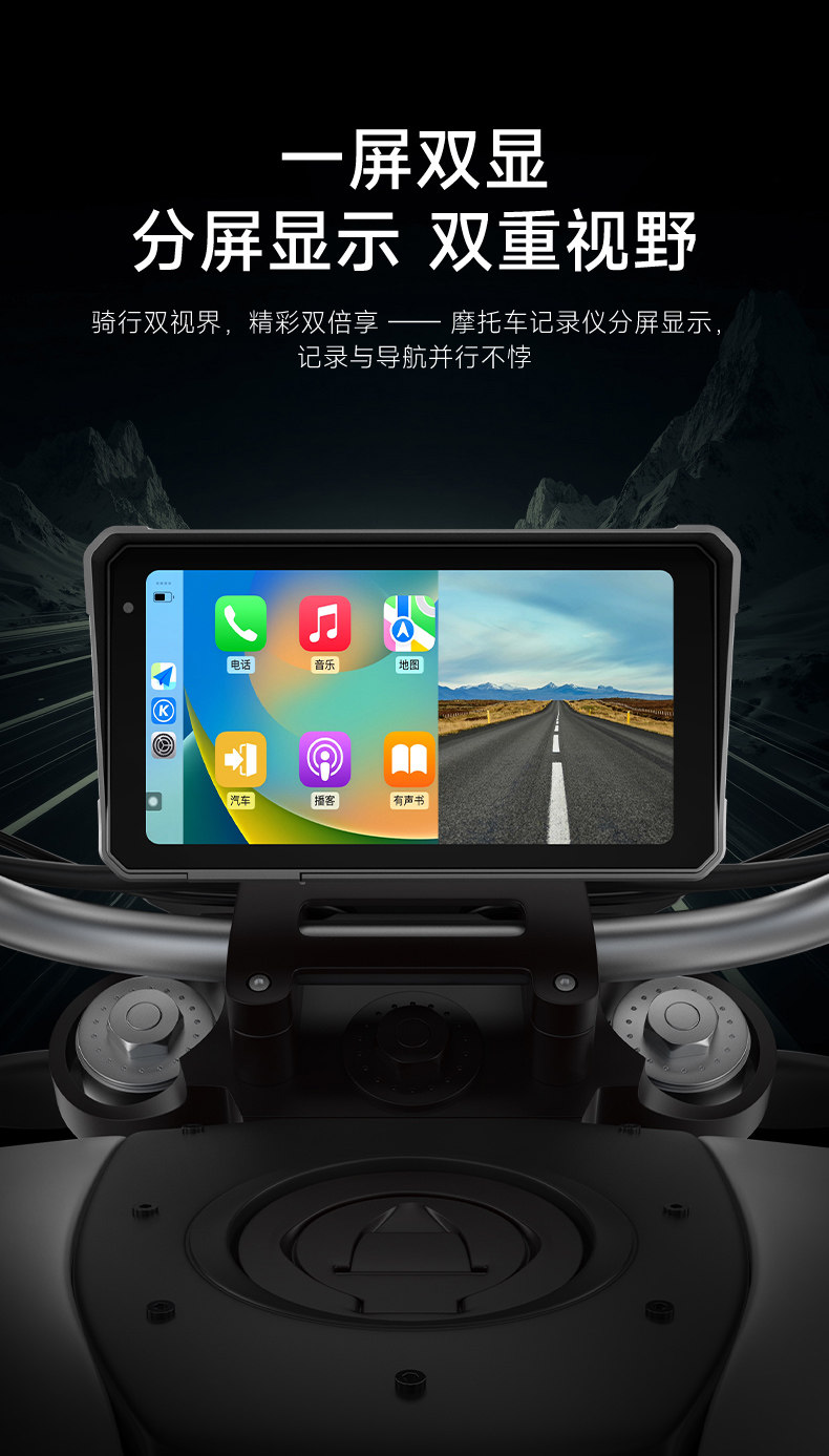 Motorcycle-Specific Driving Recorder 6inch Smart Car Navigation Screen All-In-One Machine with Carplay and Dual Front and Rear Lenses