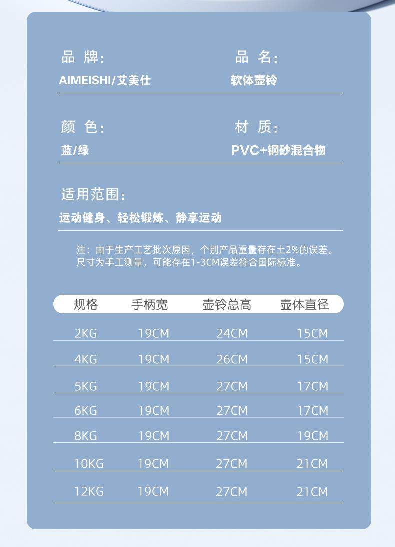 | Color Classification | Blue Sea Blue[5kg]Recommended for Boys,Blue Sea Blue[6kg]Little Strength Recommended for Men,Turquoise Green[6kg]Little Strength Recommended for Men,Turquoise Green[8kg]Recommended for Beginners,Blue Sea Blue[8kg]Recommended for Beginners,Blue Sea Blue[10kg]Comfy Basics of Fitness Recommendations,Blue Sea Blue[12kg]Professional Strength Training Recommendations,Turquoise Green[5kg]Recommended for Boys |