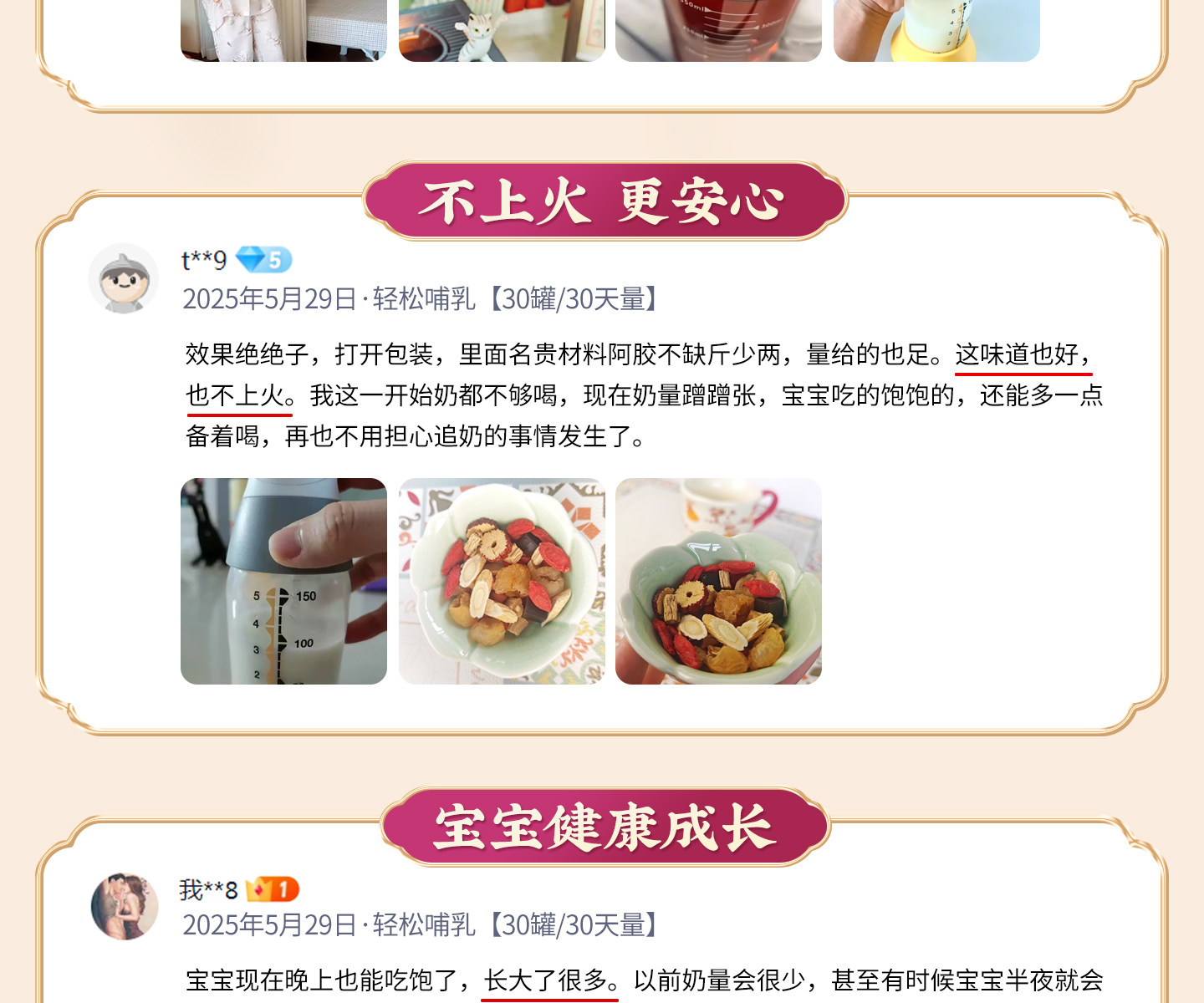 | Taste | 【1.0 Basic Edition】Specially Formulated for New Moms. 【30 Jars/30-Day Supply】,[2.0 Upgraded Version] Double Improvement in Milk Quality and Quantity [30 Cans/30 Days],【1.0 Basic Edition】+ Ejiao Yuling Gao (Honeycomb Ejiao Jelly),【2.0 Upgraded Version】+ Ejiao & Epimedium Cream,[1.0 Basic Edition] + Passepartout,[2.0 Upgraded Version] + Passepartout |