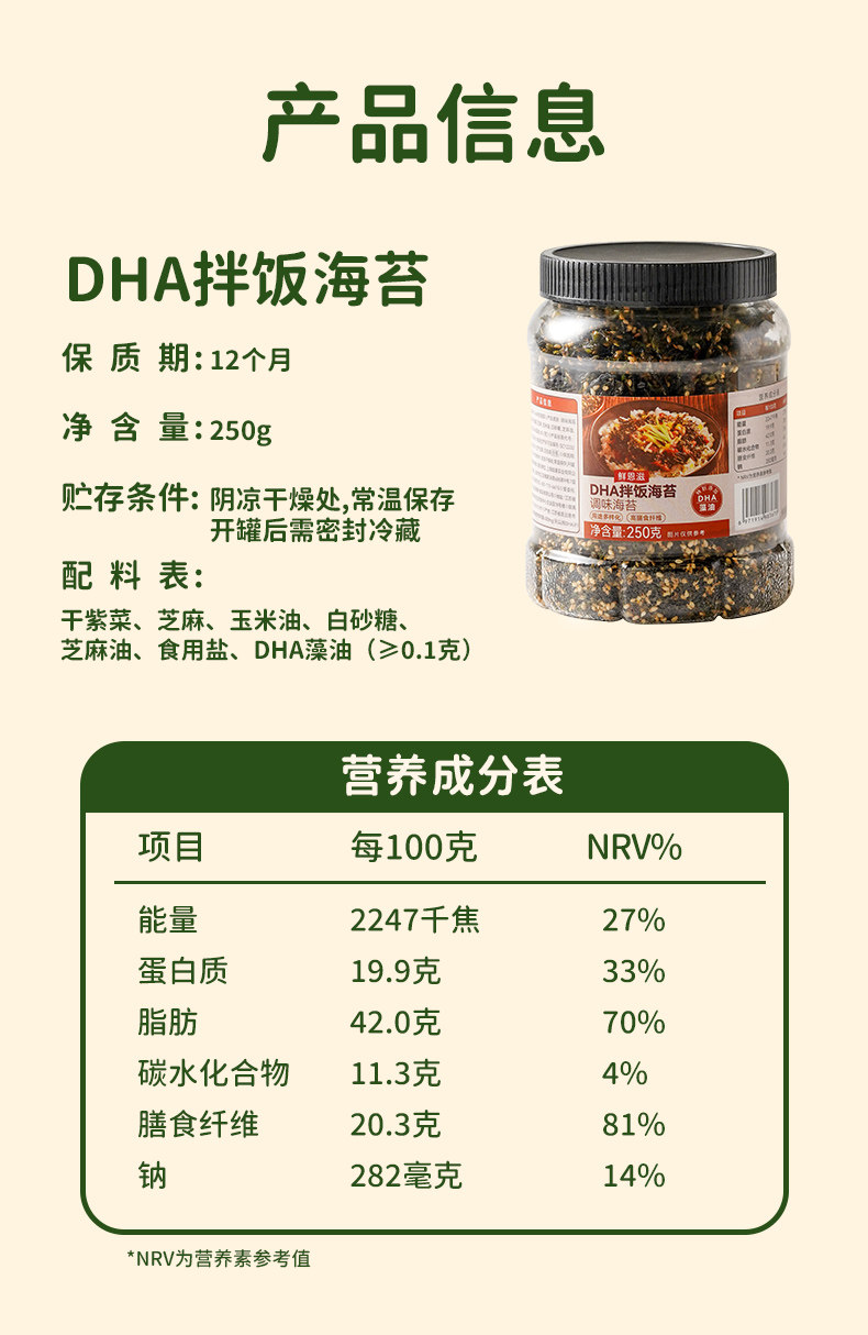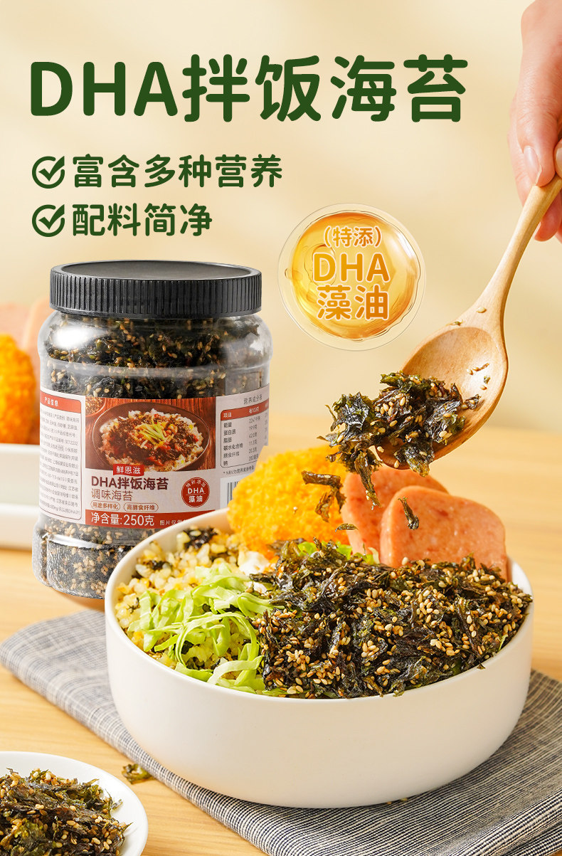 | Taste | Dha Mixed Rice and Seaweed 250g*1 Can,Dha Mixed Rice and Seaweed 250g*2 Cans |