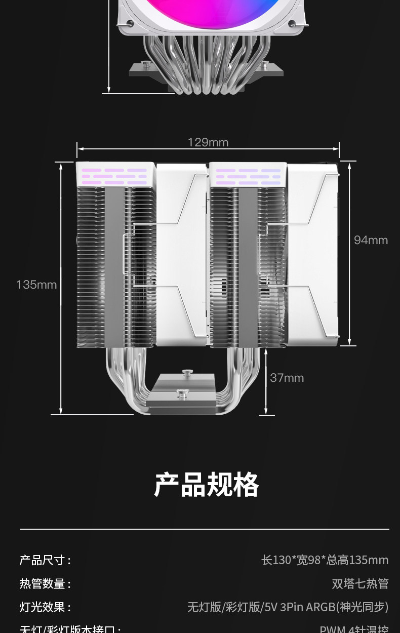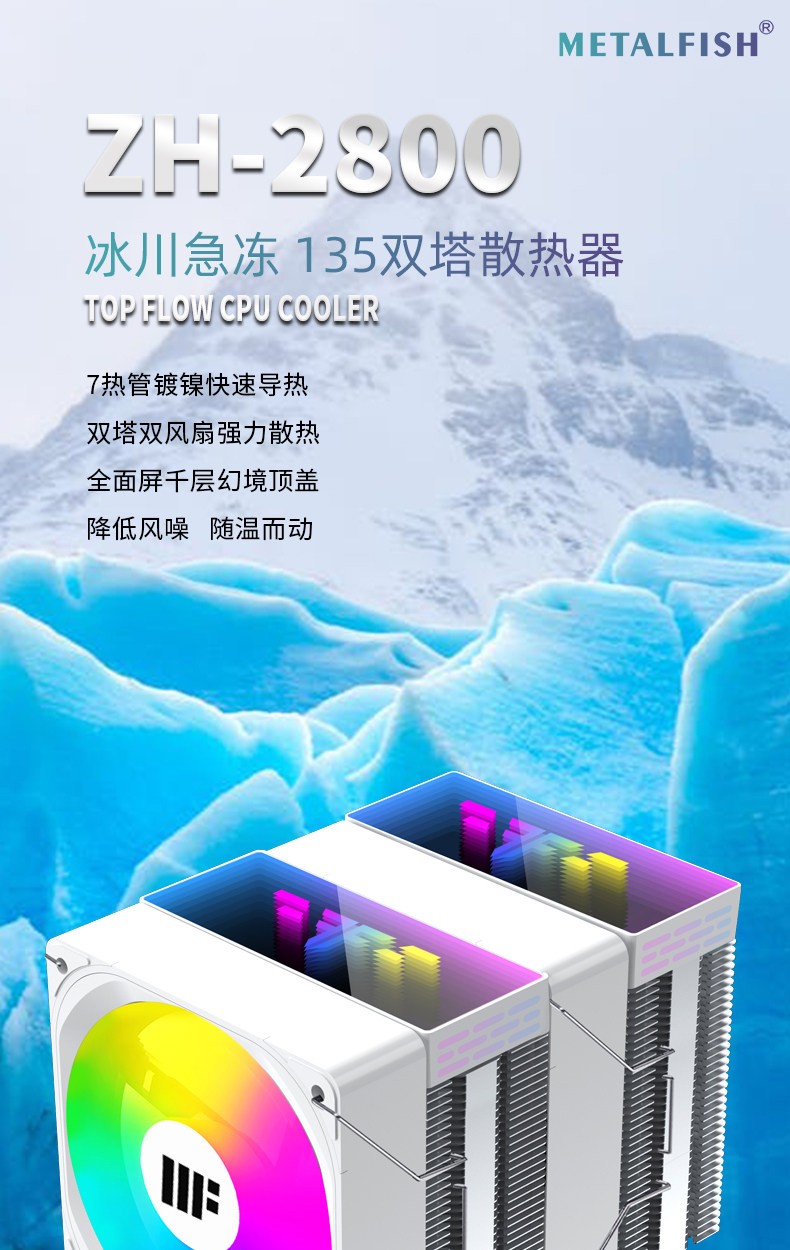 Fish Nest Zh2800 Radiator Dual-Tower 7-Tube Cpu Air Cooling Silent 135 High Desktop Computer 14Th Generation Amd5 Temperature Control