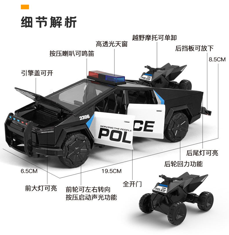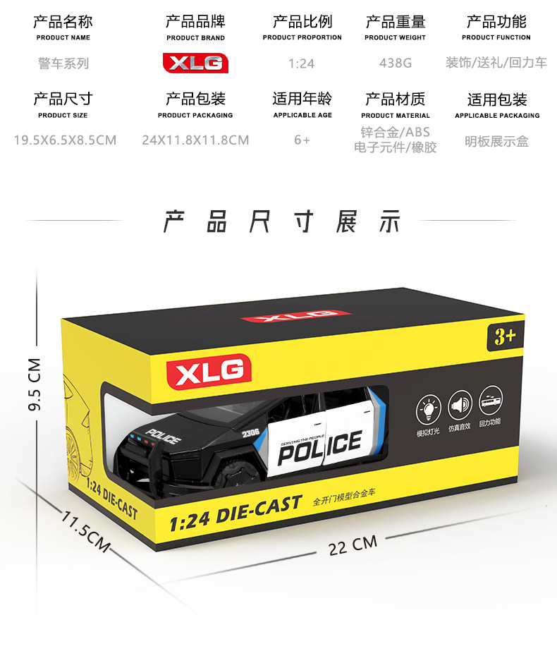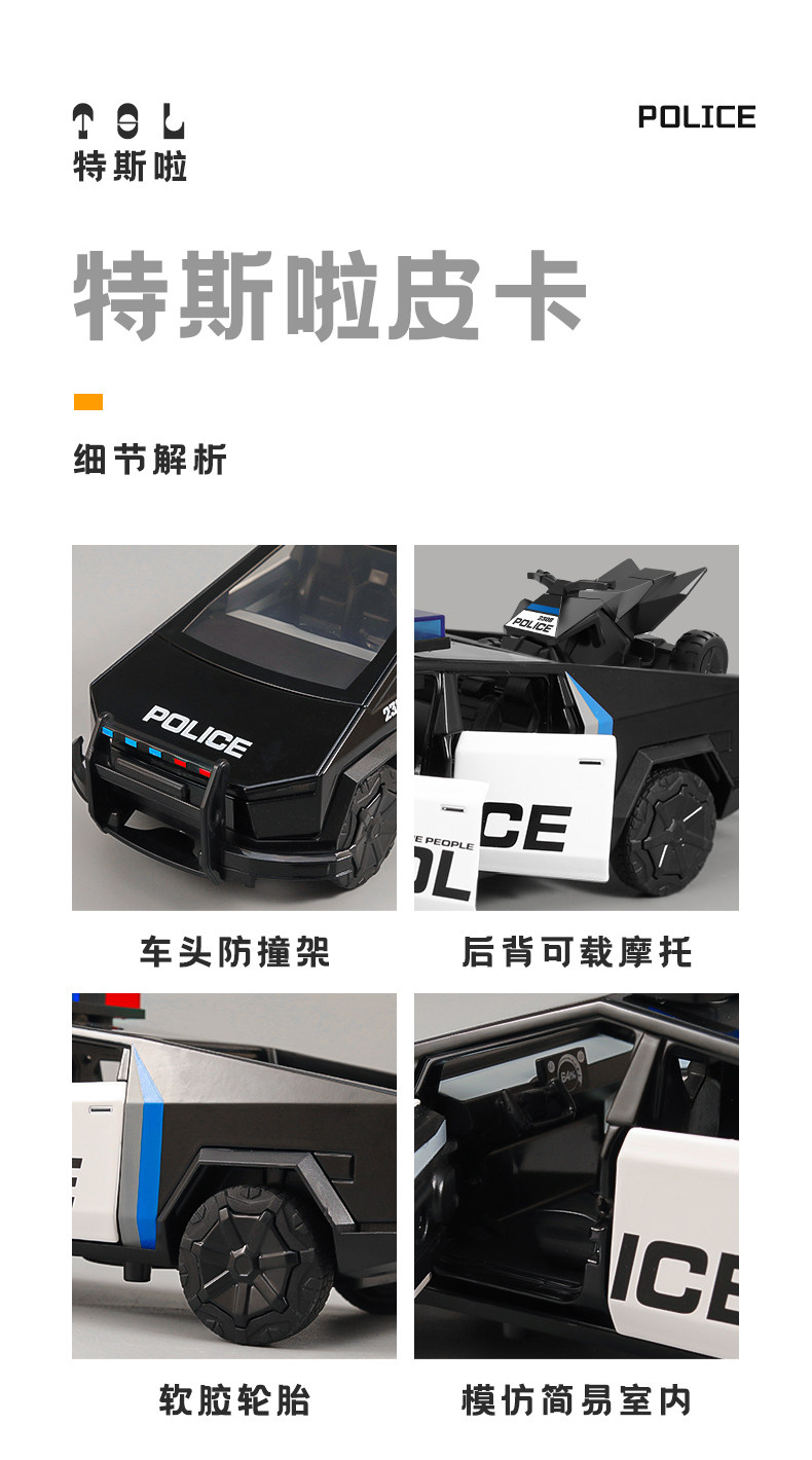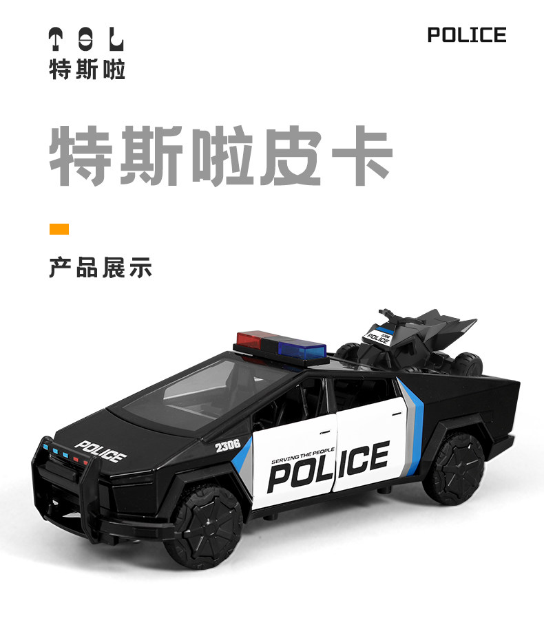 | Color Classification | Model Pickup Police Car [Boxed],Model Y Police Car [Boxed],Model 3 Police Car [Boxed],Model X Police Car [Boxed],Model S Police Car [Boxed],Model R Police Car [Boxed],American Version of Model 3 Police Car [Can Be Turned],1/24 Hellcat American Police Car,1/32 Hellcat American Police Car |