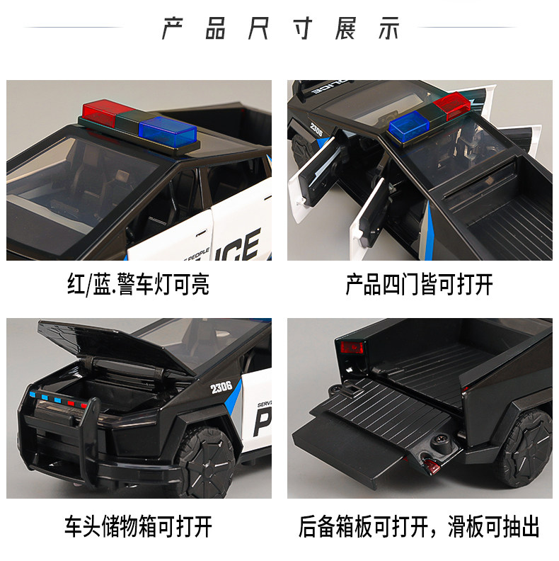 New 1:24 Tesla Y Us Version Pickup Truck Police Car Alloy Model Sound and Light Door Opening Boy Toy Car Gift