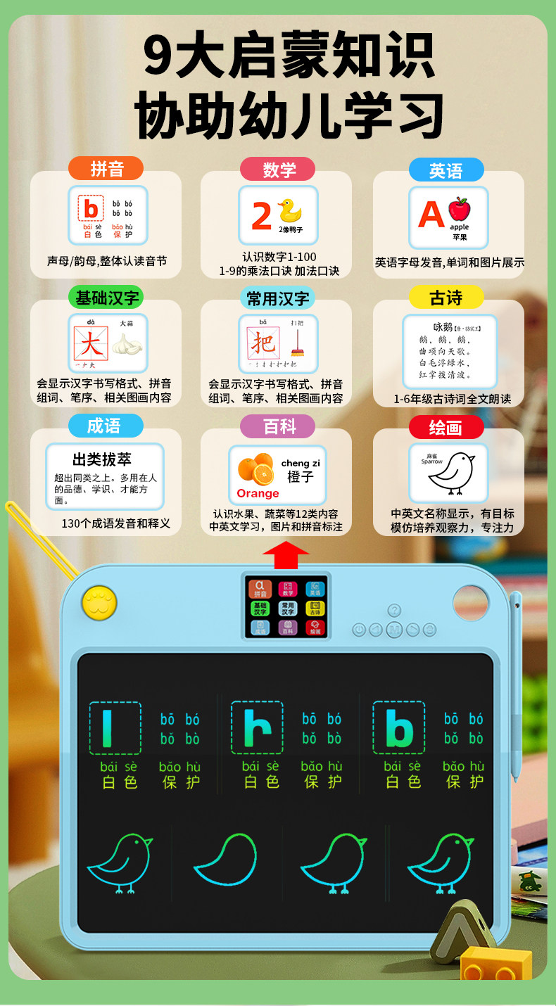 Children's All-In-One Learning Machine Lcd Handwriting Board Baby Drawing and Writing Language, Math, and English Enlightenment Early Education Machine Doodle Gift