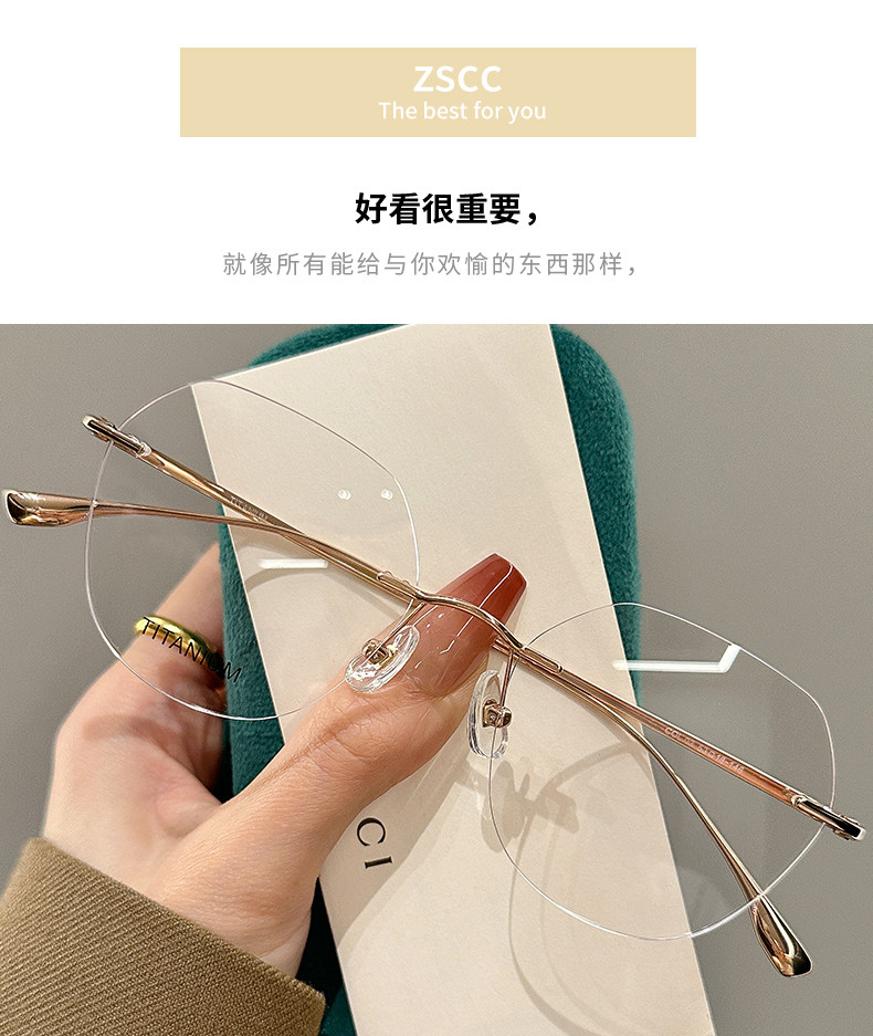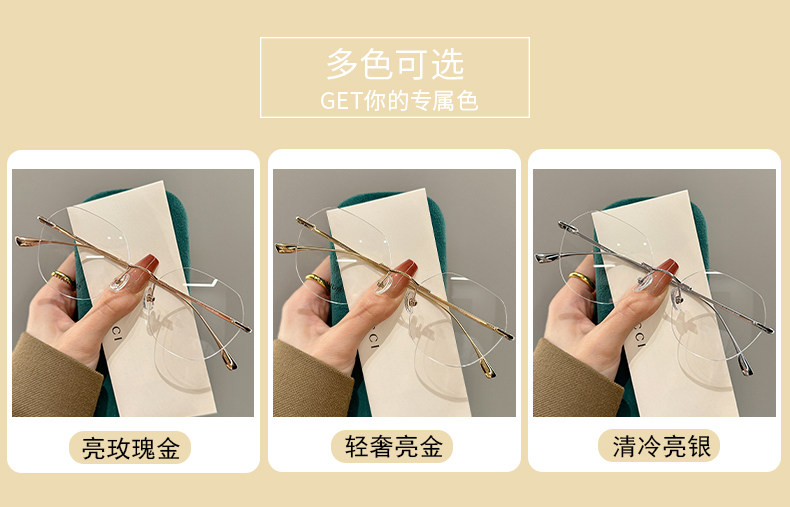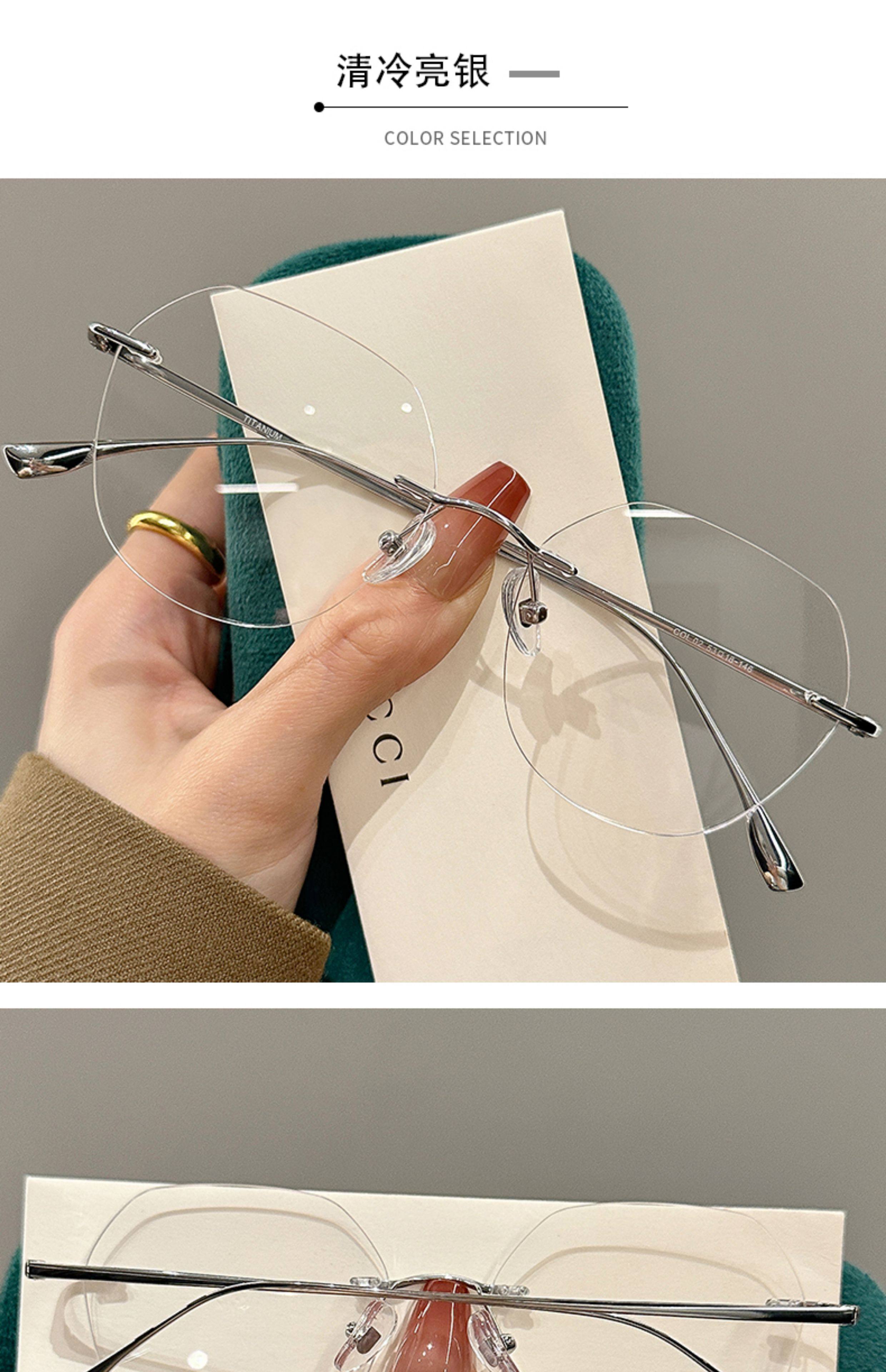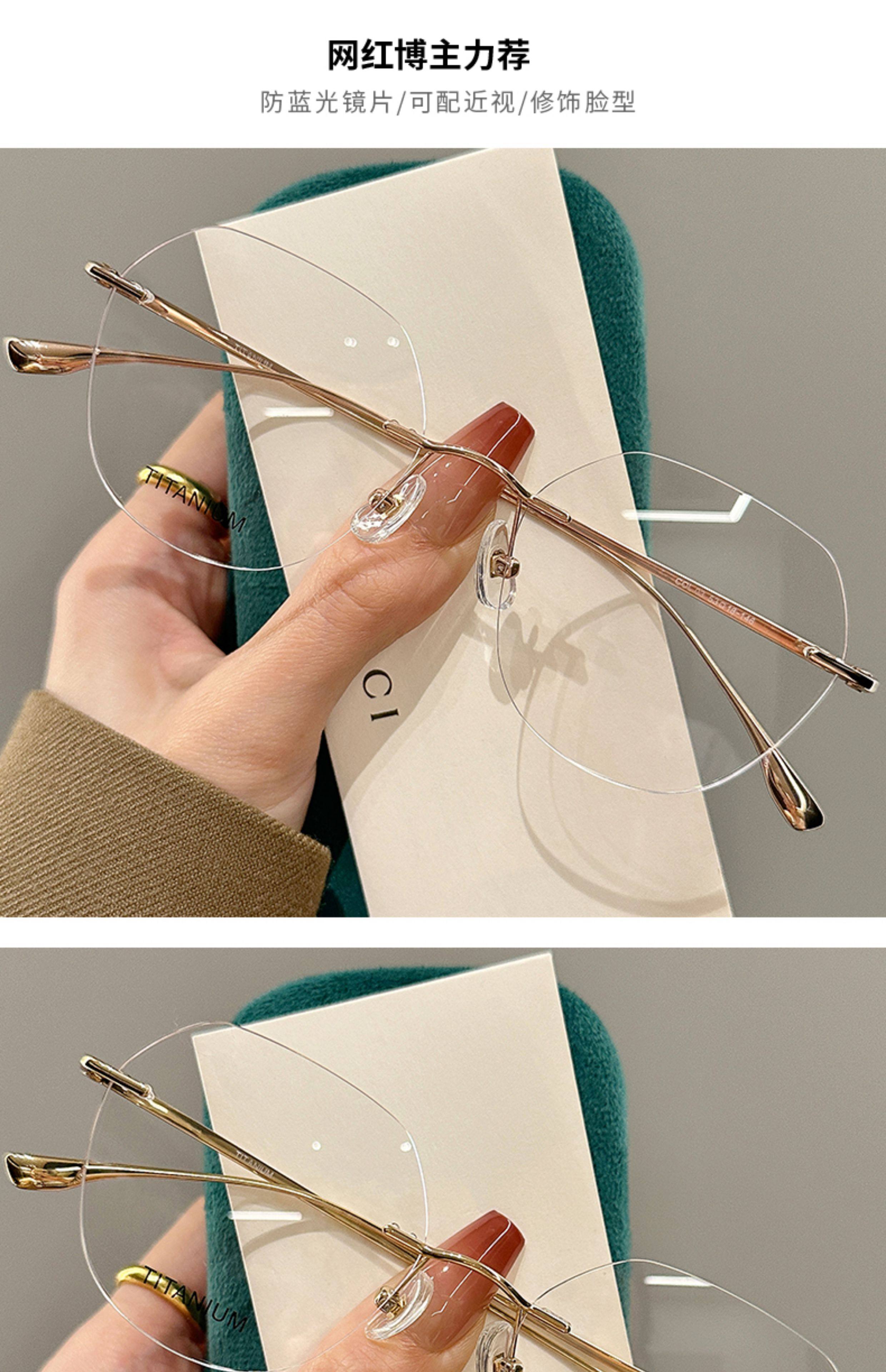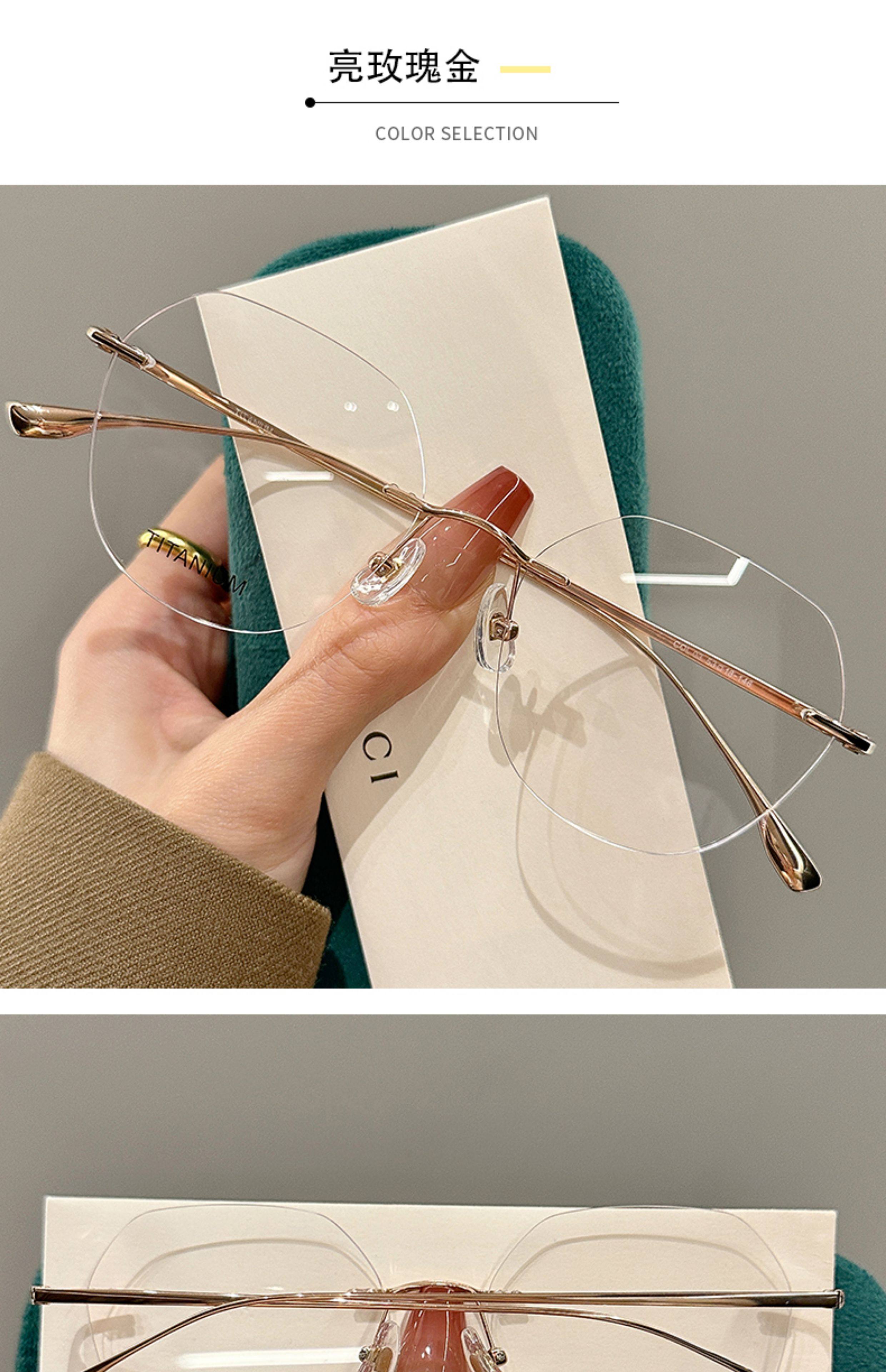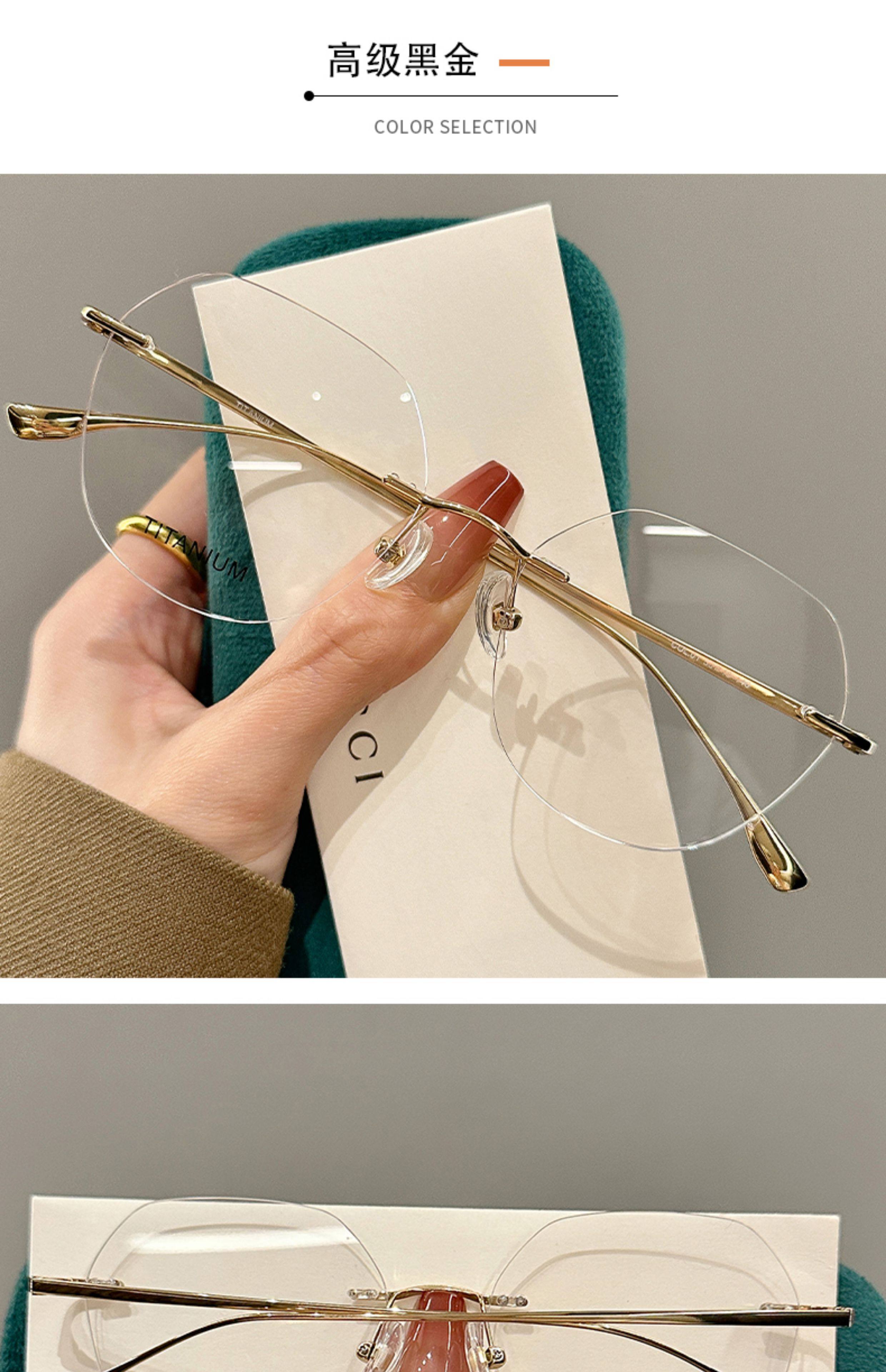 High-End Rimless Prescription Glasses for Women, Large Frame That Makes the Face Look Smaller, Artistic Frameless Gold Wire Eyeglass Frames