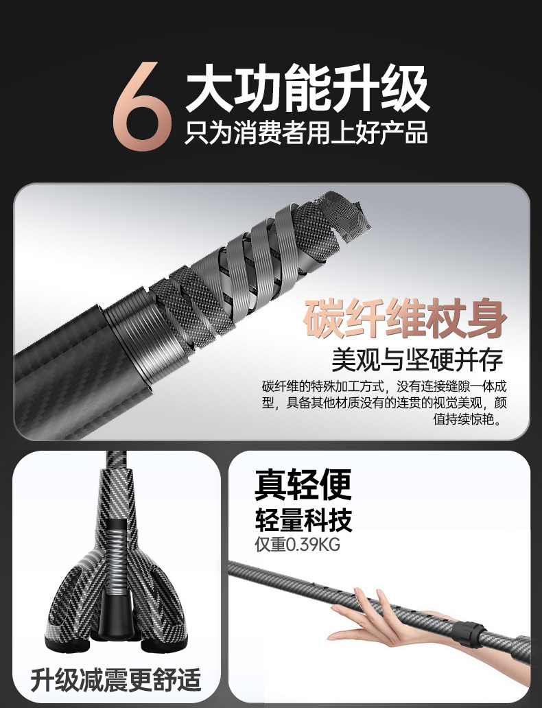 | Color Classification | Hot Selling 01 [Lightweight/Ergonomic Grip] Carbon Fiber Stick Body + Carbon Fiber Transfer Shock-Absorbing Base + 10 Levels Adjustable,02 [Lightweight Model/Grip with Light] Carbon Fiber Stick Body + Carbon Fiber Transfer Shock-Absorbing Base + 10 Levels Adjustable,[Handle with Light] Aluminum Alloy Stick Body + Black Shock-Absorbing Base + 10 Levels of Height Adjustable,03 [Ultra-Light Standard Model/Ergonomic Grip] + Carbon Fiber Stick Body + 10-Level Adjustable + Single Foot Base,【04】Second Generation Invention Patent - Carbon Fiber - Black - Universal Thickened Shock-Absorbing Base,【05】With Auxiliary Standing Handle - Carbon Fiber - Black - Universal Thickened Shock-Absorbing Base + Single/Four-Legged Interchangeable,【06】Ergonomic Grip|Composite Carbon Fiber [Four-Legged Crutches] + High-End Gift Box + Single-Legged/Four-Corner Interchangeable,【07】Grip with Light|Carbon Fiber [Four-Legged Crutches] + Soft Rubber Handle + High-End Gift Box + Single Leg/Four Corners Interchangeable,【08】Ultra Light Model|Full Carbon Fiber [Four-Legged Crutches] + Bionic Handle + High-End Gift Box + Single Leg/Four Corners Interchangeable,09 [Faucet Grip] Second Generation Invention Patent - Carbon Fiber - Faucet Cane - Exquisite Gift Box,10 [Phoenix Head Grip] Second Generation Invention Patent - Carbon Fiber - Phoenix Head Cane - Exquisite Gift Box,[Direct Sales from the Source Factory, Quality Guaranteed] |