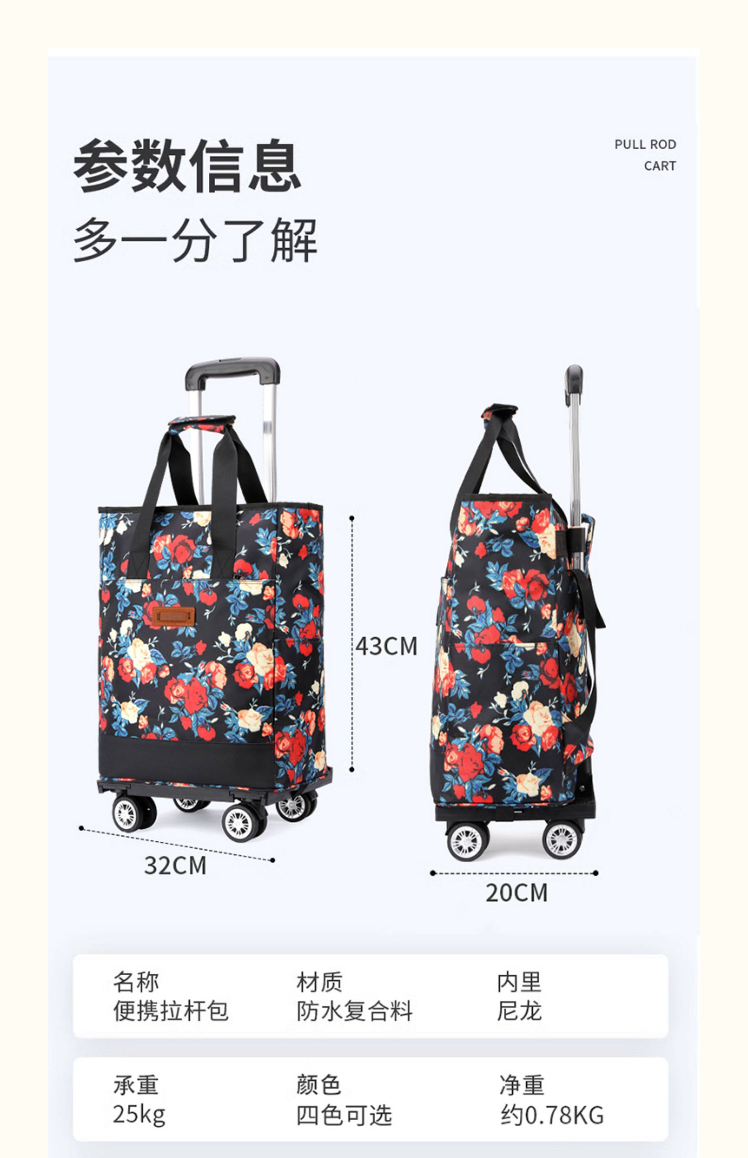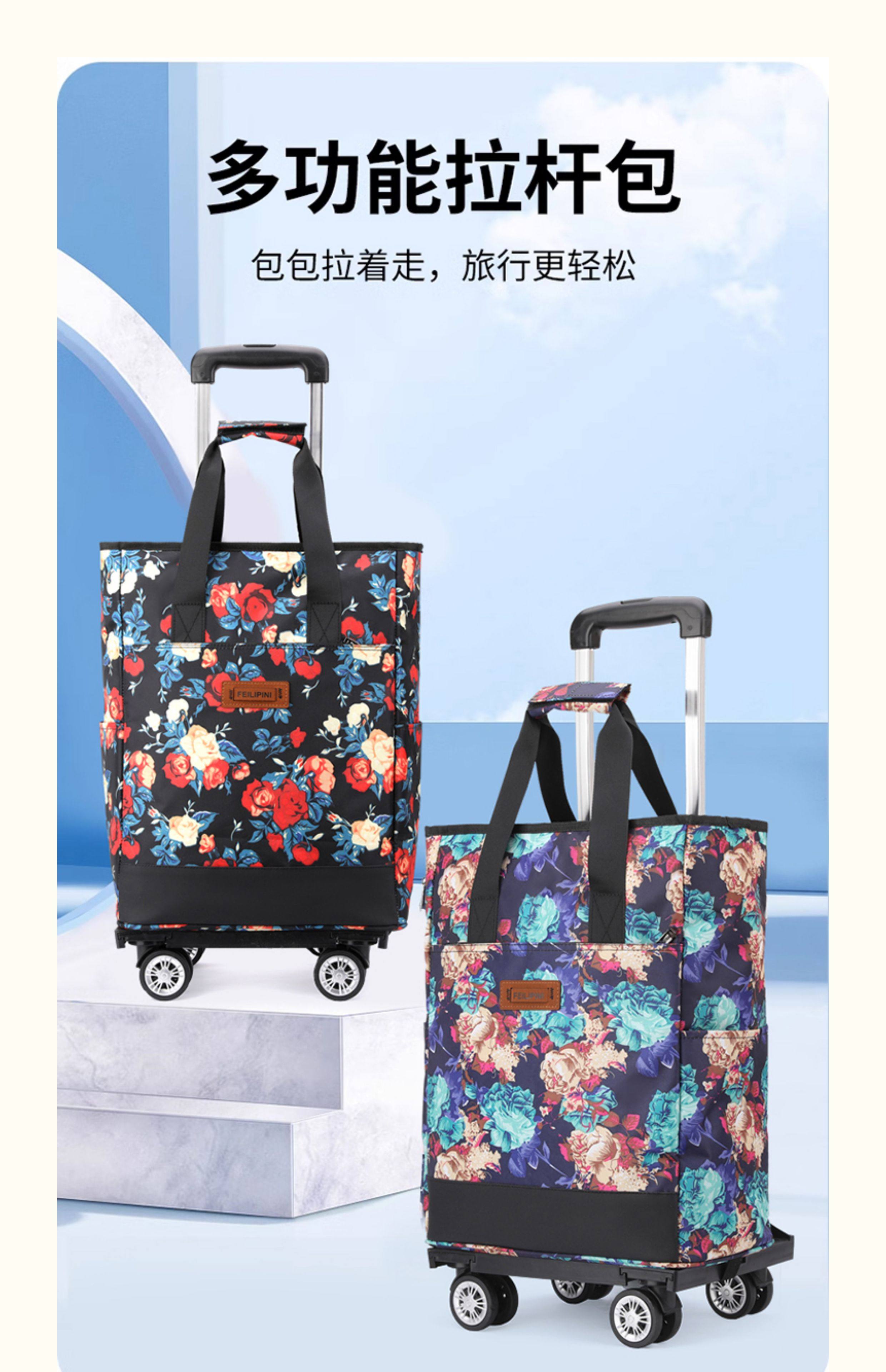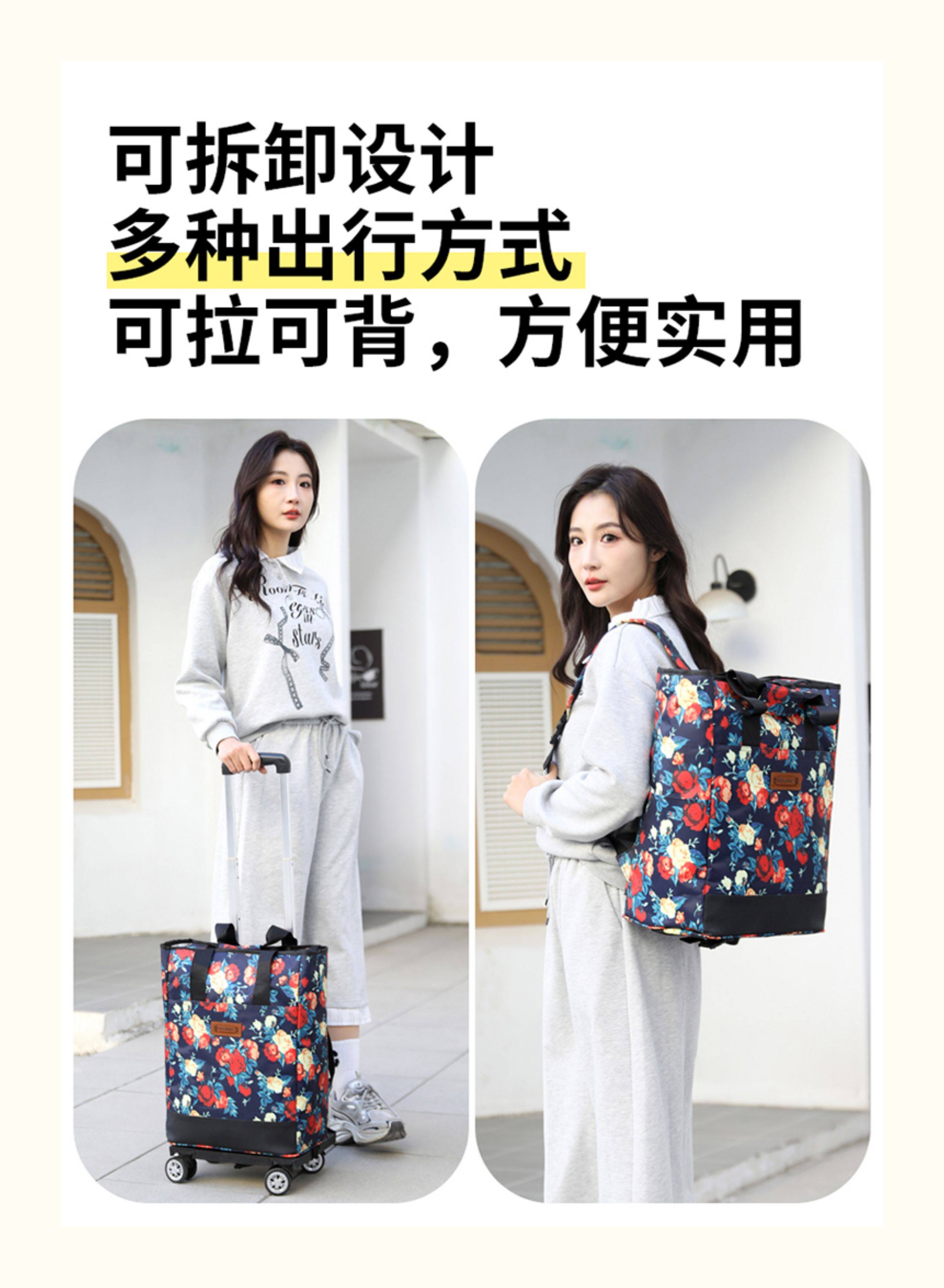 Universal Wheel Convertible Travel Bag with Pull Rod, Short-Distance Luggage Bag, Storage Bag, Foldable Portable Tote Bag for Maternity Use