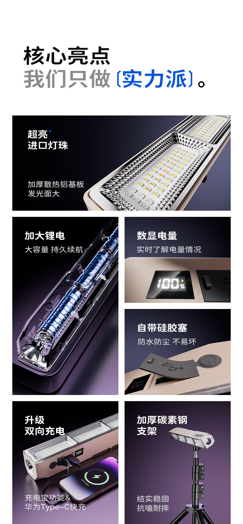 Super Bright Led Rechargeable Stand Light for Night Market Stalls, Outdoor Emergency Use, Long-Lasting, Large-Capacity Lighting