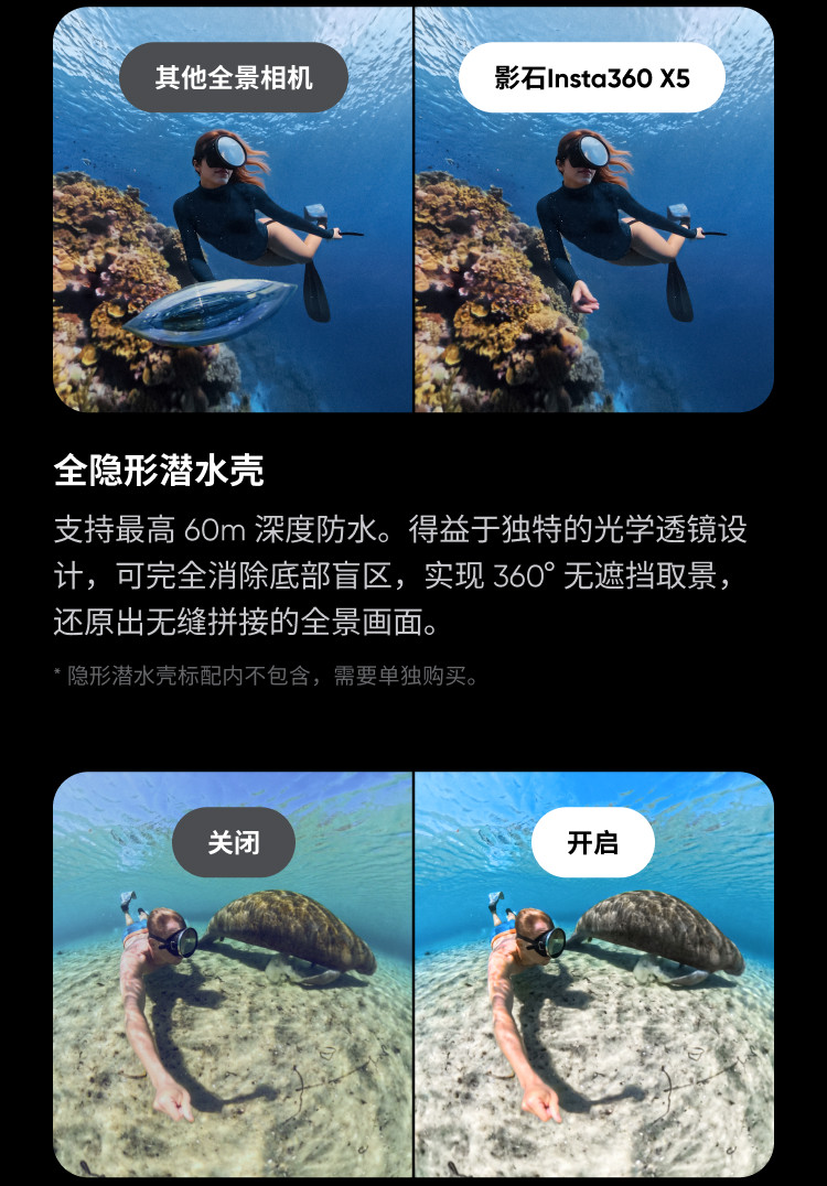 Shadowstone Insta360 X5/X4 8K Panoramic Action Diving Camera 360-Degree Cycling Skiing Vlog Camera